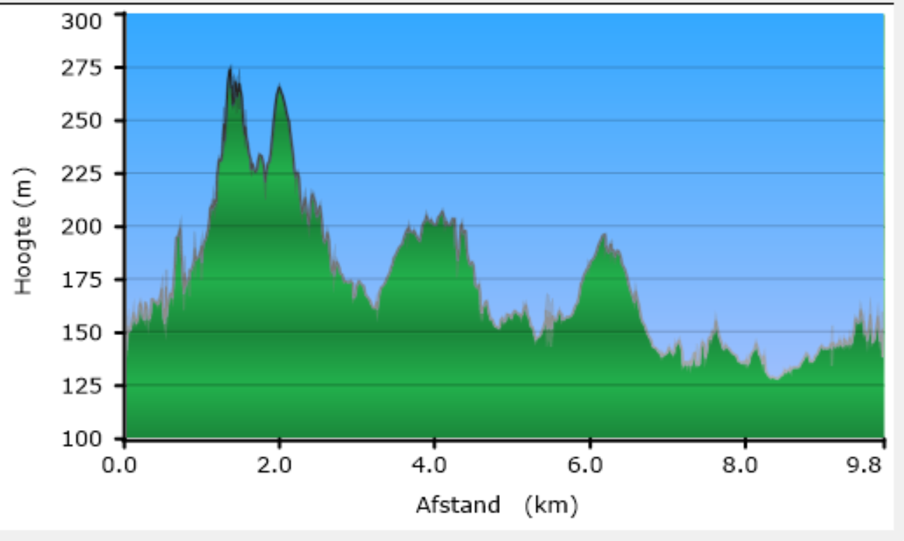 De markeringen van deze 10km lange wandeling waren in 2020 niet te vinden.