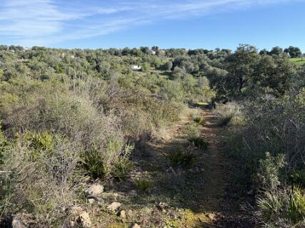 Wij wilden deze route lopen, maar hij werd geblokkeerd door een nieuw hek, zie hier. We hebben toen nog een alternatieve route gezocht, groene spoor, maar niets gevonden. We hebben toen de oorspronkelijke route ingekort tot 6km, rode spoor,
