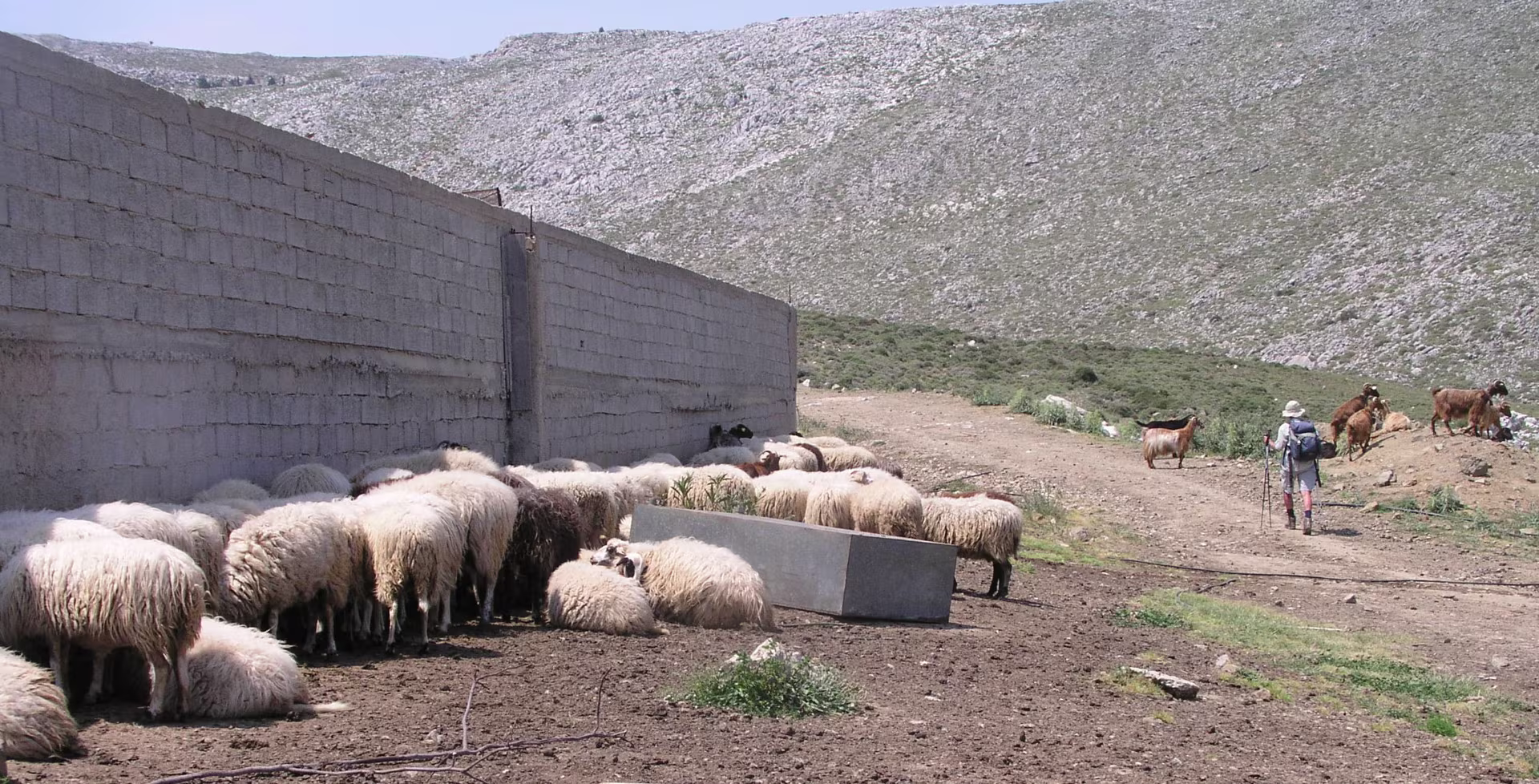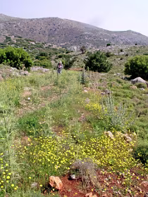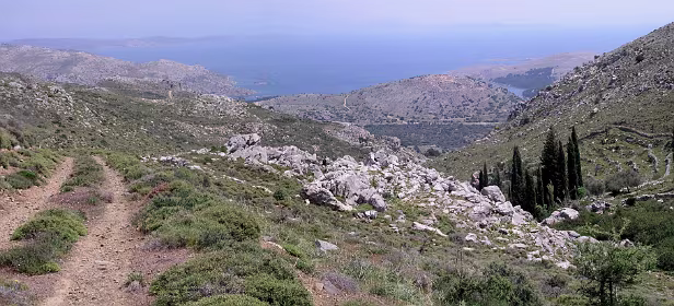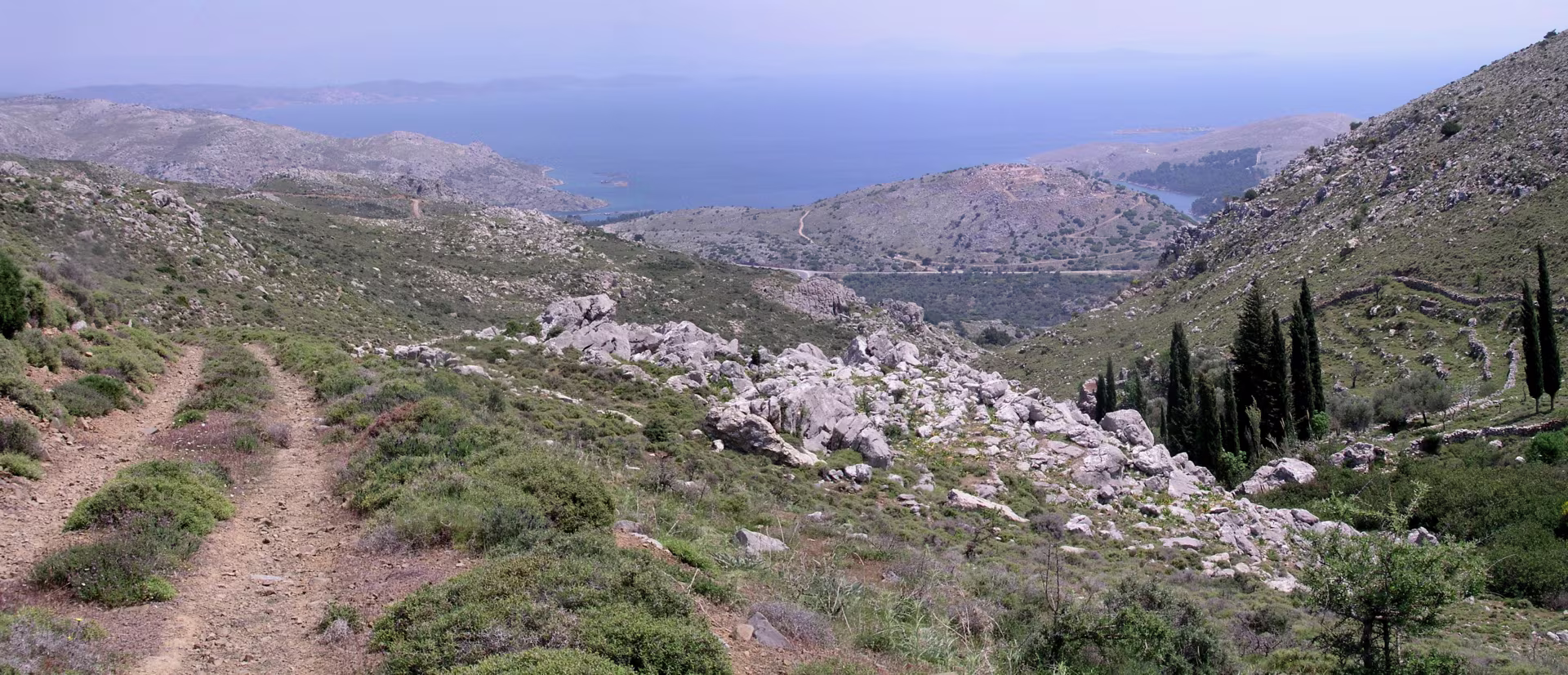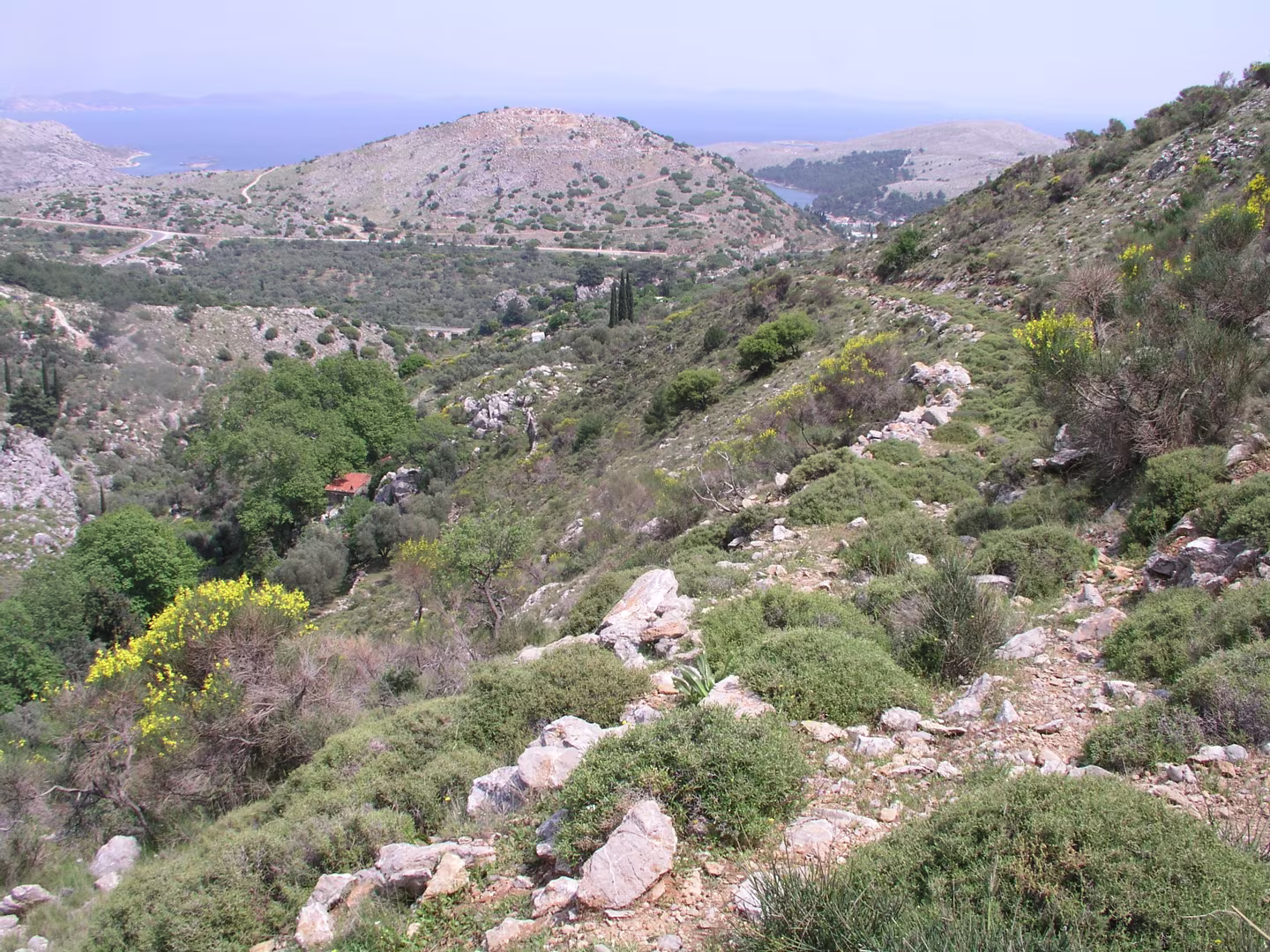 We liepen vanuit de appartementen Kounoupas in Langada in noordoostelijke richting naar de Delfini baai. Daar gingen we verder omhoog naar het klooster Ayii Anarjiri. Daarna nog verder omhoog naar een zadel en langs een geiten kraal. Daarna daalden we weer af naar de kust.