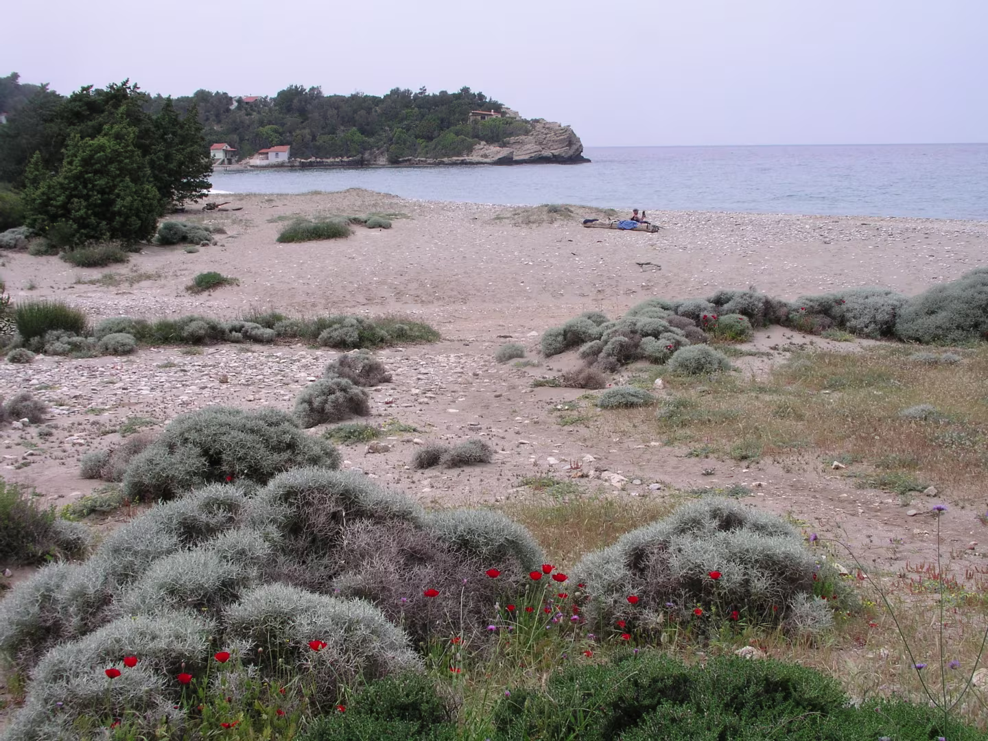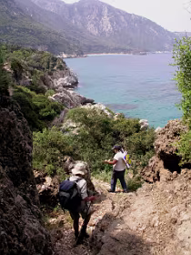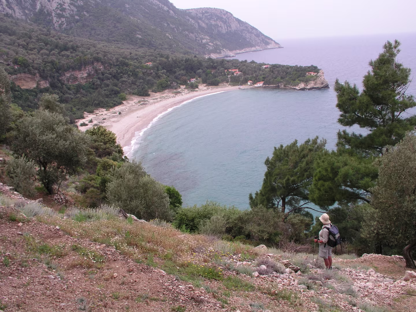 We liepen vanuit hotel Astir in Karlovasi in westelijke richting langs de haven van Karlovasi naar het Potami strand. We volgden het pad langs de kust. Een visser begeleide ons tot de Mikro Seitani baai, waar hij ging duiken. Wij vervolgden het kustpad tot het grotere Megalo Seitani strand. Langs dezelfde weg liepen we terug naar ons hotel en bewonderden onderweg nog de vangst van de visser.