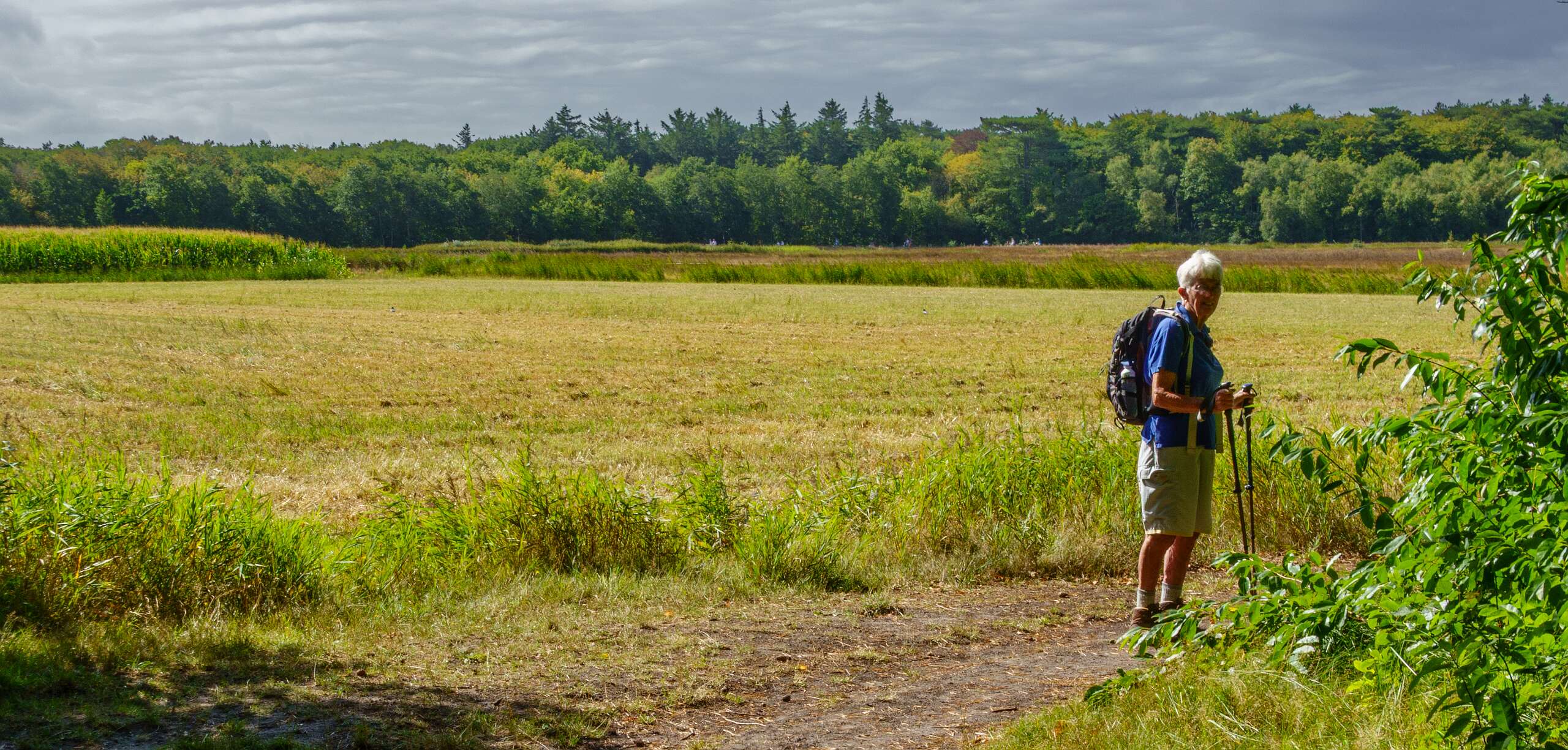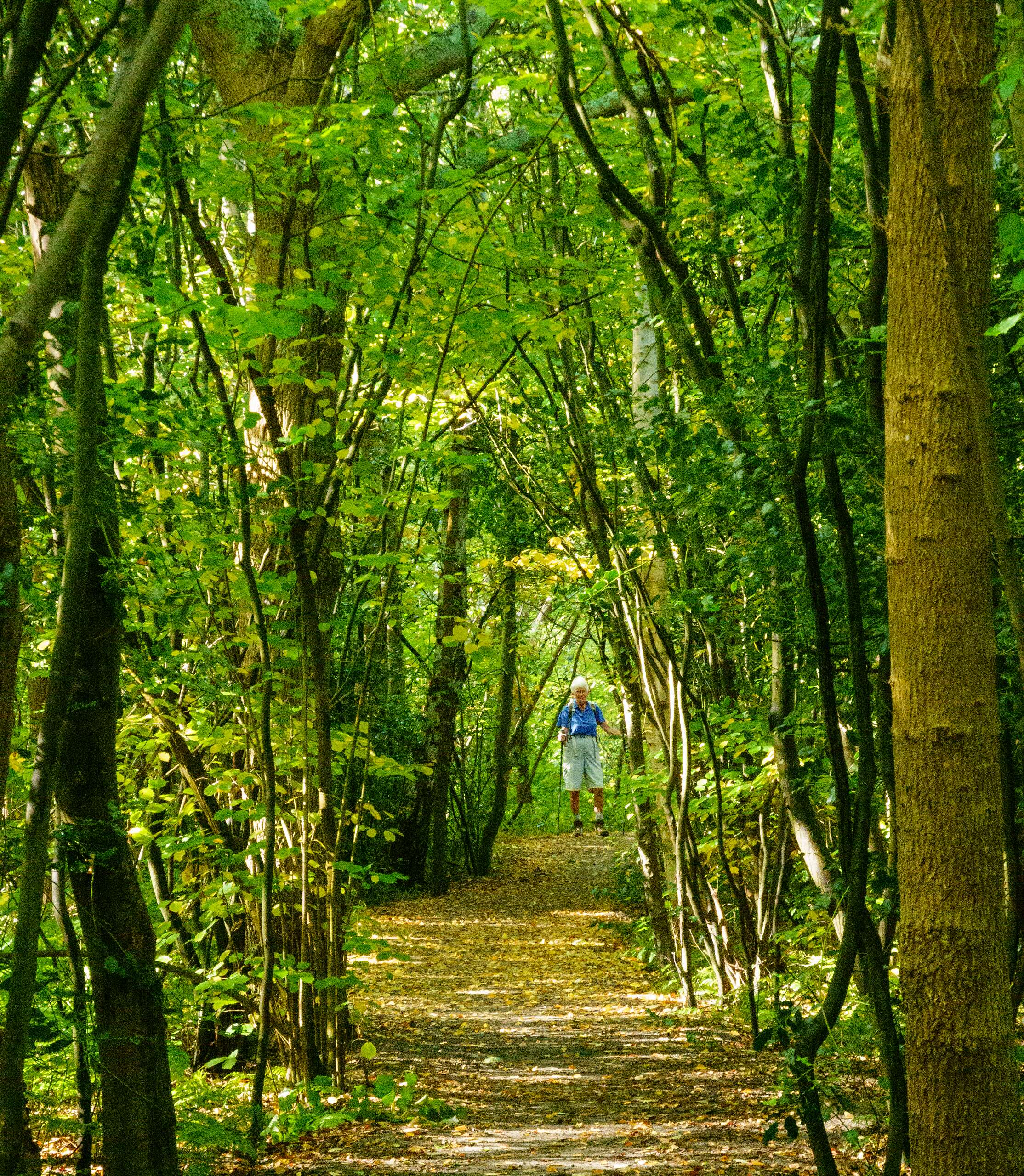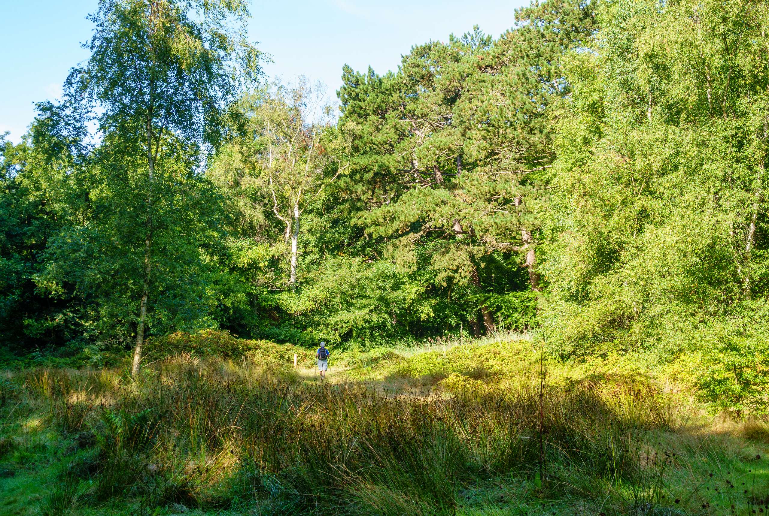 Dit is een 5,3 km lange rondwandeling vanaf camping Woutershok die voor een groot deel door het bos loopt en met rode markeringen is aangegeven.