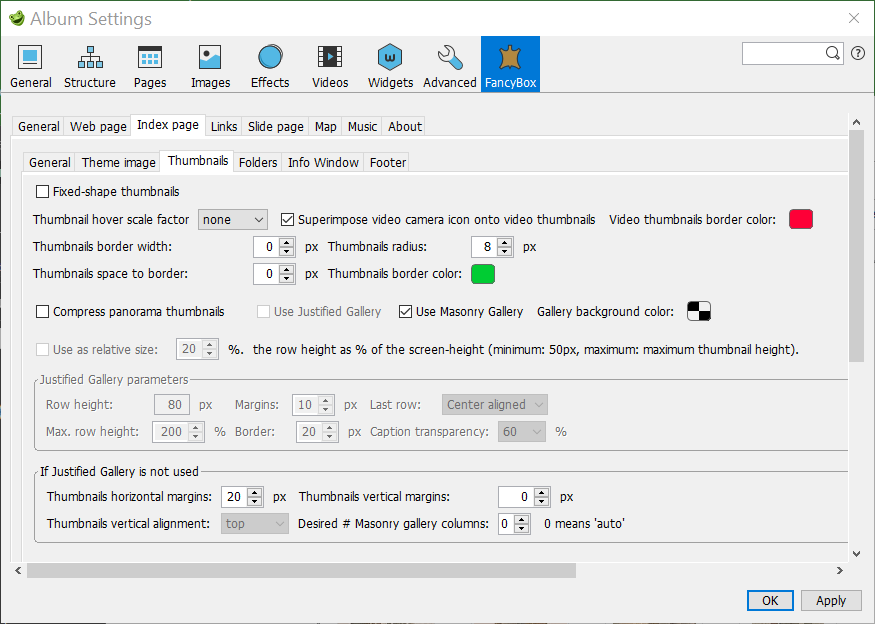 The settings shown here are used for the Default jAlbum Sample album