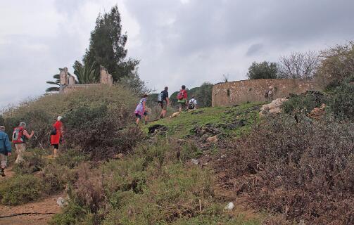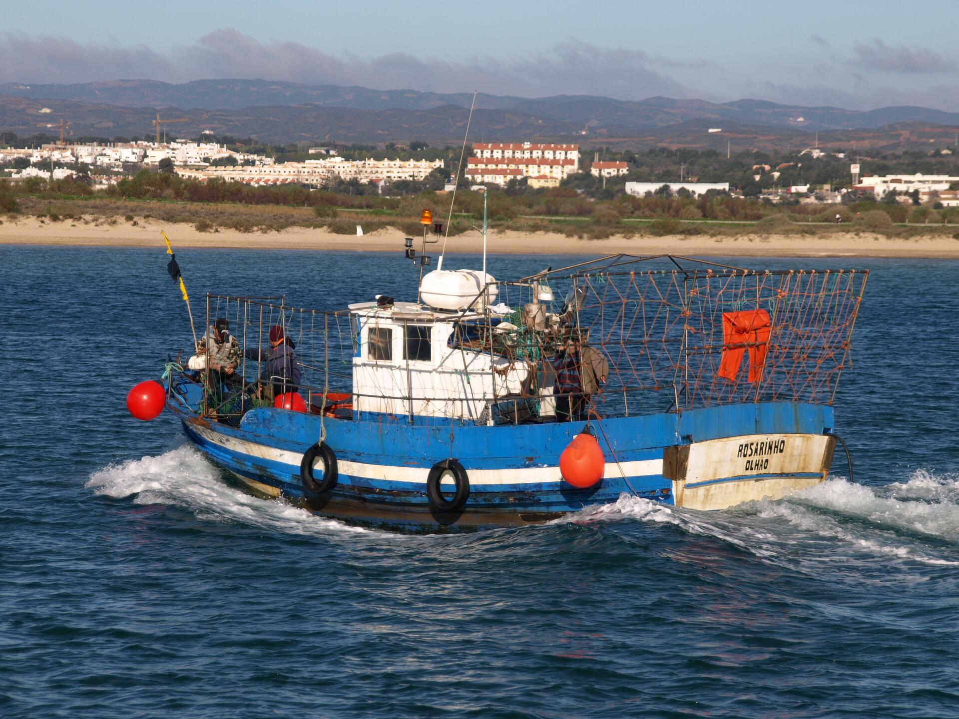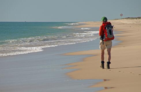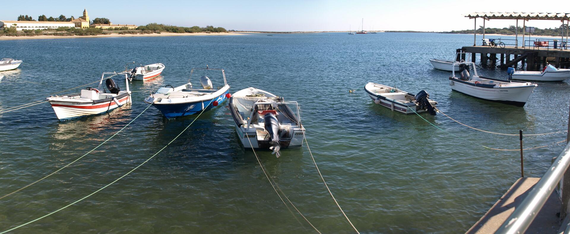Vanuit het station van Porta Nova loop je naar beneden naar de oude mercado. Sinds 2023 vertrekt de boot om 09:30 en 10:40 achter de oude Mercado, na de fiets/voetgangersbrug over de rivier. Het pontje brengt je in 40 minuten naar de het eiland. Volg het pad door de duinen naar het strand. In januari is daar maar één restaurant open en daar worden schandalig hoge prijzen berekend. Loop ruim een uur langs het verlaten strand totdat je op een ankerkerkhof stuit. Je gaat daar rechtsaf. Achter het anker kerkhof is een voormalige legerplaats omgebouwd tot restaurant, waar U tegen redelijke prijzen wat kunt eten en drinken. Loop langs het smalspoor naar de pontonbrug naar het dorpje Pedras del Rei. Je kunt natuurlijk ook het treinje naar de pontonbrug nemen. Loop over de pontonbrug rechtdoor het bungalowpark in en ga na het park rechtsaf waar een bord naar Quitamar verwijst. In de verte zie je Tavira liggen. Je loopt met aan je linkerhand sinaasappel- en citroenbomen en aan de rechterkant een druivenwijngaard tot een driesprong. Neem daar de rechterpoot naar Quitamar. Je volgt nu alsmaar de holleweg; dit zou een oude Romeinse weg zijn. Let op de enorme cactus voor huisnr. 220a (geelwit huis). Bij 2 roodwitte paaltjes rechts aanhouden en de eerstvolgende afslag naar rechts negeren. Aan je linkerhand een gele muur met draad en dan tenslotte ook links een honderd meter lange stenen muur die overgaat in draadhekken rond een scholencomplex. Loop langs dit hek en houd links aan om via de rua Luis de Camoes het station van Tavira weer te bereiken. Deze variant, het blauwe spoor, is 17km lang.