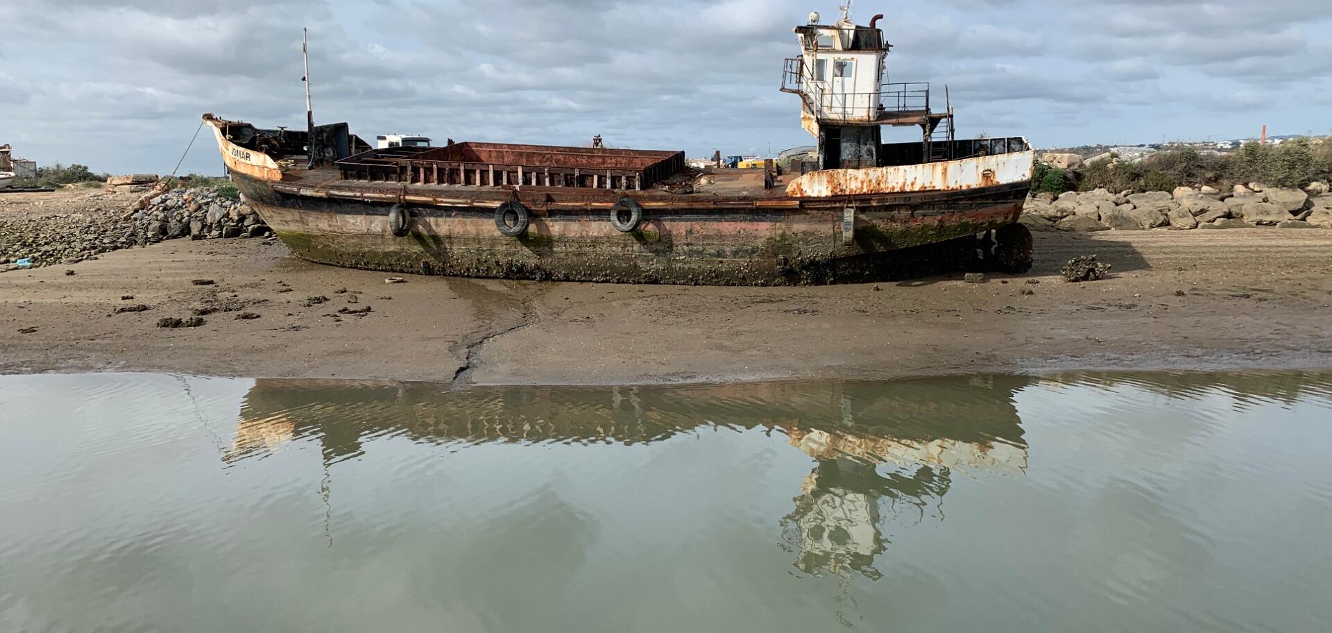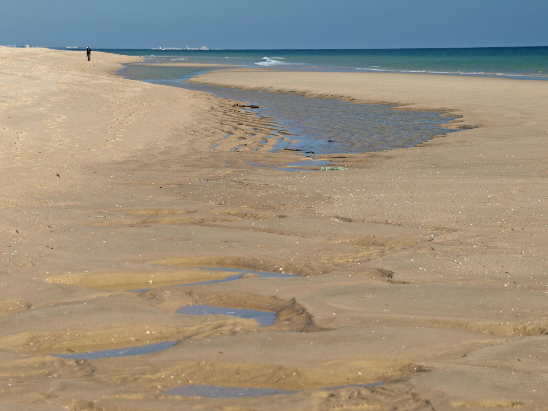 Het is ook mogelijk om naar het station van Luz te lopen. Deze route is vanaf Porta Nova 11km lang (rode route), exclusief het traject van 4 km met de veerboot.. Ga daarvoor na het bungalowpark linksaf. Als je de fietsroute (gele paaltjes) volgt, dan zie je na 20 minuten het station aan je rechterhand . Voor de planning: in 70 minuten loop de van Praia do Barril naar het station van Luz. Wij lieoen dezeroute in 2025 die ook op Wikiloc staat.