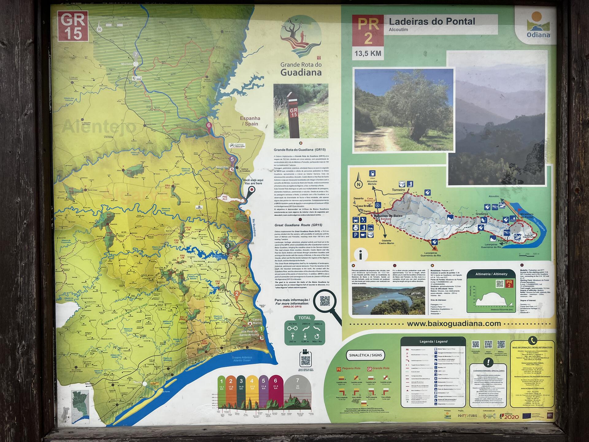 Dit is een bewegwijzerde 14km lange rondwandeling die begint op een parkeerplaats in een bocht van de Rio Guadiana boven Laranjeiras. In 2022 liepen we de route nogmaals en werd de wandeling op