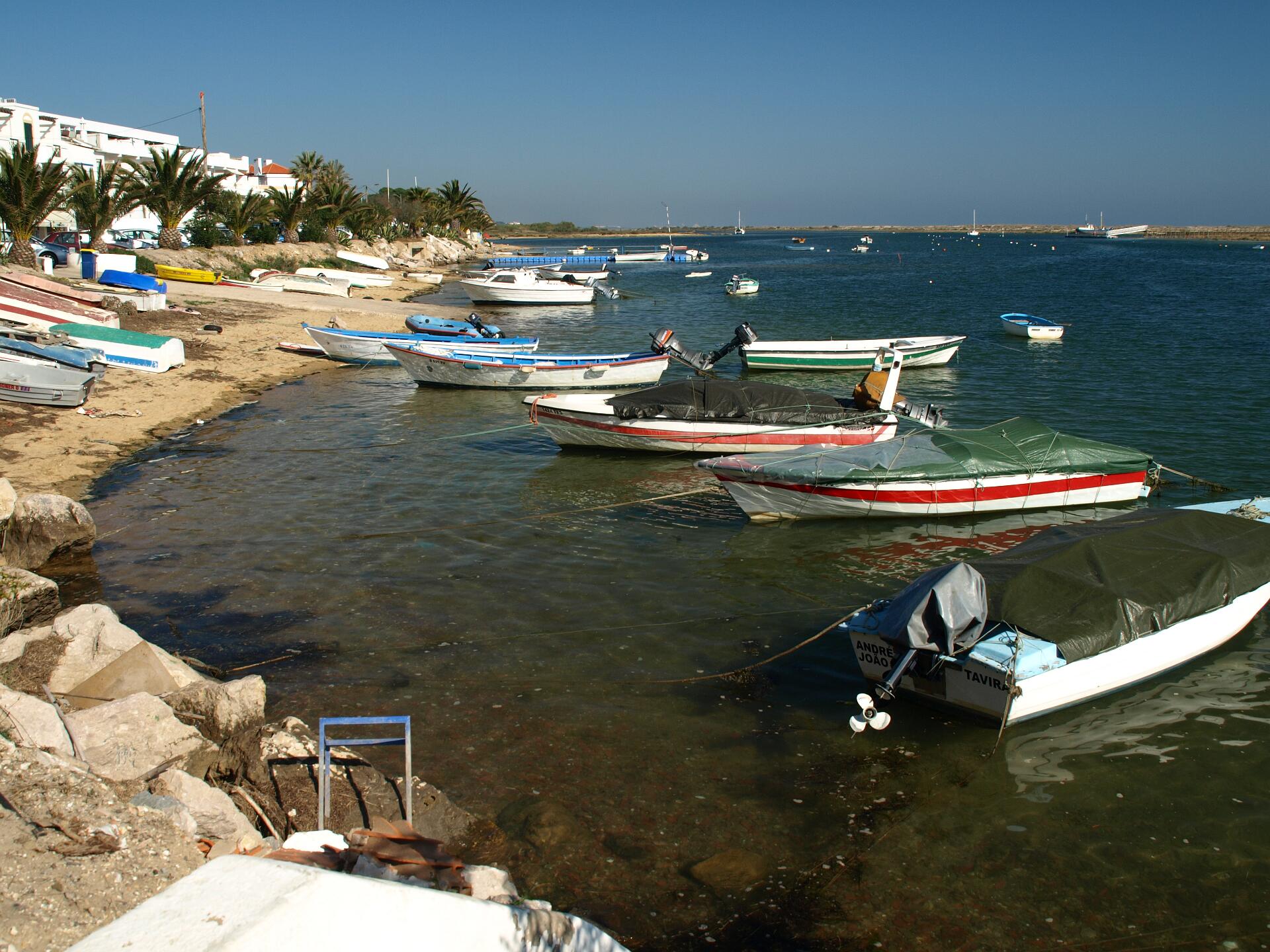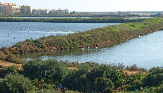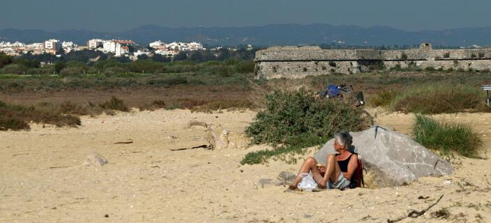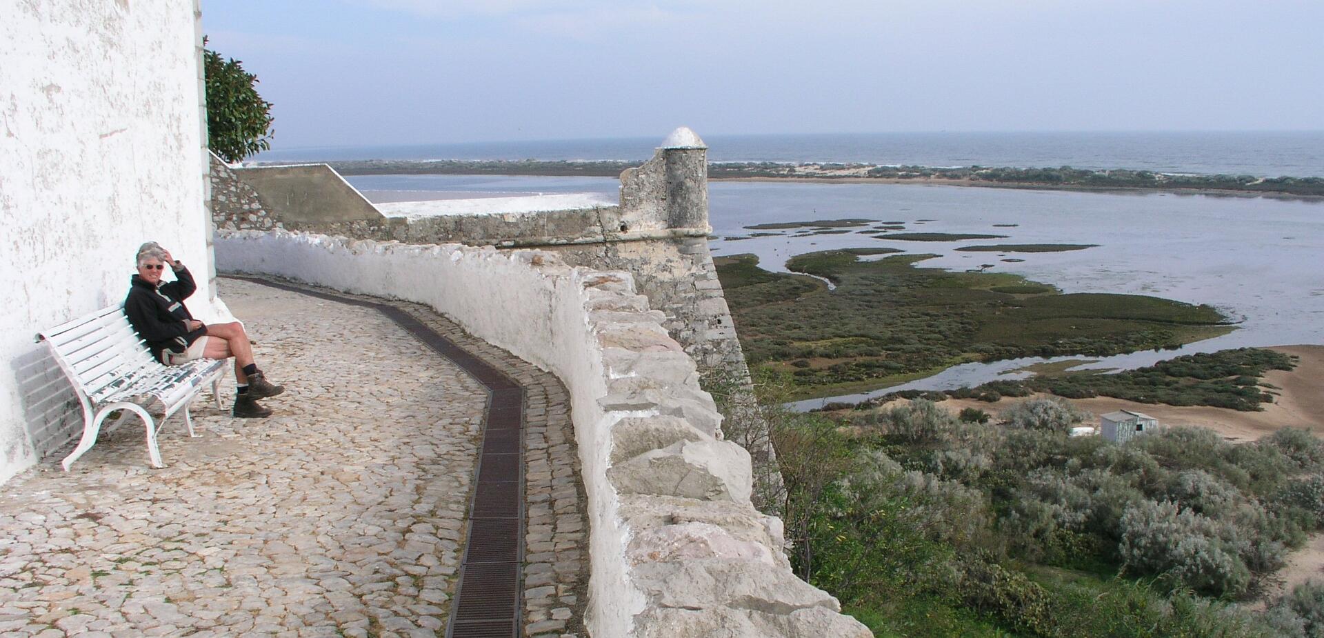 Voor deze 56 km lange fietstocht rijdt U weer in Monte Gordo de boulevard af in westelijke richting en aan het einde rijdt U via het fietspad het bos in. Op het einde van dat pad gaat U links af en komt U uiteindelijk op de N125. Volg die 1,4 km in westelijke richting en sla dan rechtsaf naar Sao Bartelomeu. U gaat voor de spoorovergang naar links en blijft in westelijke richting fietsen langs de spoorlijn tot U er overheen kunt gaan. Dan gaat U rechtsaf in de richting van een witte windmolen en na die windmolen gaat U naar links. Blijf in westelijke richting fietsen tot in Santa Rita. Als U dat dorp bekeken heeft gaat U weer een stukje terug tot U rechtsaf kan slaan. Daarna fiets U lange tijd in westelijke richting. Via een brug over de rivier de Riberia do Almagem bereikt U uiteindelijk de N125 bij een winkel waar aardewerk verkocht wordt. Volg de N125 tot de eerste rotonde en ga daar links af. U komt volgt een op het oog doodlopende weg een woonwijk in. Op het einde kunt U via een smal paadje links naar beneden en het spoor onderdoor. U komt dan op een fietspad dat door paaltjes met gele koppen wordt aangegeven. U gaat rechtsaf naar Tavira. Voor Tavira kunt U eventueel even naar de uitgang van de lagune fietsen door de borden naar het hotel te volgen. Op de terugweg komt U weer op dit punt maar dan gaat U niet onder het spoor door maar blijft U in oostelijke richting fietsen naar Cabanas. In Cabanas fietst U de gehele boulevard af en gaat U op het einde naar links. U komt weer dicht bij de spoorlijn en rijdt even langs de N125 maar U gaat schuin naar rechts richting de golfbanen. U passeert Cacela Velha en volgt daarna de borden richting Manta Rota. Na Manta Rota kunt U via een nieuwe houten brug naar Altura en daarna via de N125 en het bos weer terug in Monte Gordo.
