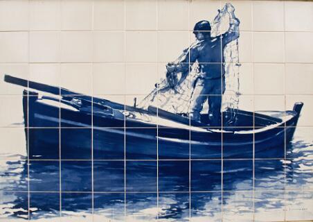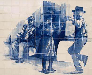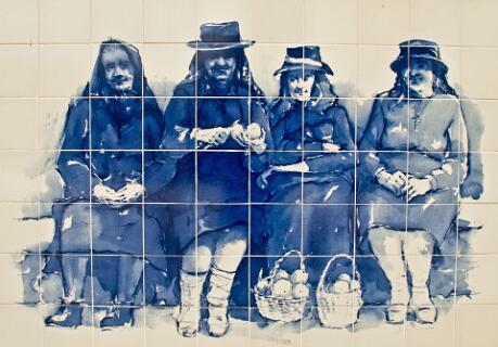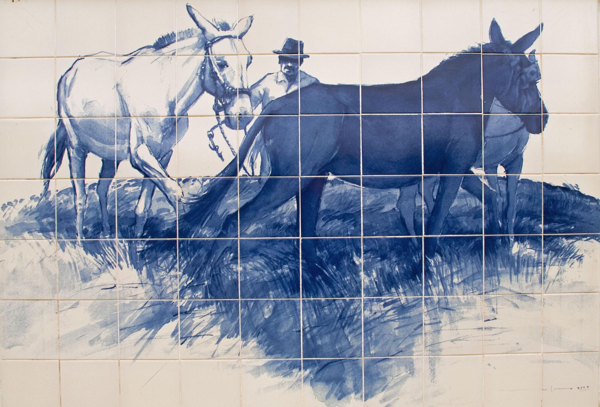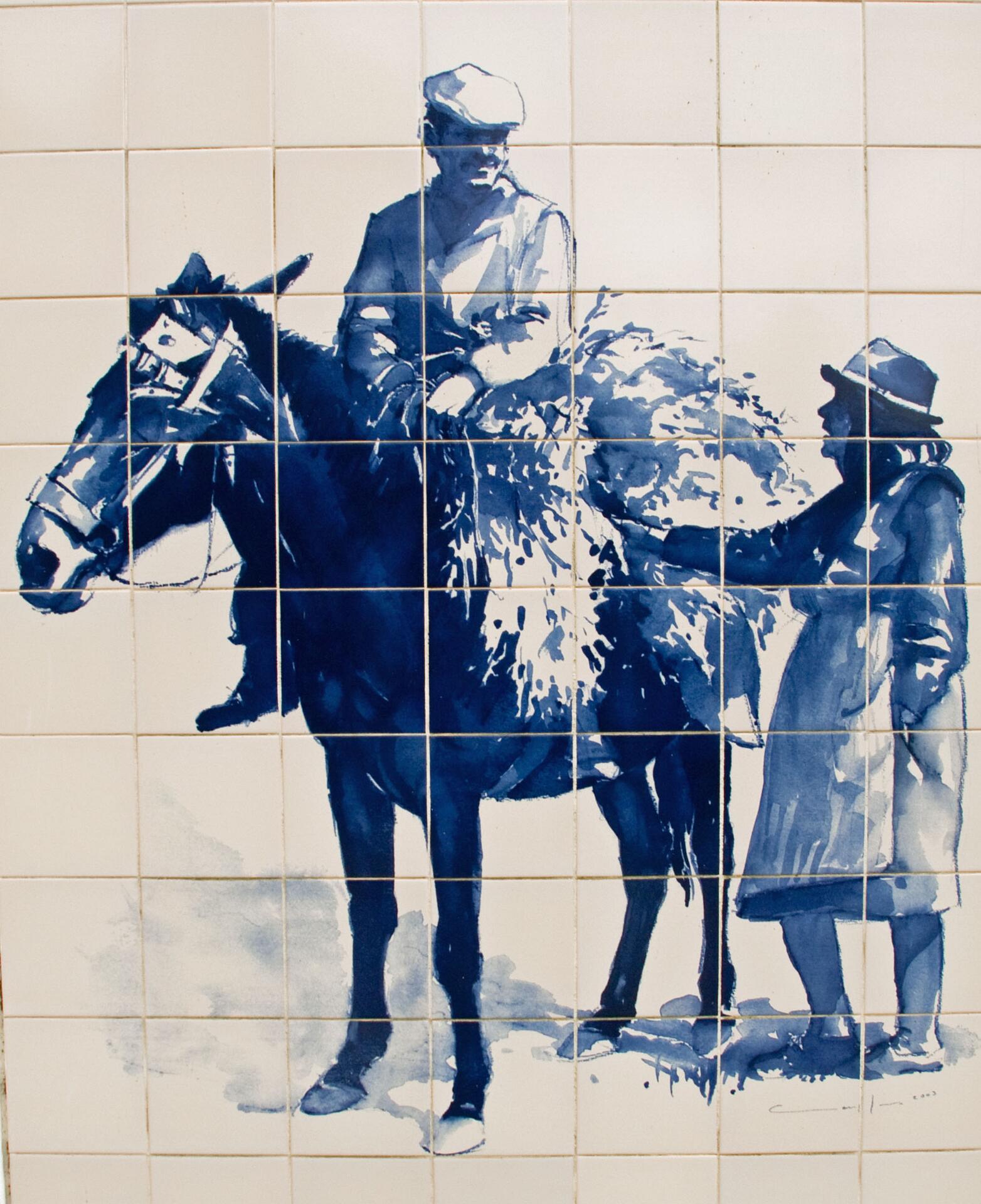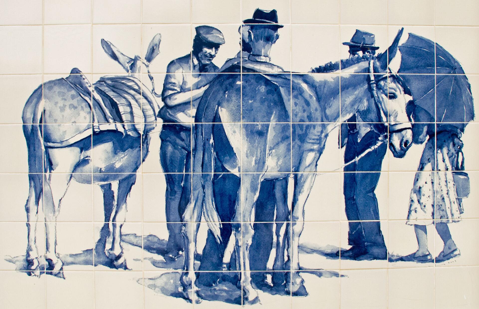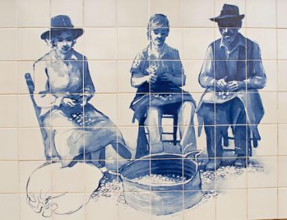 Tegeltableau voorstelling van 31 panelen met de traditionele activiteiten van Alcoutim, door Carlos Luz.