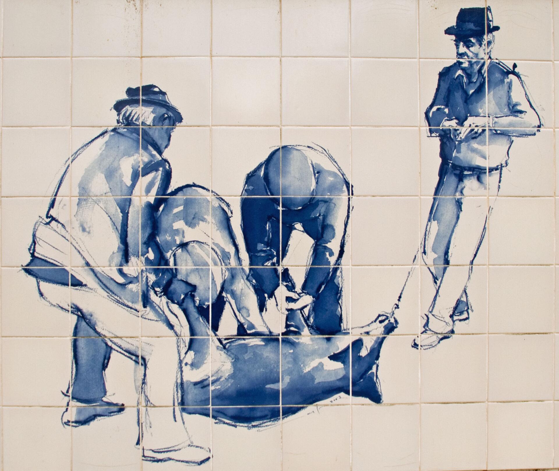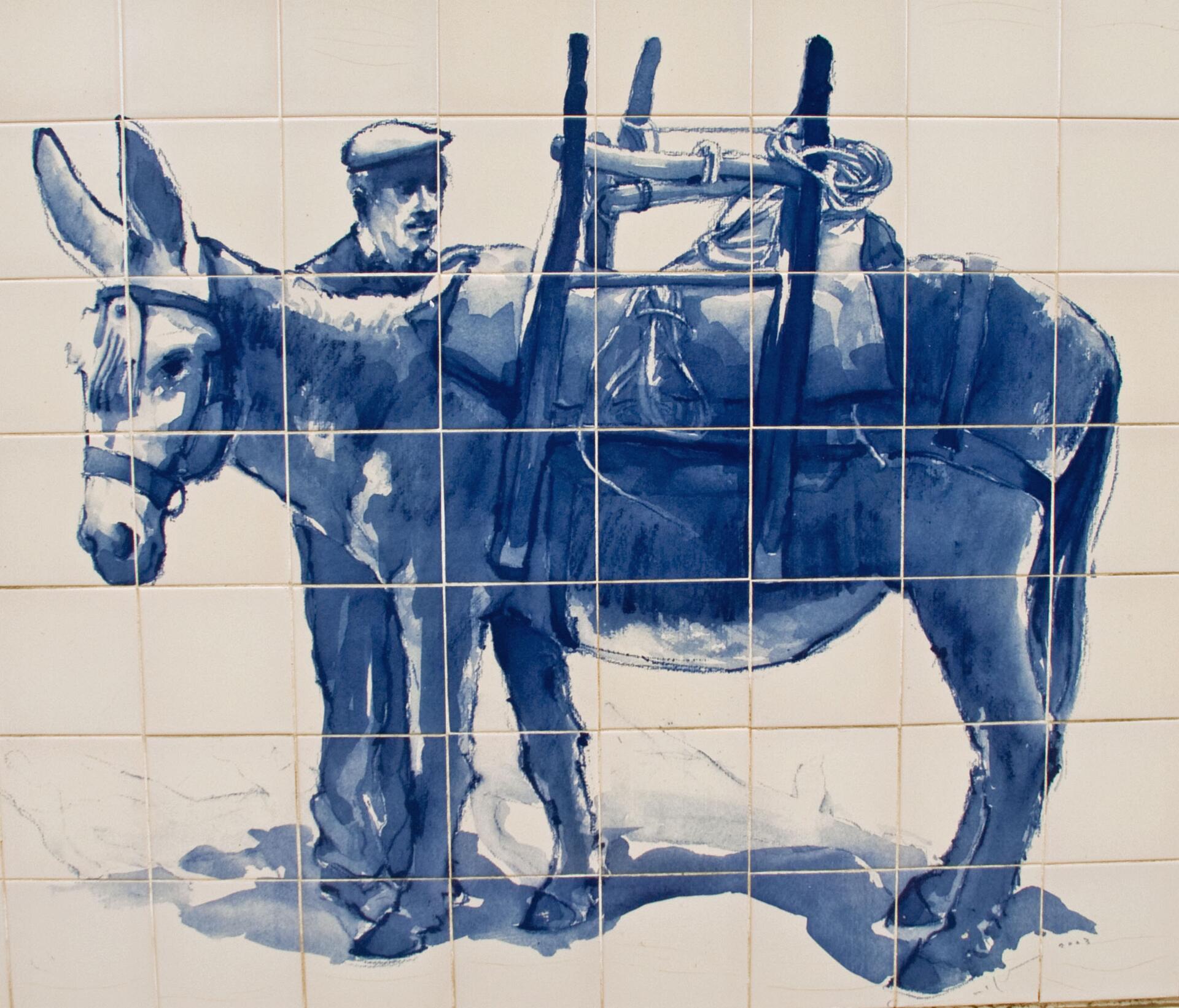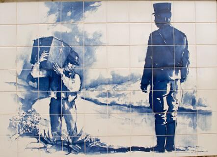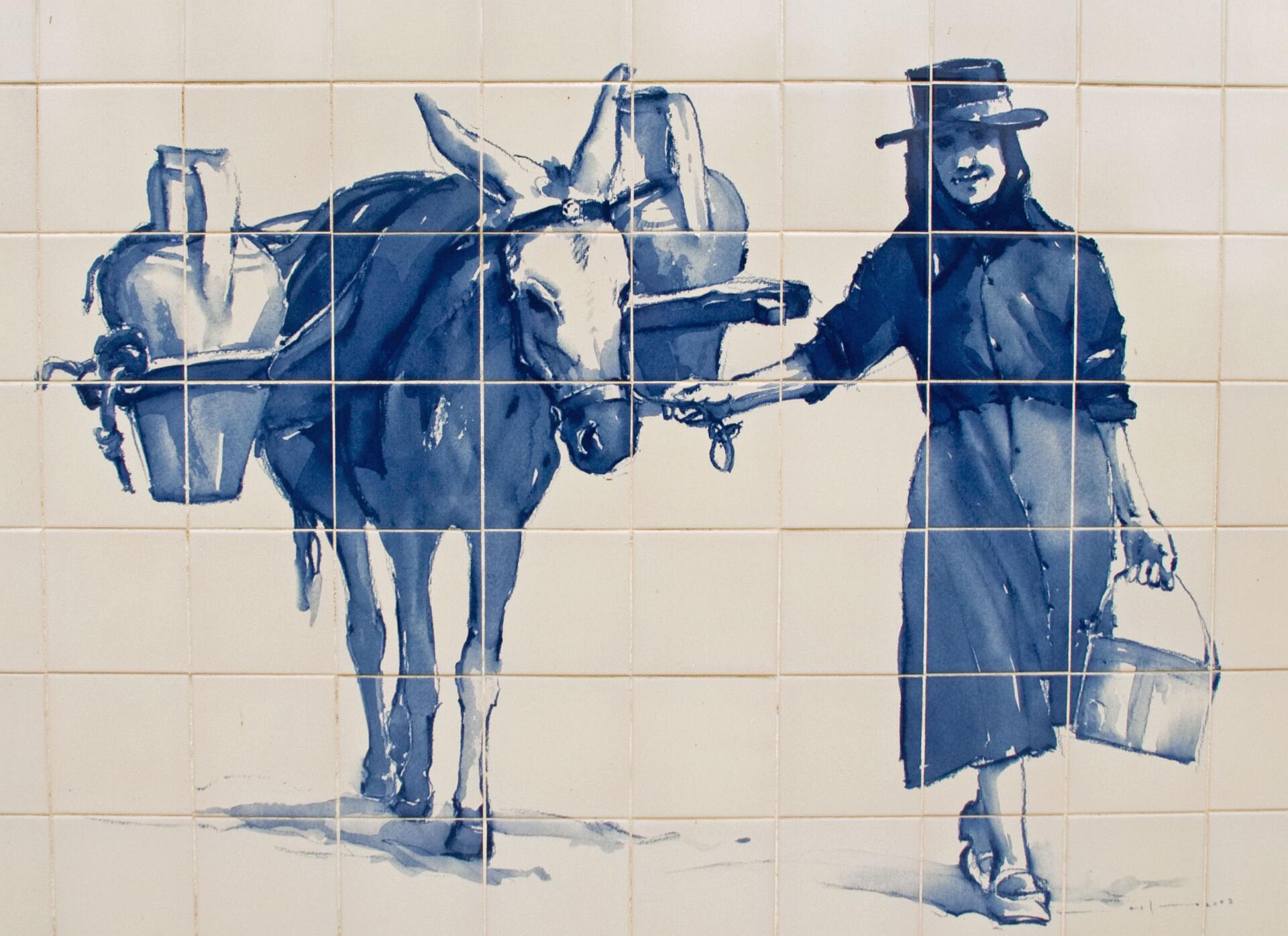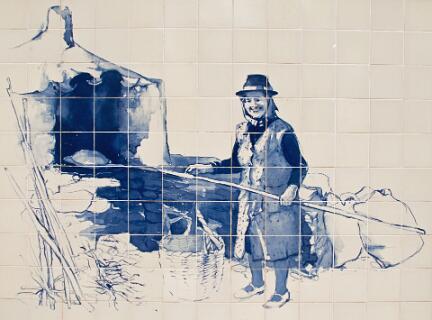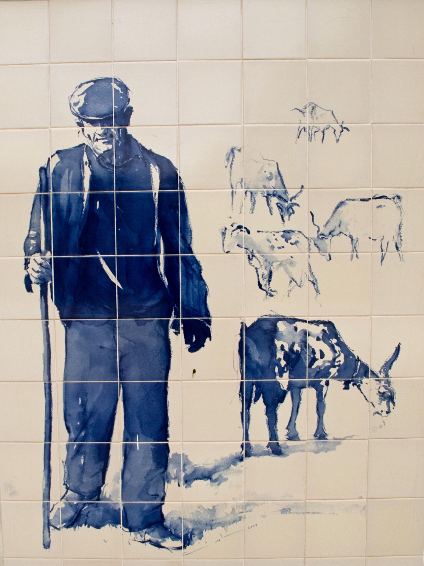 Tegeltableau voorstelling van 31 panelen met de traditionele activiteiten van Alcoutim, door Carlos Luz.