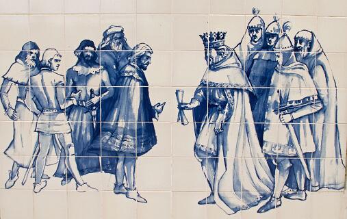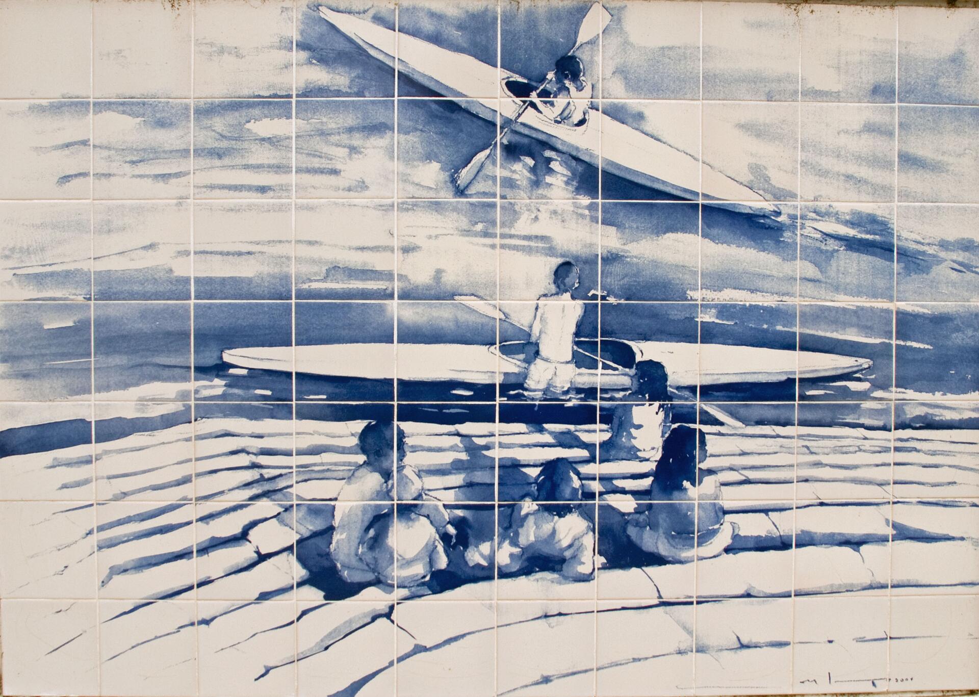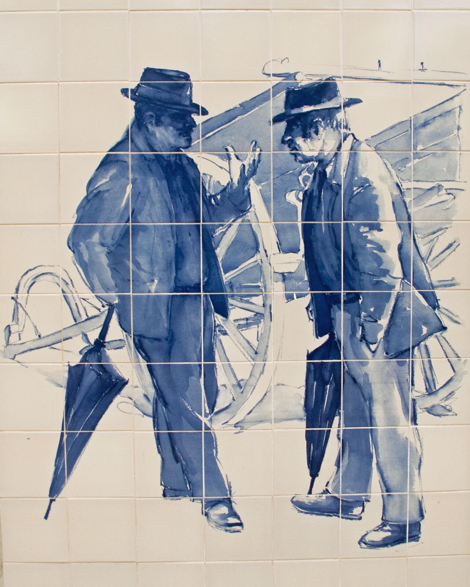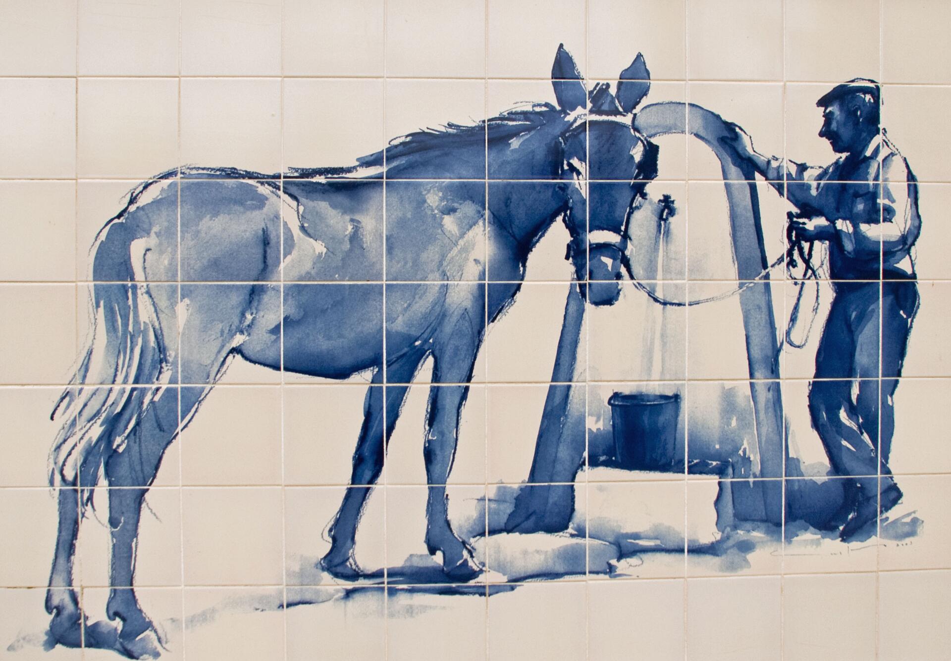 Tegeltableau voorstelling van 31 panelen met de traditionele activiteiten van Alcoutim, door Carlos Luz.