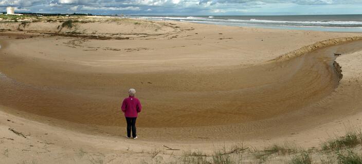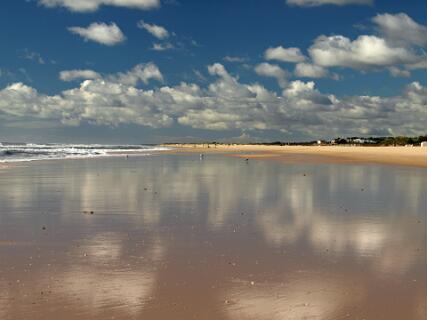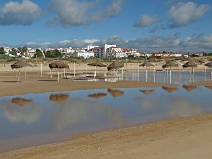 Dit is een strandwandeling vanuit Monte Gordo naar de meest westelijke, over het strand bereikbare, punt waar de lagune in de zee uitmondt. Heen en terug samen was dat in 2009 22km, maar door een doorbraak in 2010 is het 18km geworden.
