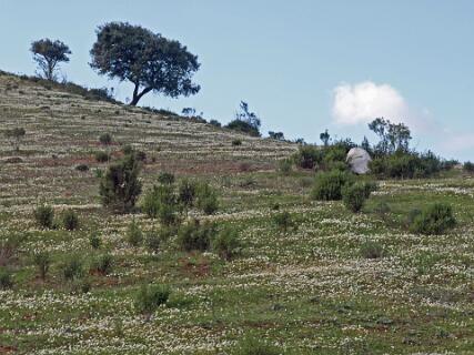 Dit is wandeling 14 uit het boekje '22 wandelingen door de Algarve'. Wij reden met de auto over Mesquita naar het einde van de weg tegenover Pomarao, het eindpunt van de voormalige spoorlijn. De mijnen zelf kunt U hier bekijken. De wandeling is 11km lang,