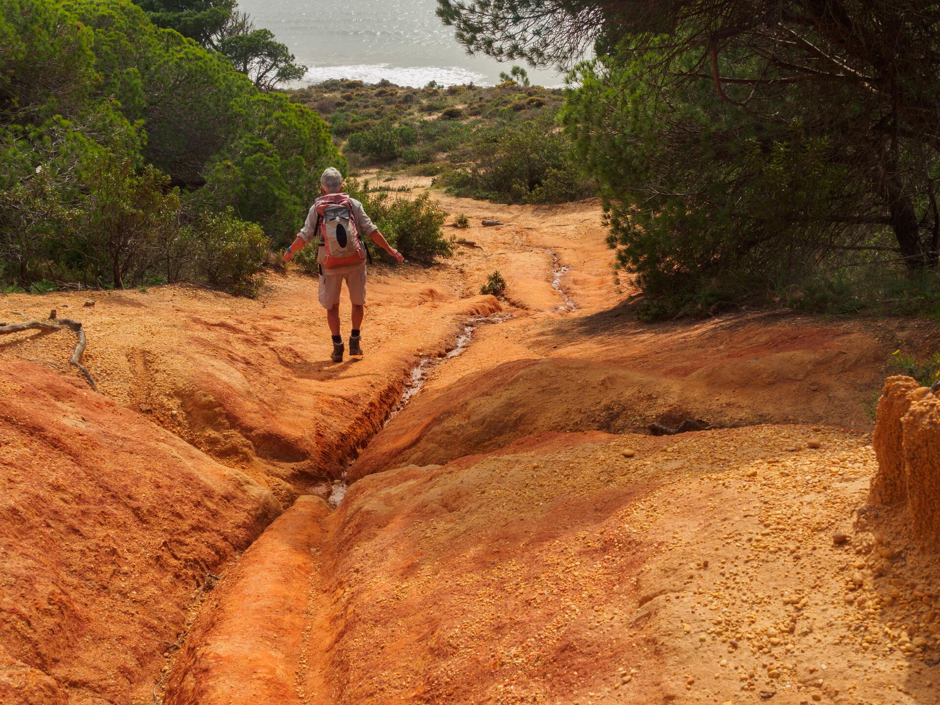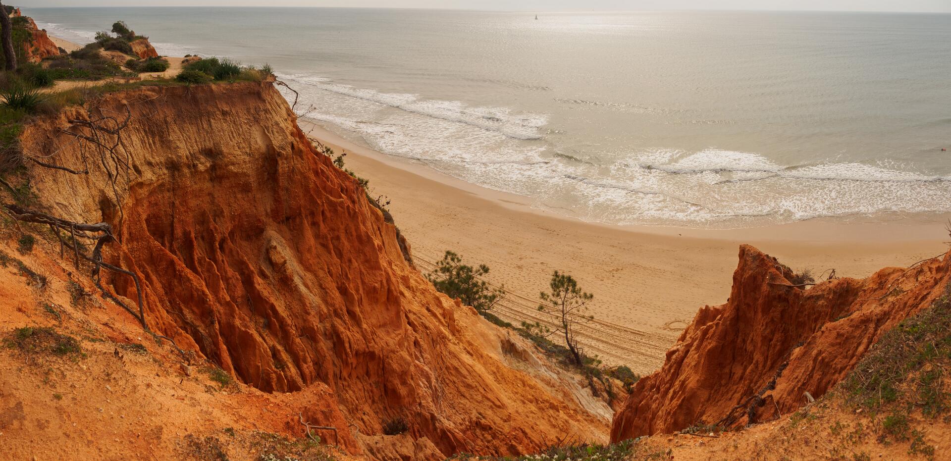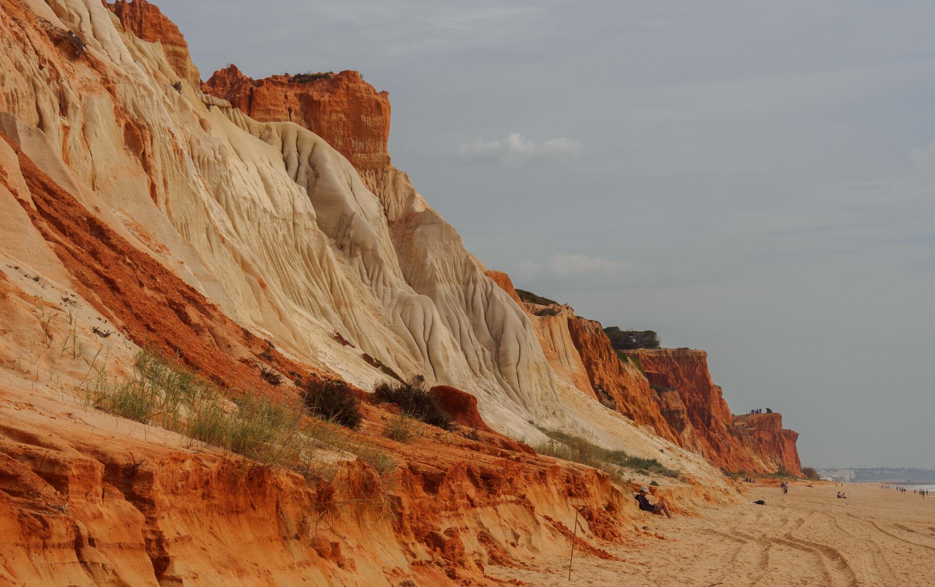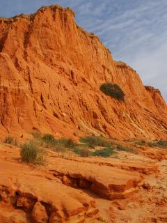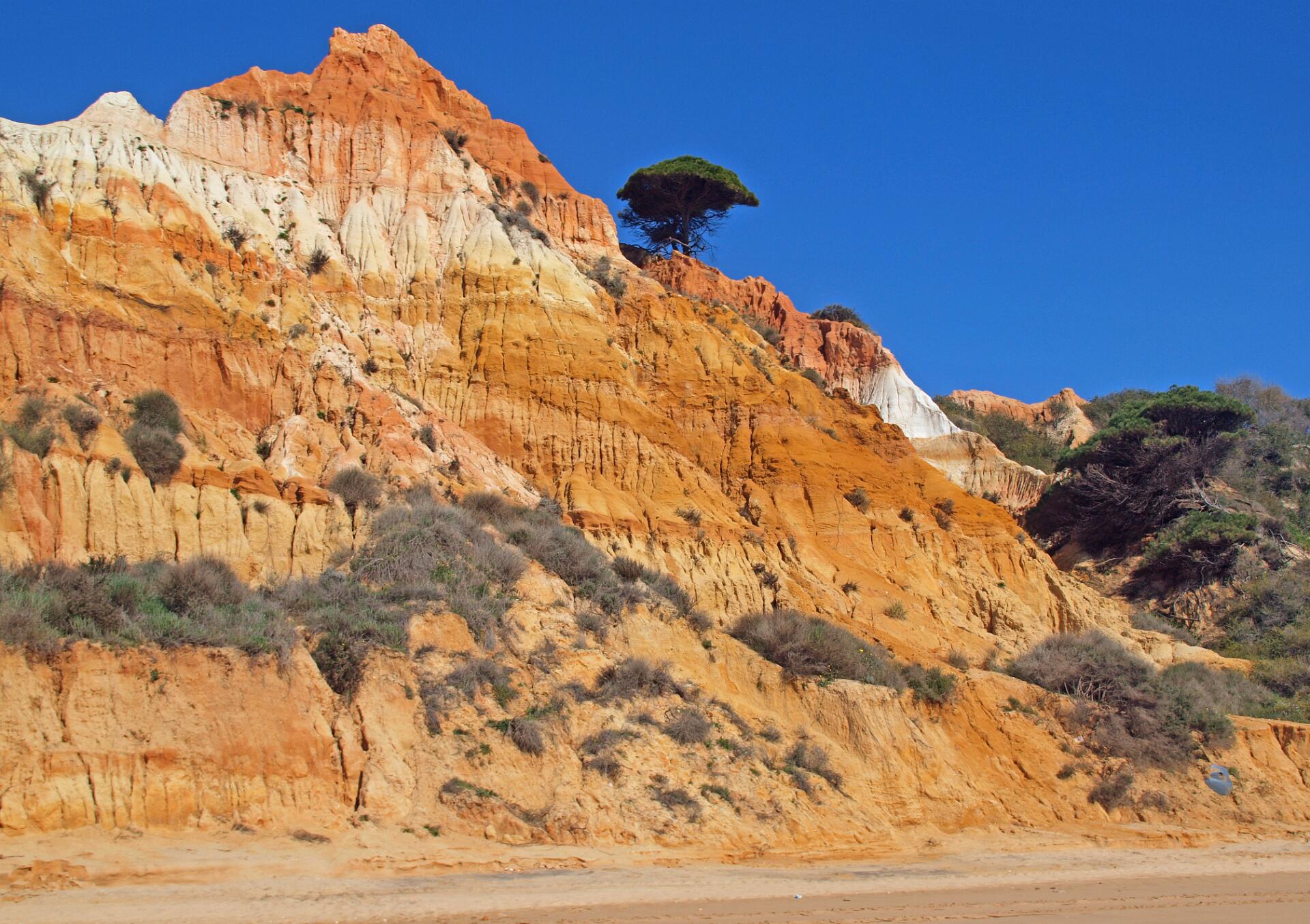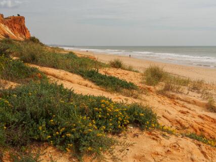 In 2011 liepen we vanaf het station van Boliqueime lnaar Alfamar en daarna over het strand naar Olhos de Agua. Dit is wandeling 16 uit de Rother Wanderfürer van Algarve. Daarna wilden we volgens wandeling 15 doorlopen naar Albufeira, maar dat kan helemaal niet als het niet volledig eb is. Hoger over de kust lopen is geen optie, want dat staat vol met resorts. We namen een taxi naar het station van Albufeira dat 6 km uit de kust ligt. Totaal 21km, rode spoor. In 2017 liepen we weer vanaf het station van Boliqueime naar Praia de Falesia en vandaar via het strand naar Quarteira waar we met de bus terugreden naar Faro. Totaal 15km, groene spoor en foto 15 en volgende.