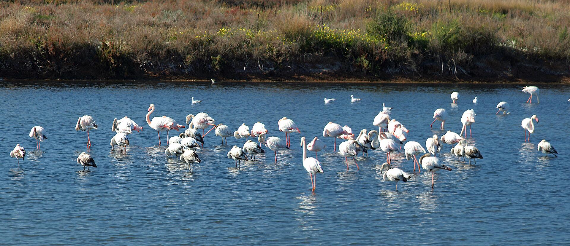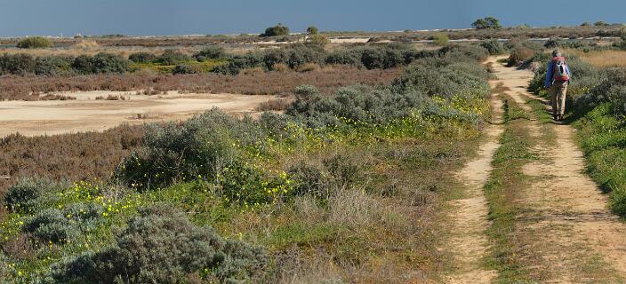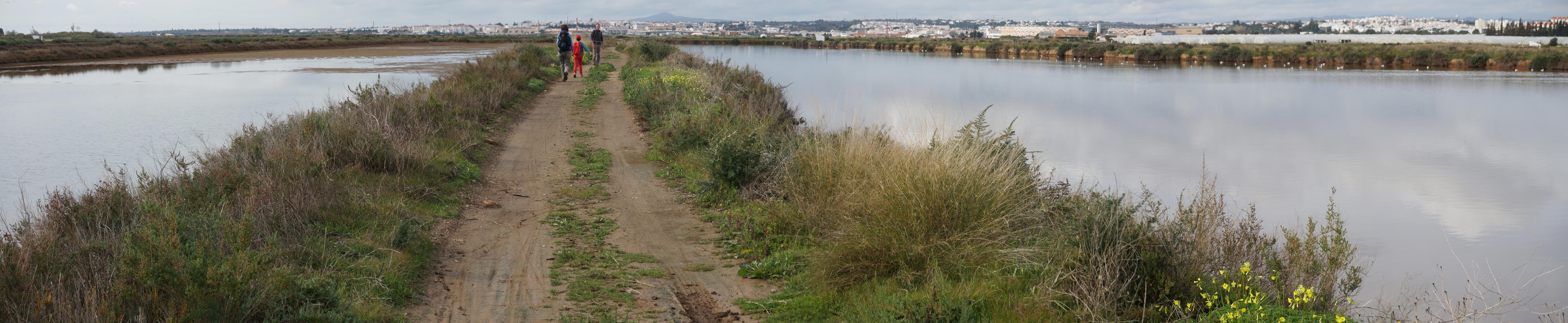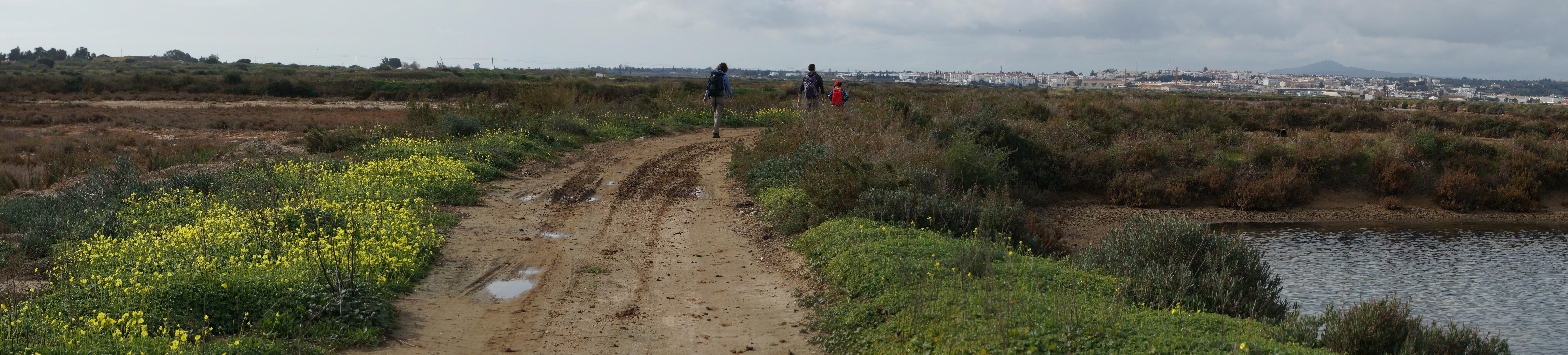 Vanuit het station van Concencao liepen we eerst naar Cabanas en daarna in 2012 via het fietspad richting Tavira, naar de monding van de Rio Gilao. Daarna liepen we in door de zoutpannen langs de Ribeiro de Almagem via Cabanas terug naar het station van Concencao. Totaal 14km (rode route). In 2013 liepen we de route andersom en liepen we op het einde direct naar Concencao. Totaal 13km (gele route). In 2014 liepen we een korte route (4km, licht blauw). In 2025 liepen we eerst naar het café in Conceicao en daarna liepen we via de kortste weg naar de zoutpannen en weer terug naar het station, Dat is de donker blauwe route van 10km,