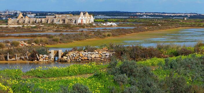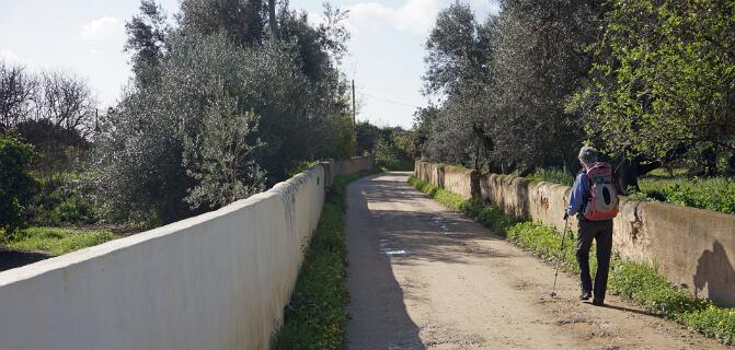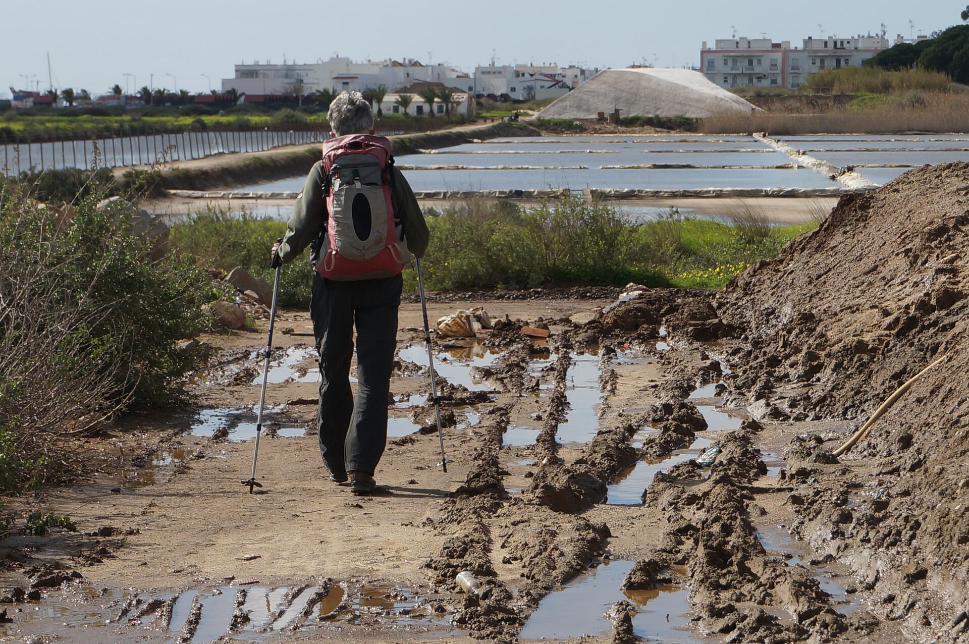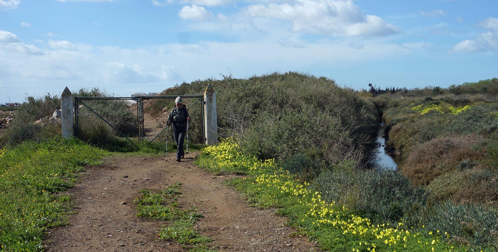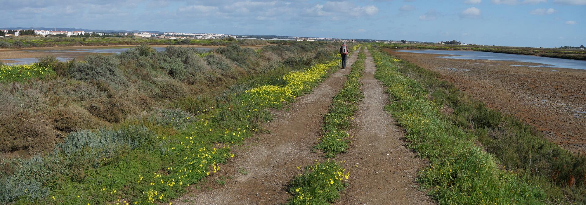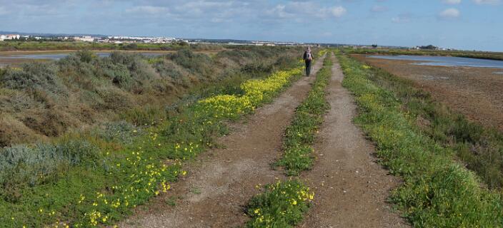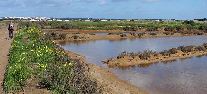 Deze wandeling van 11km gaat langs de Aldi over een stukje van de Romeinse weg en daarna via een klein paadje en 2 gaten in een hek naar Santa Luzia. We hebben daarna zonder succes getracht een nieuwe weg te vinden in de zoutpannen tussen Santa Luzia en Tavira, maar de weg is of verboden of je kunt niet over het water komen. We liepen daarom langs de zoutpannen via de gebruikelijke weg terug naar Tavira. Dit spoor staat ook op Wikiloc.In 2020 was het gat in het hek er nog steeds, maar het pad leek overgroeid. We hebben daarom een nieuwe route gezocht. Dat is de gele route geworden, een rondwandeling van 8km. We hebben in 2020 wel een route door de zoutpannen gevonden, zie hier.