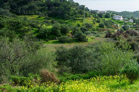 We liepen 19km, eerst van Tanoeiro tot voor Azinhal (rode spoor, 9km) en daarna van Azinhal naar Alcaria (gele spoor, 10km). Het paarse spoor van 4km tot in Azinhal hebben we niet gelopen omdat Primavera het nodig vond om een bus in te zetten.