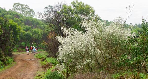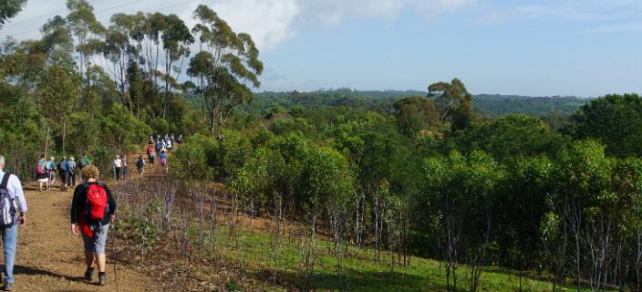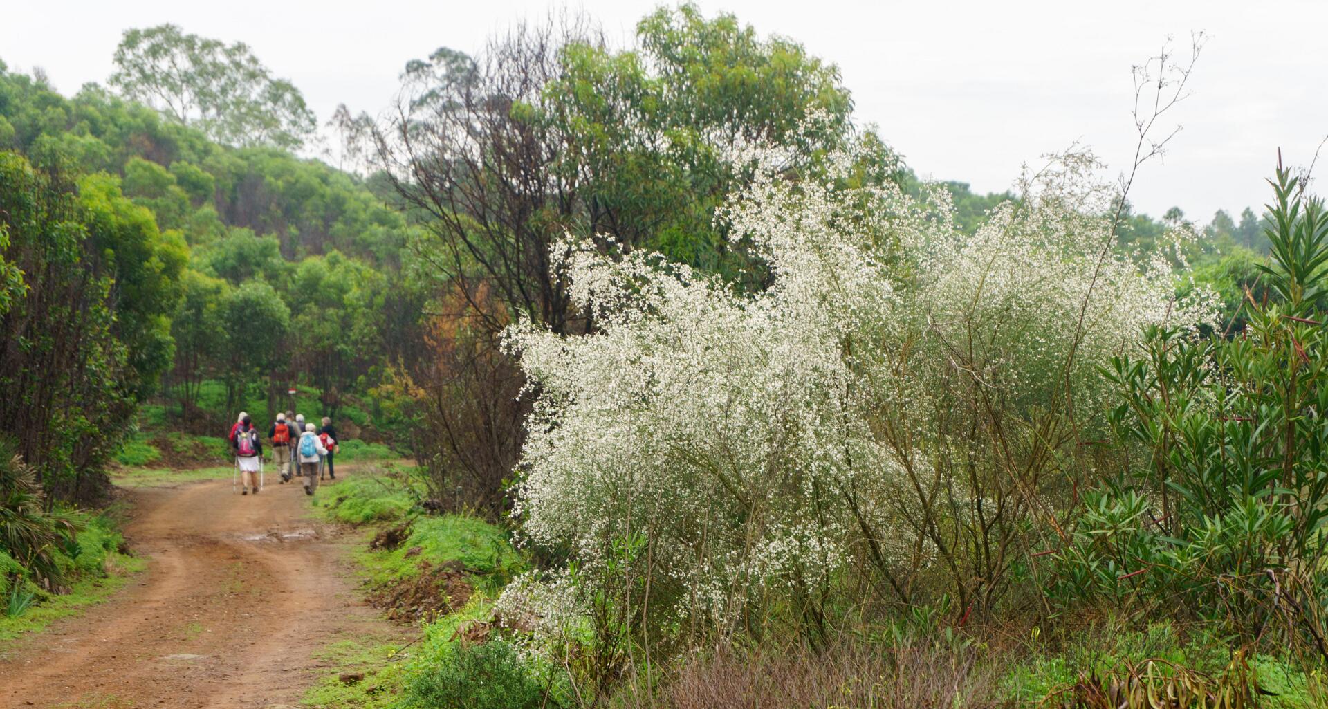 Eerst een wandeling door het bos en daarna door het open land naar Santa Rita, totaal 15km