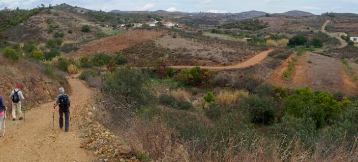 Een pittige wandeling van 22km van het station van Conceicao naar het station van Cacela via Malhada do Peres, Caseta, Ribeira da Gafa en Pocinho