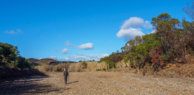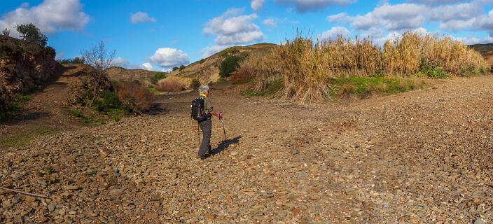 Een wandeling van 15km vanaf het station van Conceicao, voor een groot deel over de bodem van de Almagem rivier, die uiteraard alleen gedaan kan worden als het lange tijd droog geweest is. Zie hier voor een soortgelijke route als er water staat in de Almagem rivier. Zie ook spoor uit 2020 op Wikiloc waarbij niet over de bodem gelopen werd.