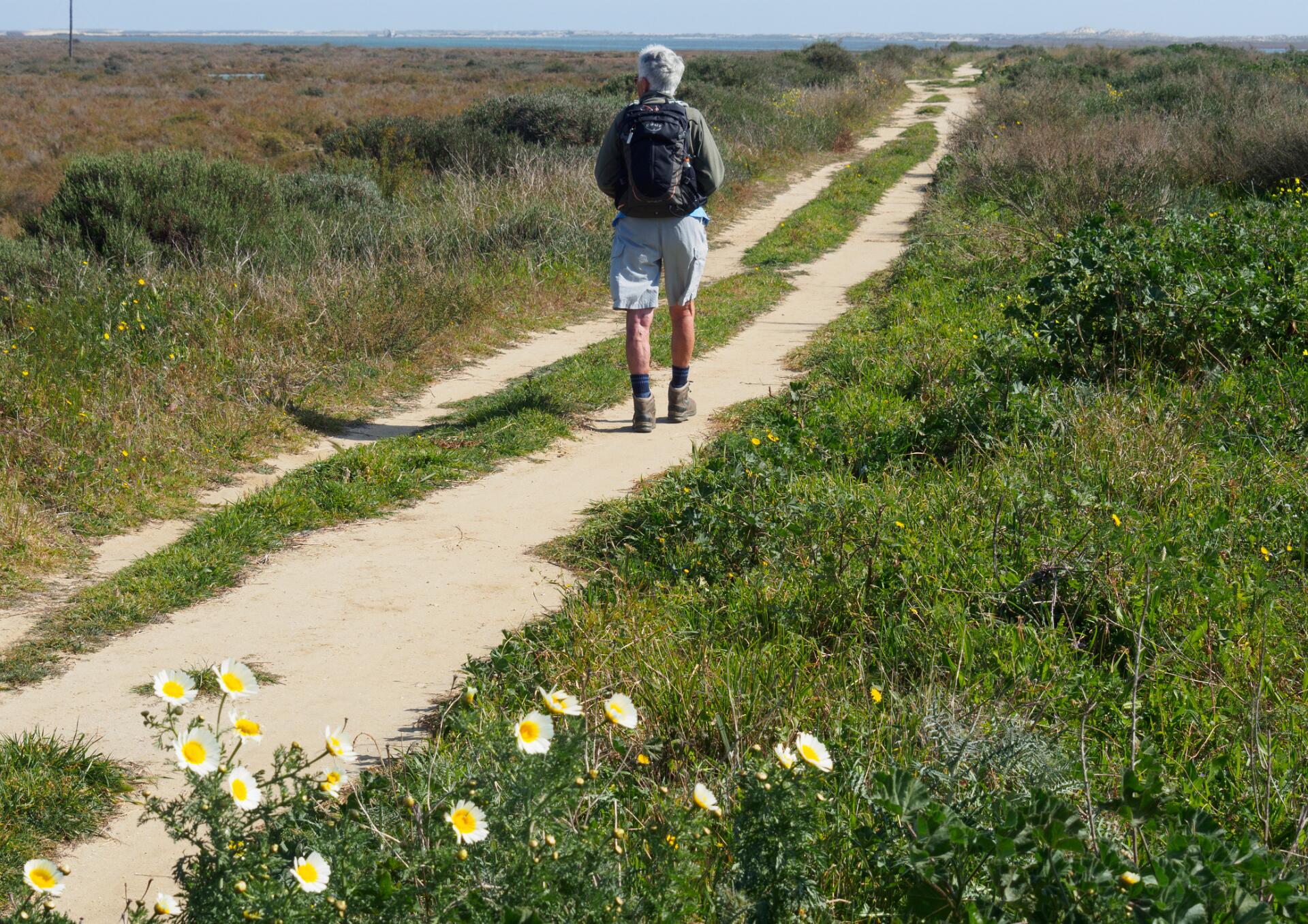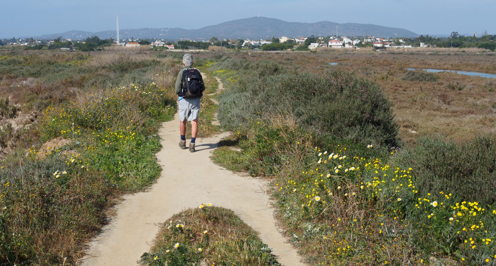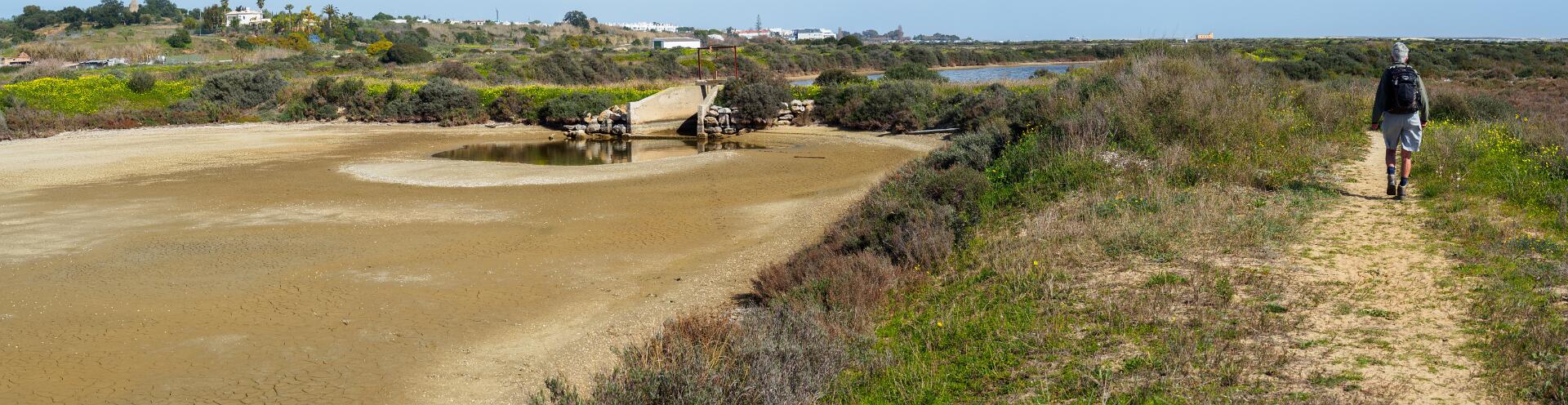 Een vlakke wandeling van vanuit het Station Fuseta-A. Eerst in westelijke richting langs de kust boven de lagunes en daarna terug door de lagunes en zoutpannen. Deze wandeling van 9km (rode spoor) volgt deels de PR3 route. In 2023 liepen we de PR3 van 11km (paarse spoor) die ook op Wikiloc staat,