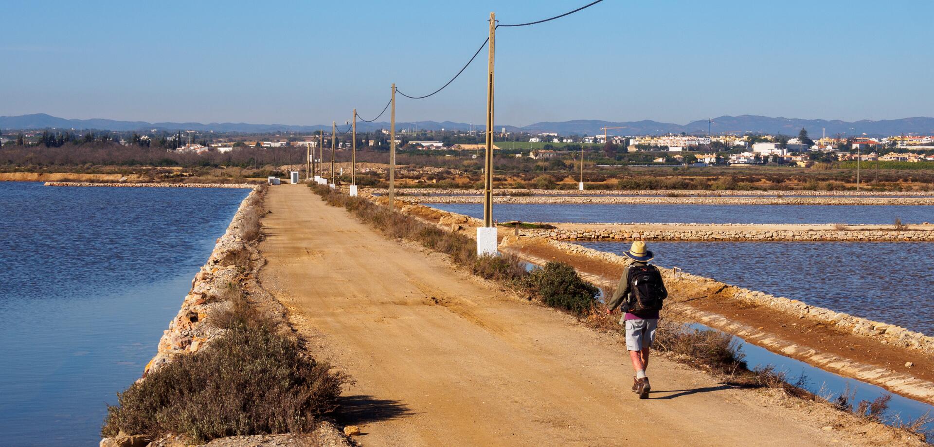 Dit is een 12km lange wandeling vanaf Porta Nova door de zoutpannen ten westen van Tavira.