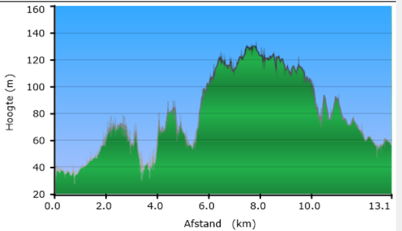 . De totale stijging is 173m. De wandeling