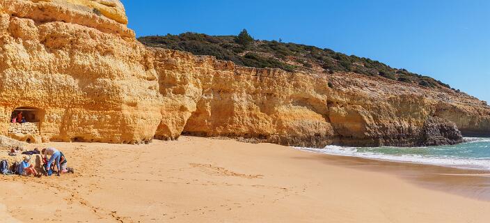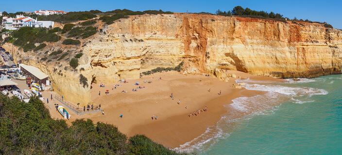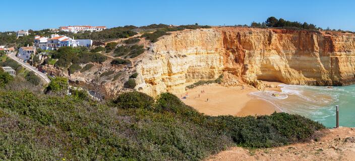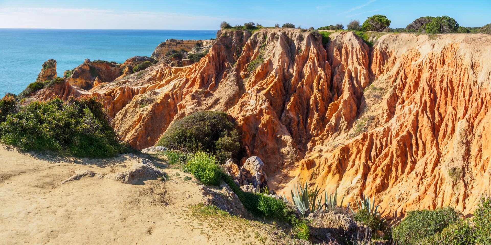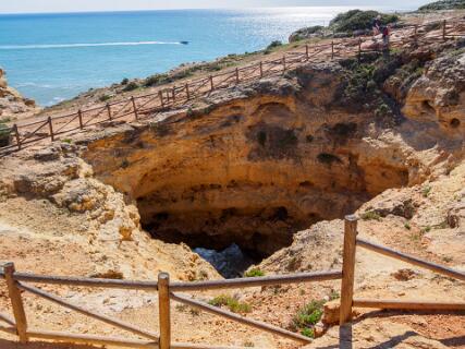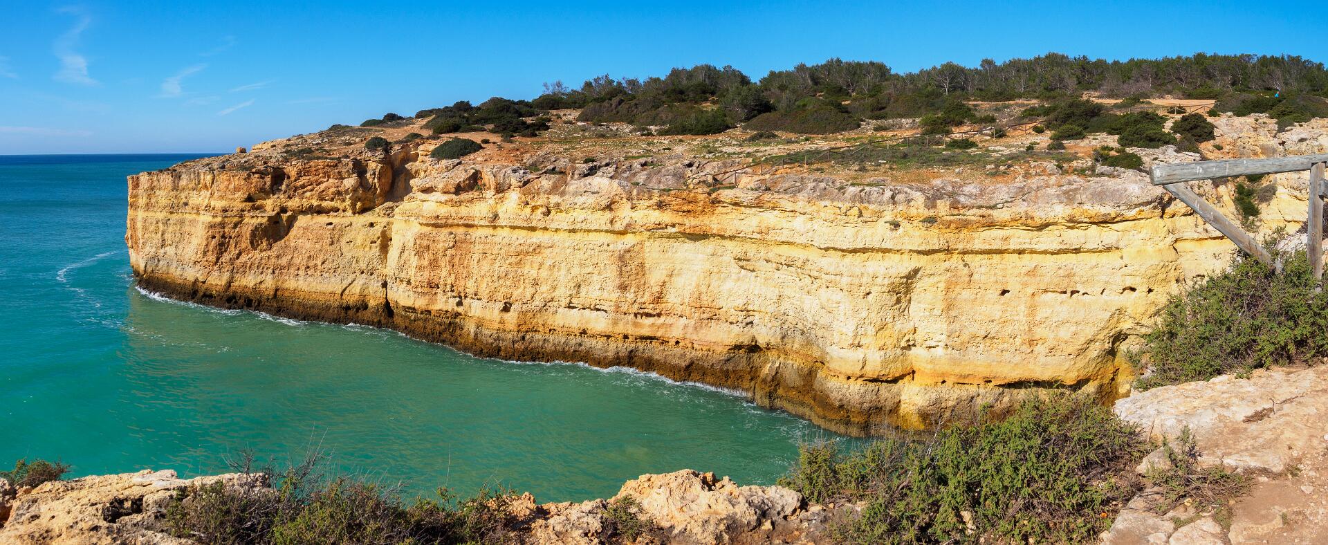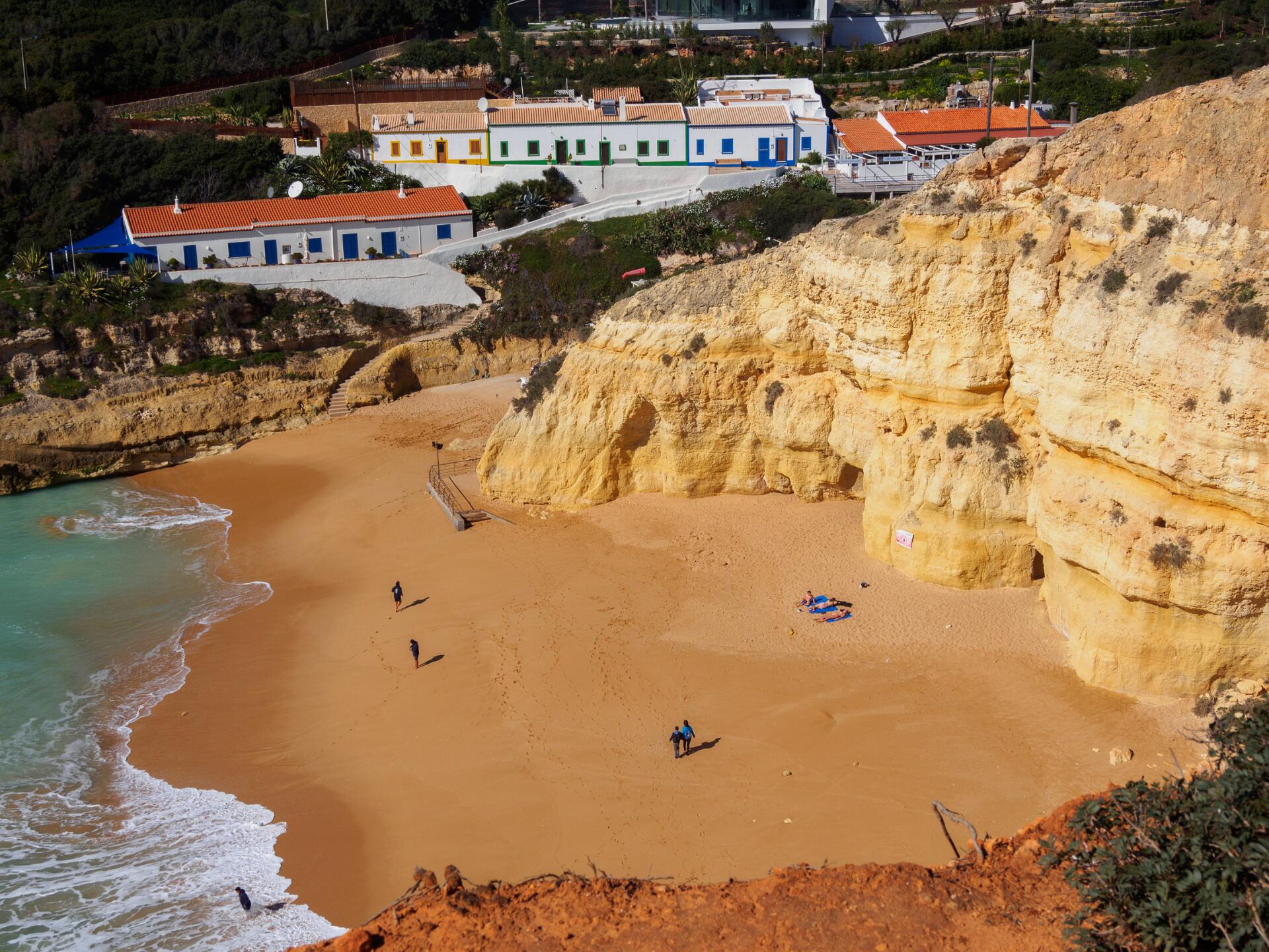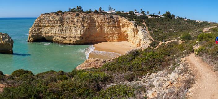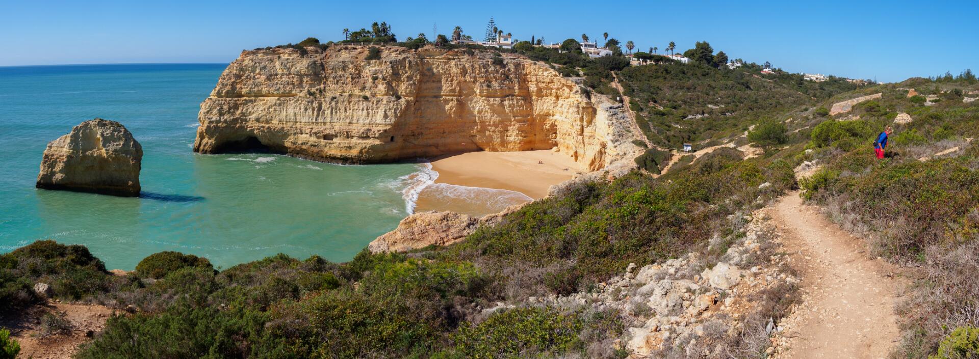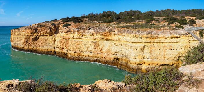 Dit is de Seven Hanging Valleys trail die we voor een deel liepen vanuit Praia da Marinha naar het westen. Dit is een route van ruim 6km naar Praia do Vale de Centeanes, die je heen en terug moet lopen. In 2004 waren we ook hier, zie dit album. Een beschrijving van een meerdaagse tocht in dit gebied staat hier.