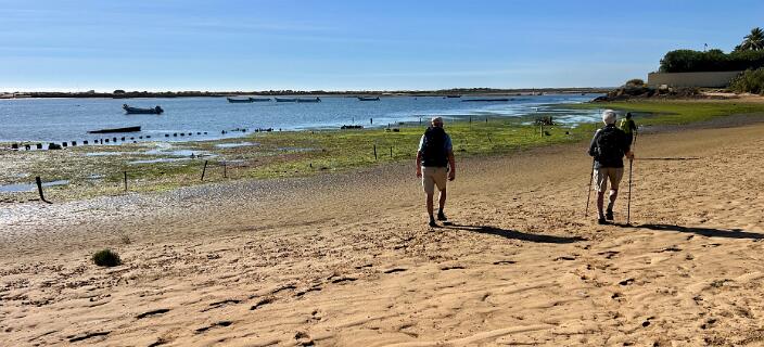We liepen vanuit Manta Rota via het strand naar de meest westelijke punt en gingen daar door de lagune naar Cacela Velha en vervolgens naar Fabrika, Via de noordzijde van de lagune liepen we terug naar Manta Rota.Deze wandeling is 8km lang en er moest 23m geklommen worden.