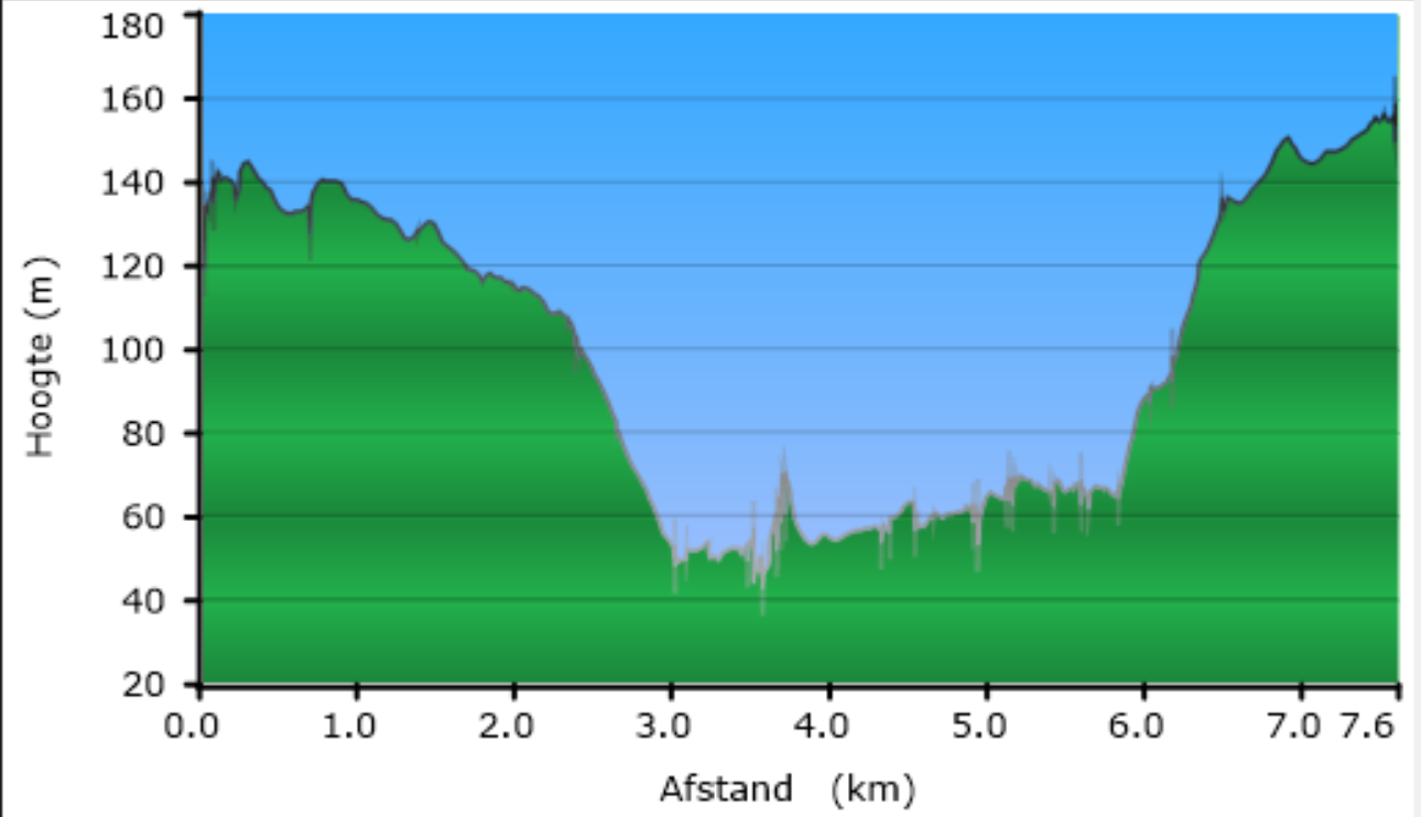 Later liepen we een variant van deze route, de blauwe route van ruim 7km, die ook op Wikiloc staat.