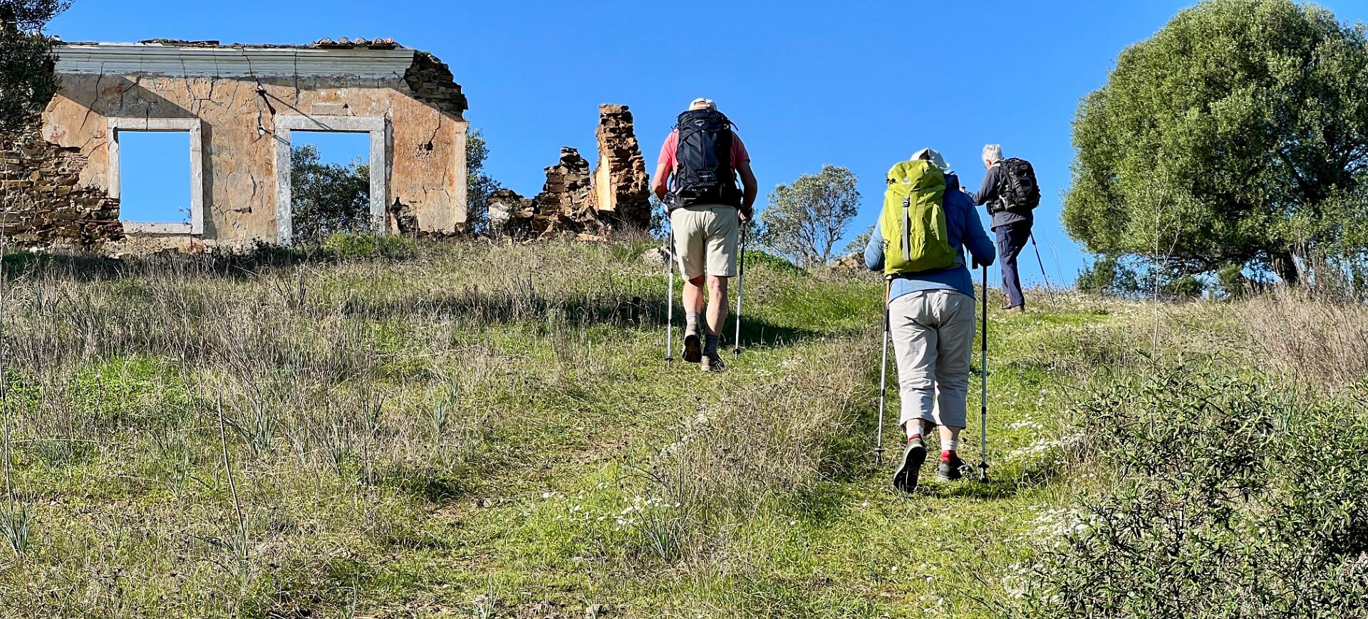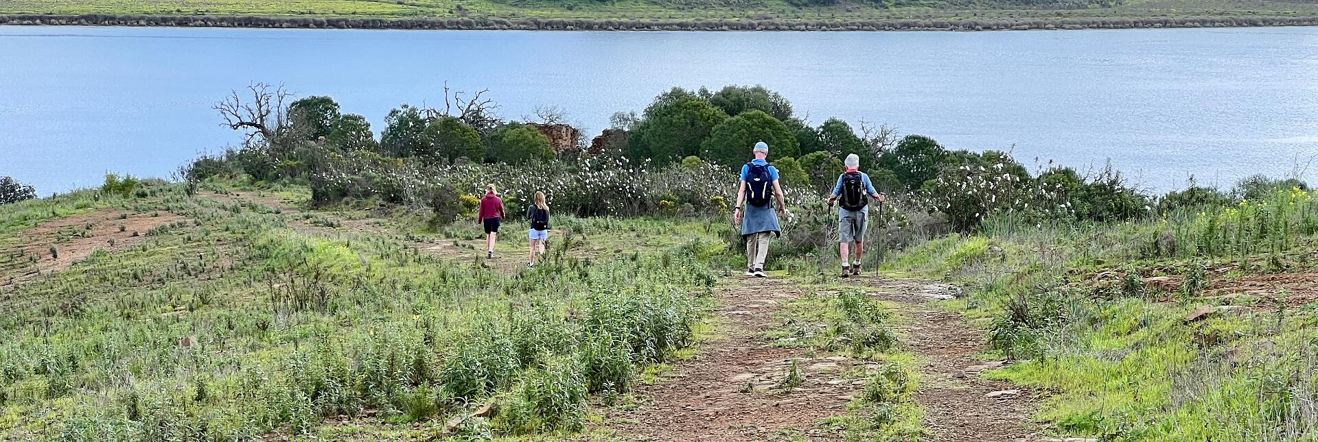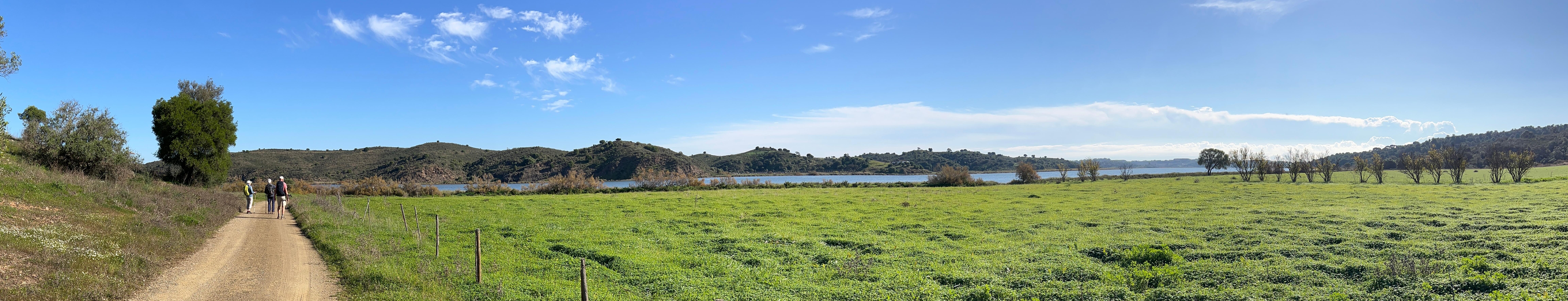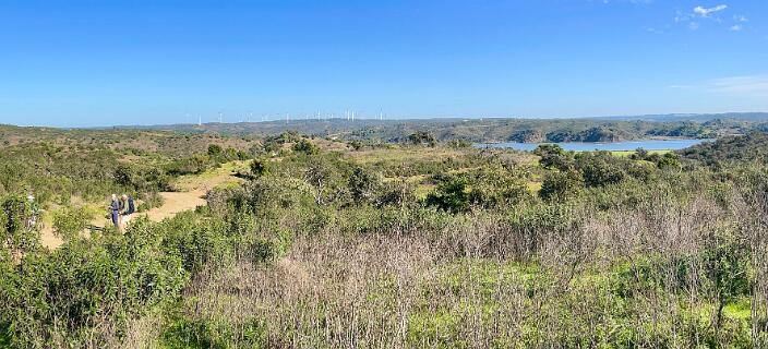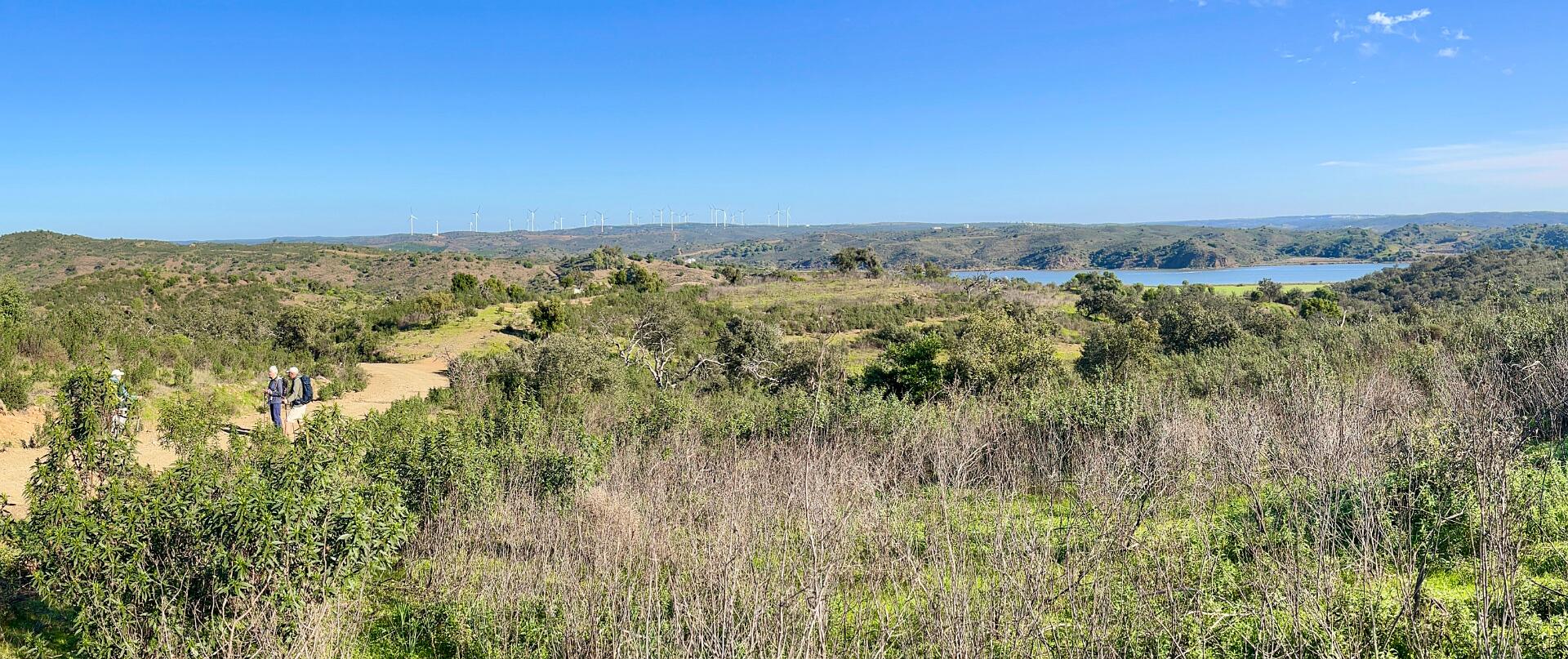 Een rondwandeling van 8km van Azinhal naar de Guadiana rivier en daarna terug langs de Choças-molen, waarbij 68m geklommen moest worden, Dit is de rode route,