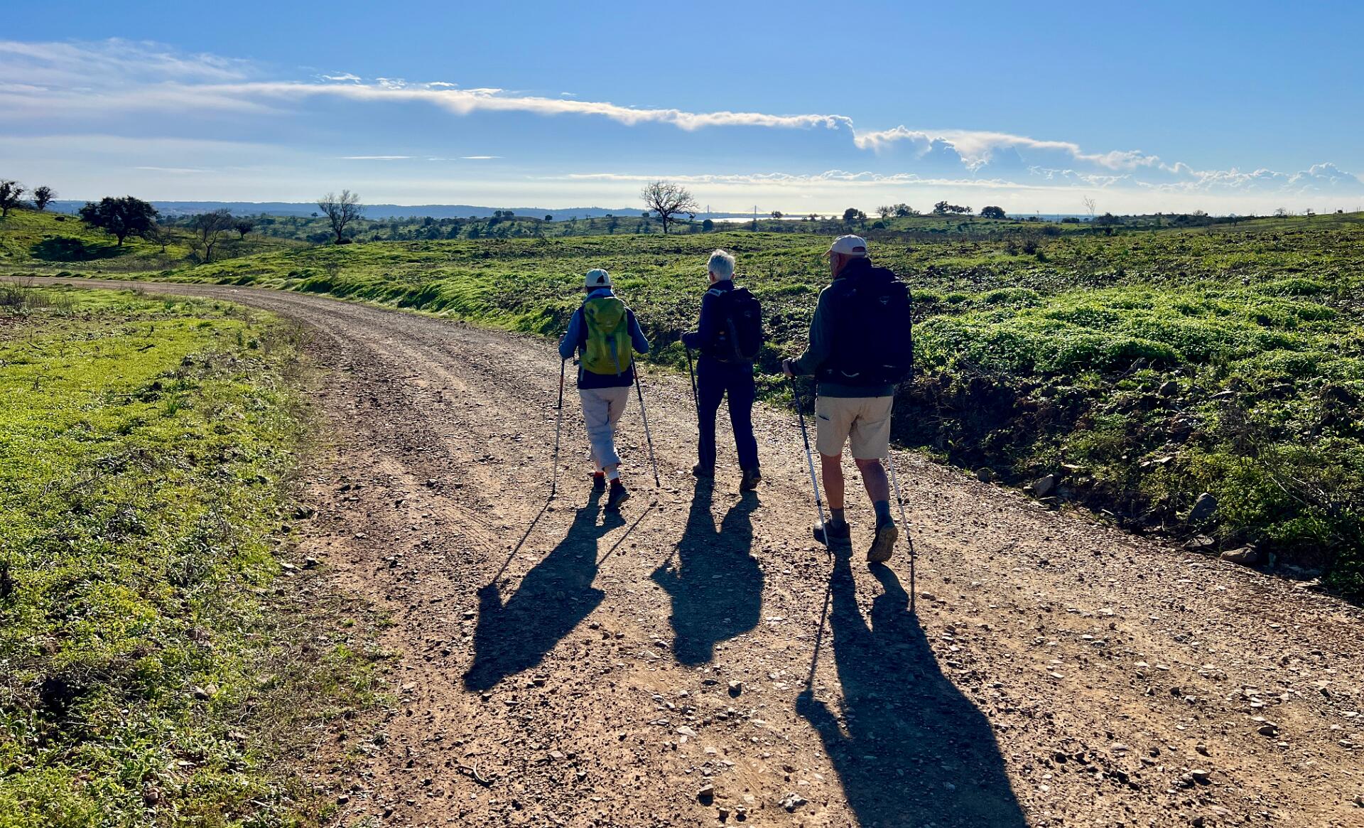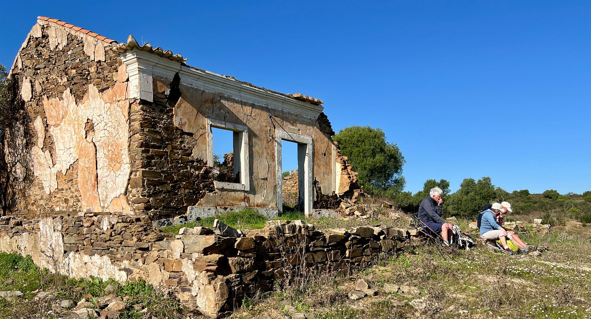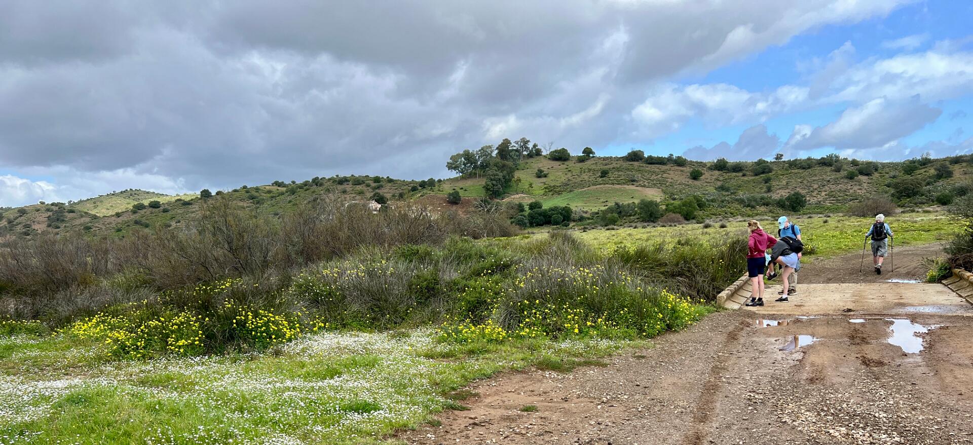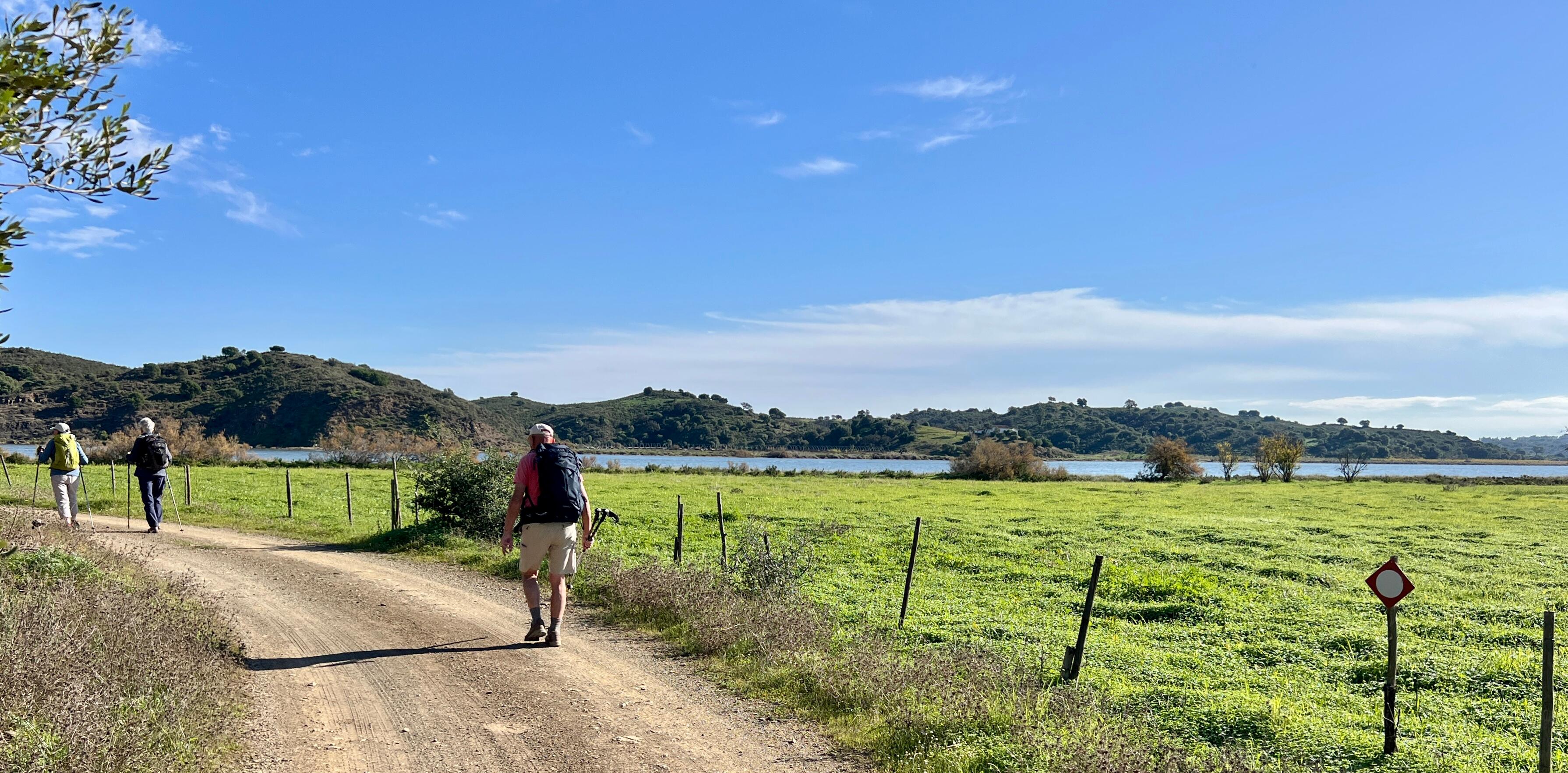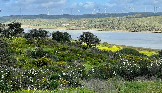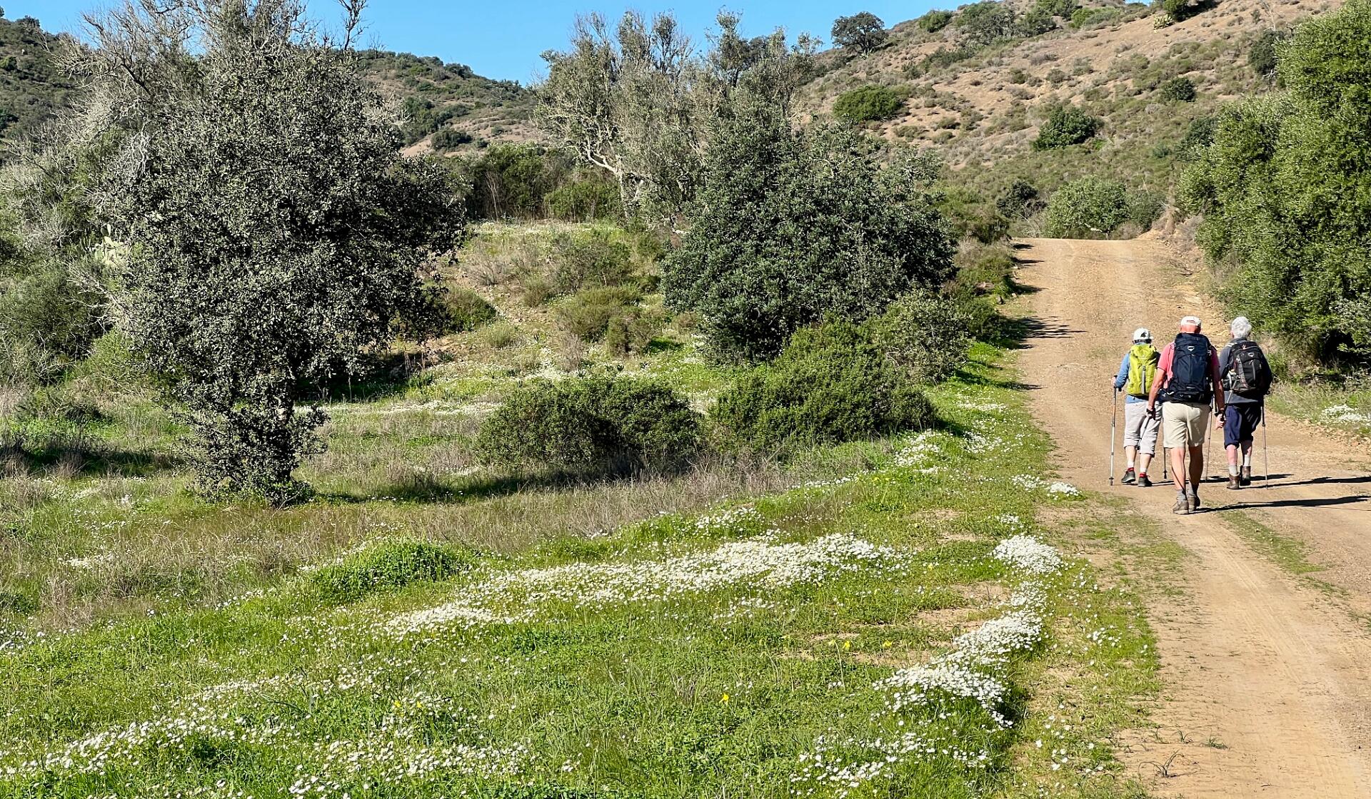 Een rondwandeling van 8km van Azinhal naar de Guadiana rivier en daarna terug langs de Choças-molen, waarbij 68m geklommen moest worden, Dit is de rode route,