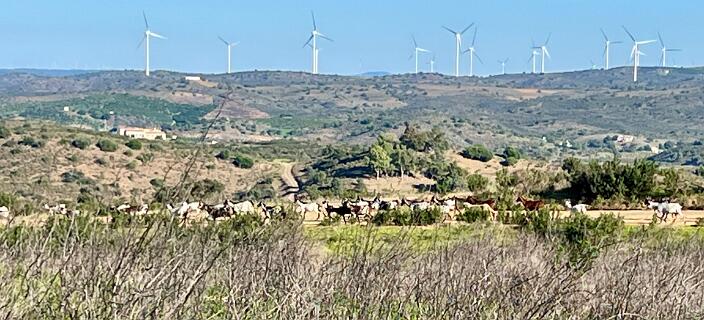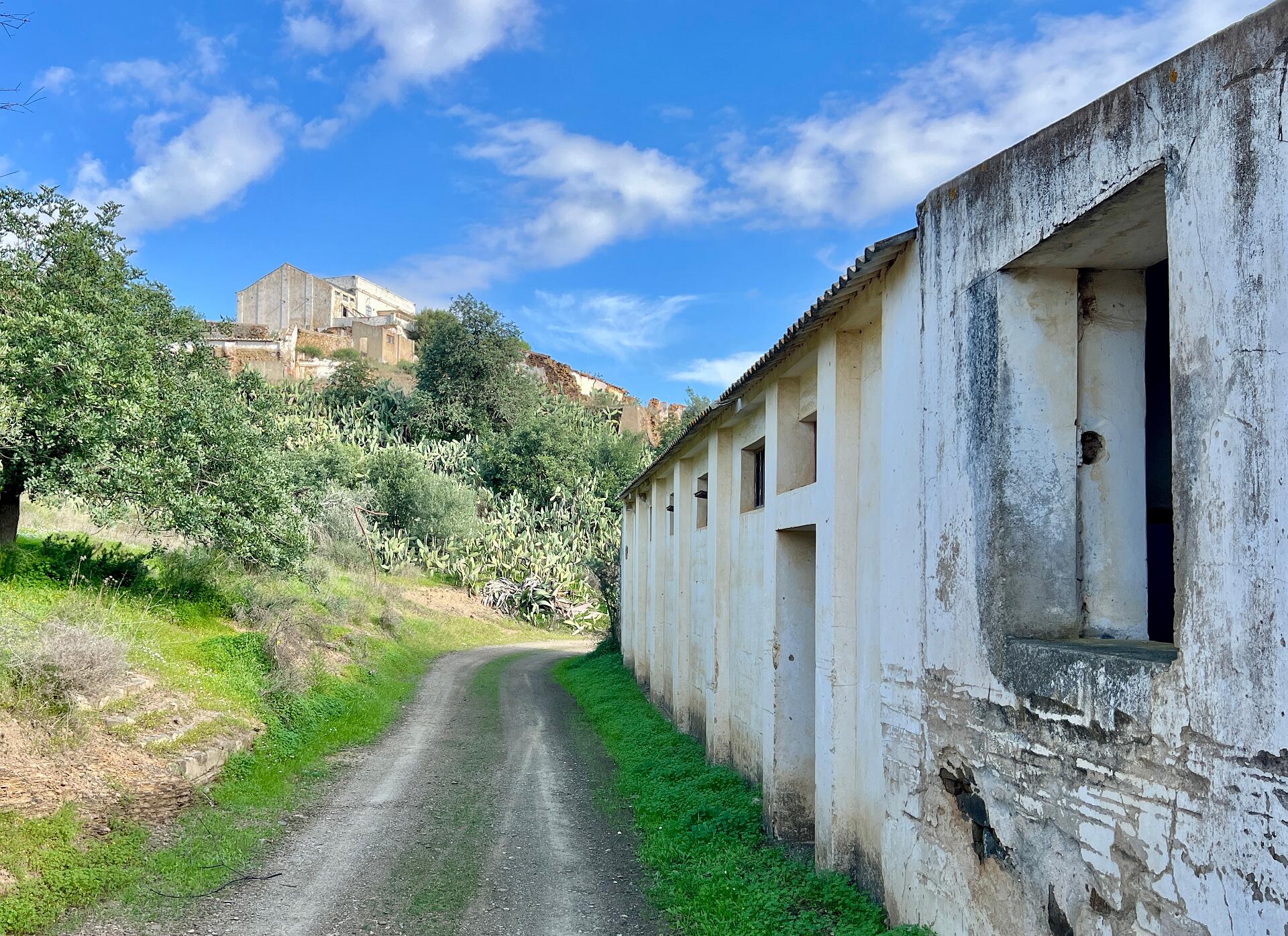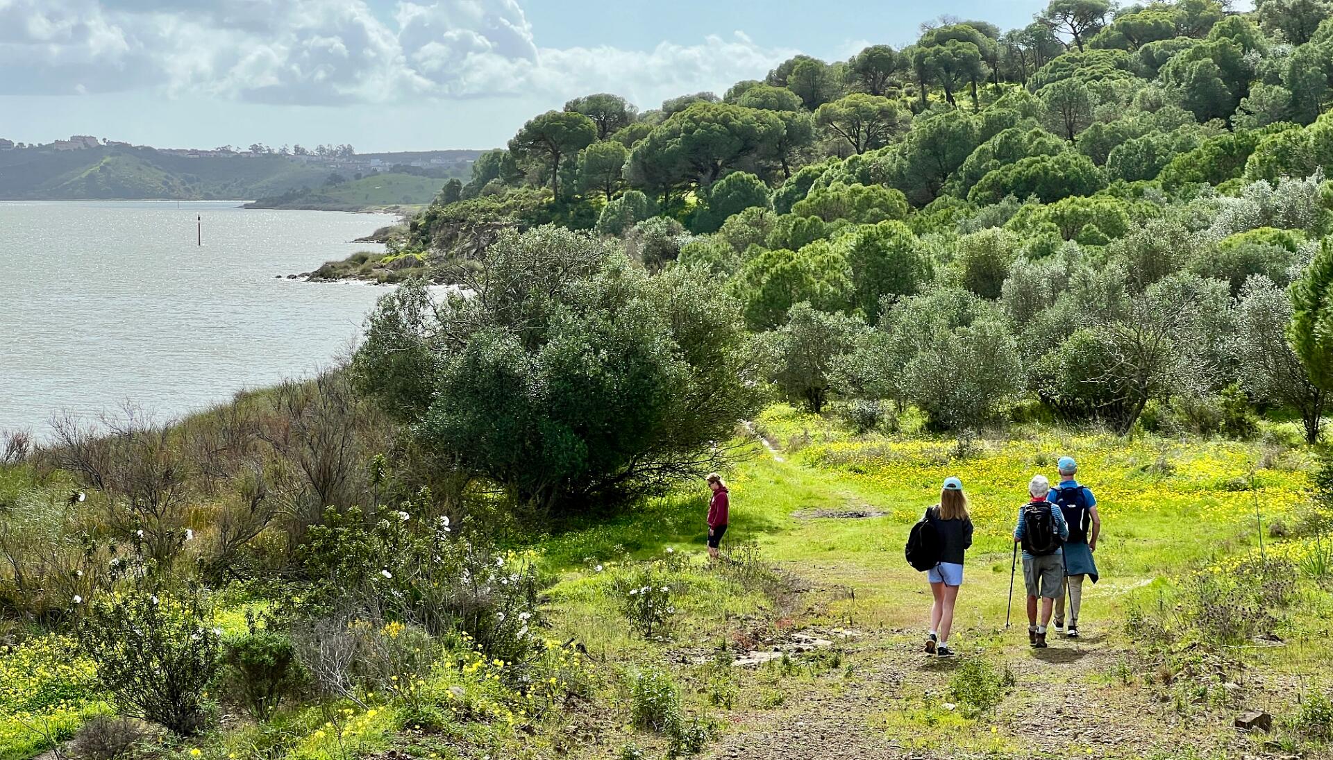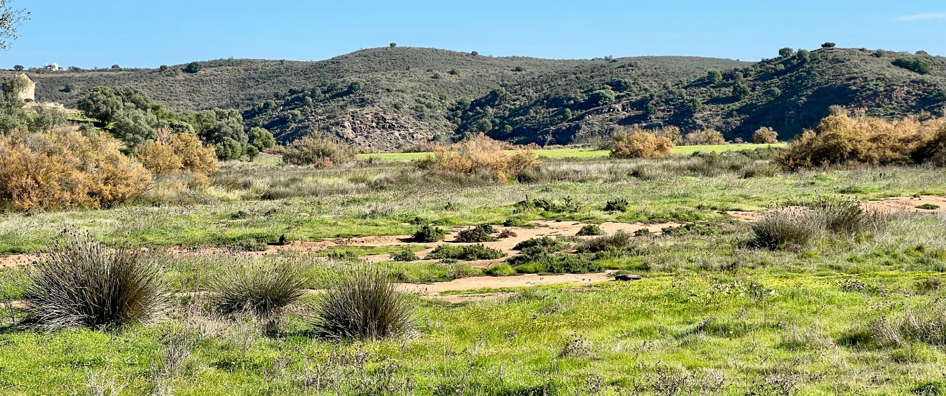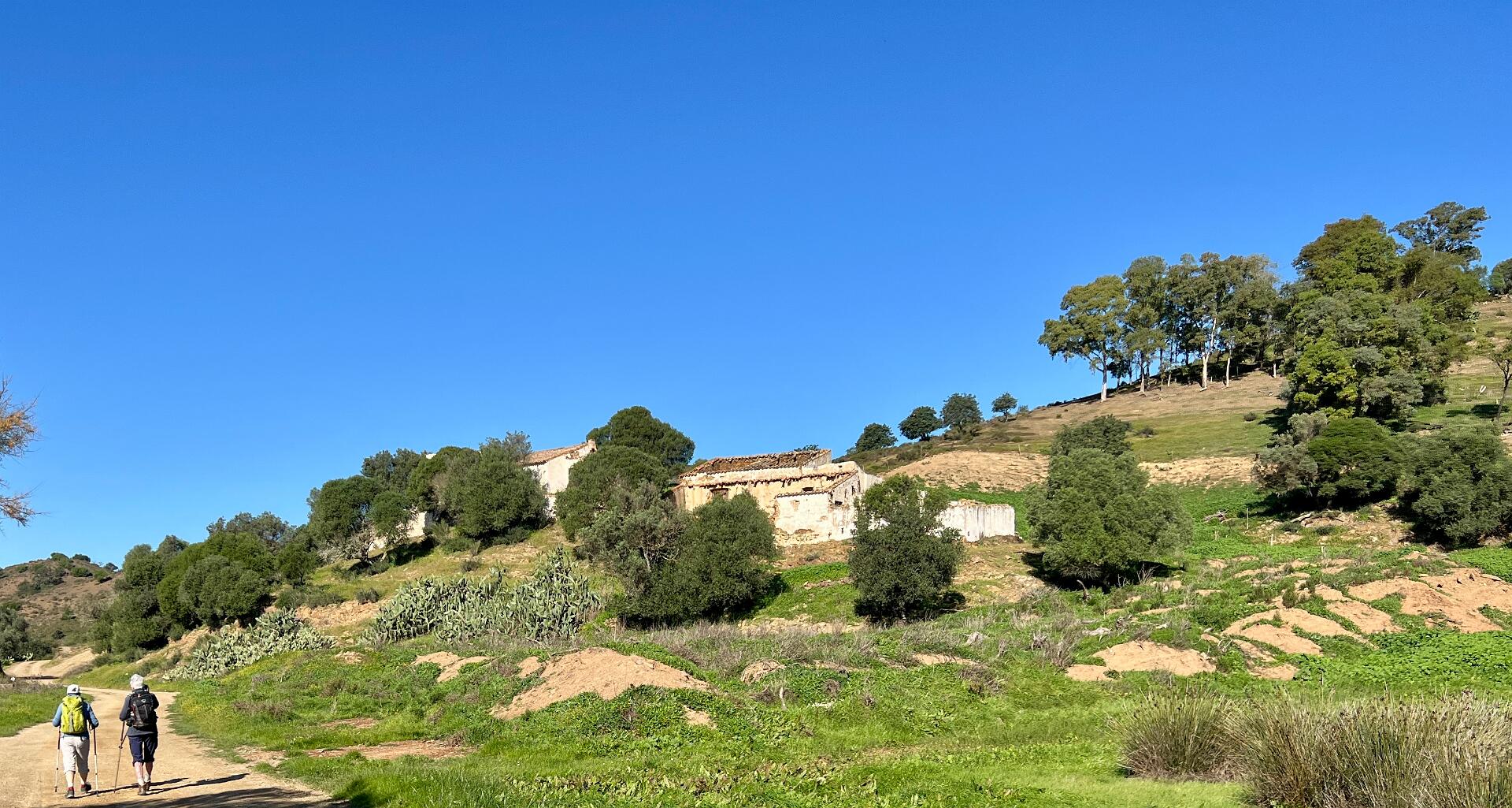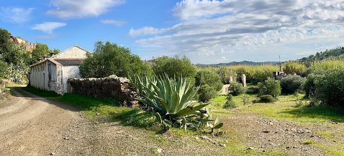 Een rondwandeling van 8km van Azinhal naar de Guadiana rivier en daarna terug langs de Choças-molen, waarbij 68m geklommen moest worden, Dit is de rode route,