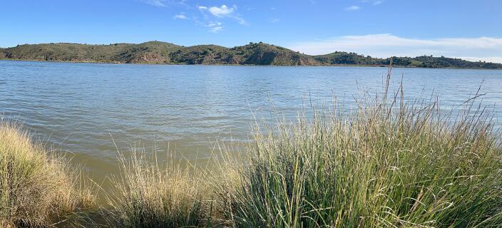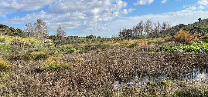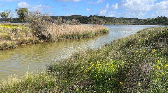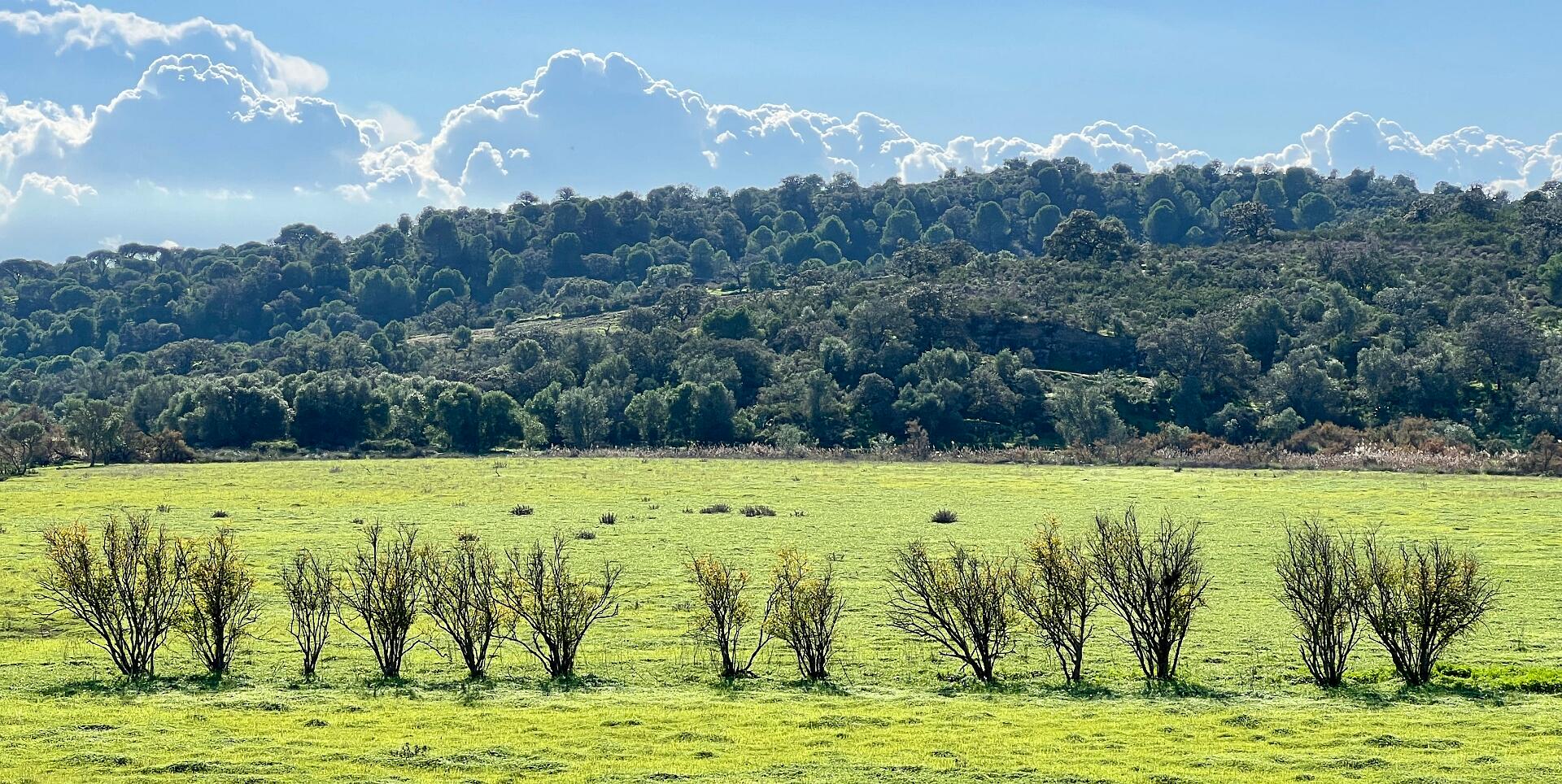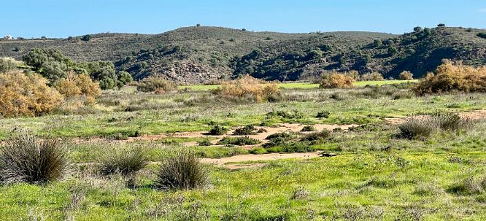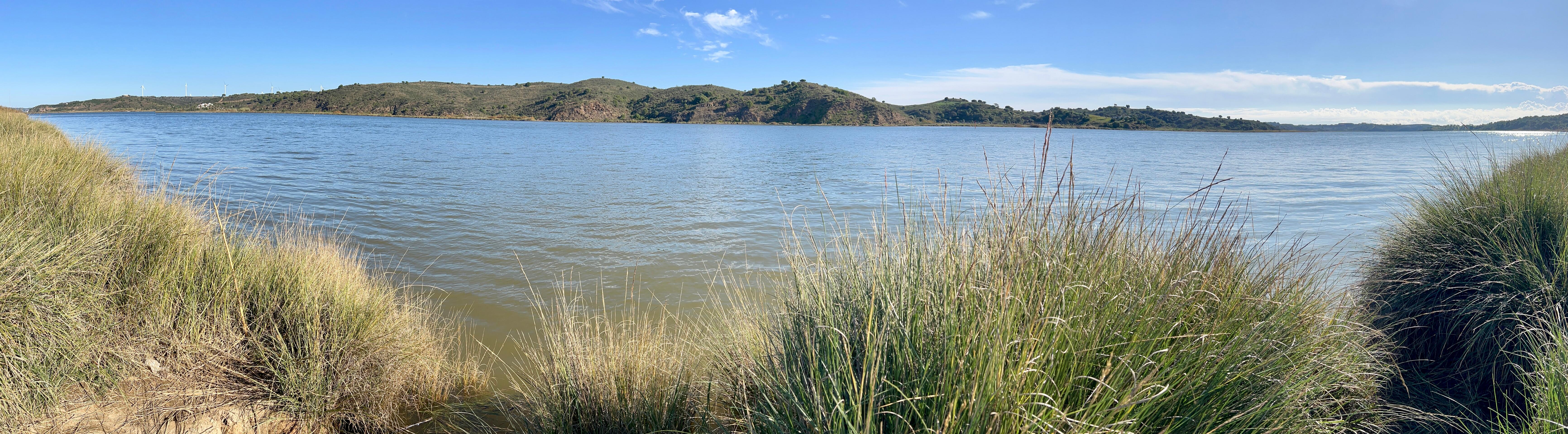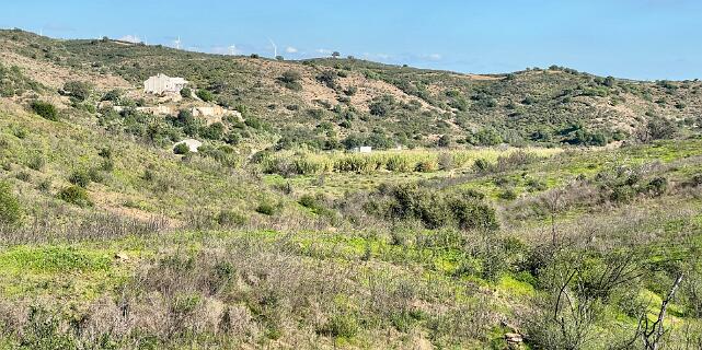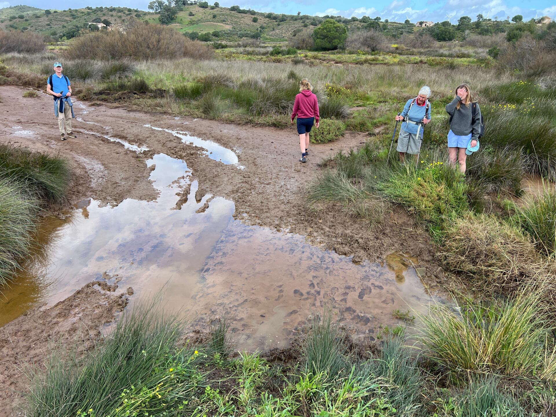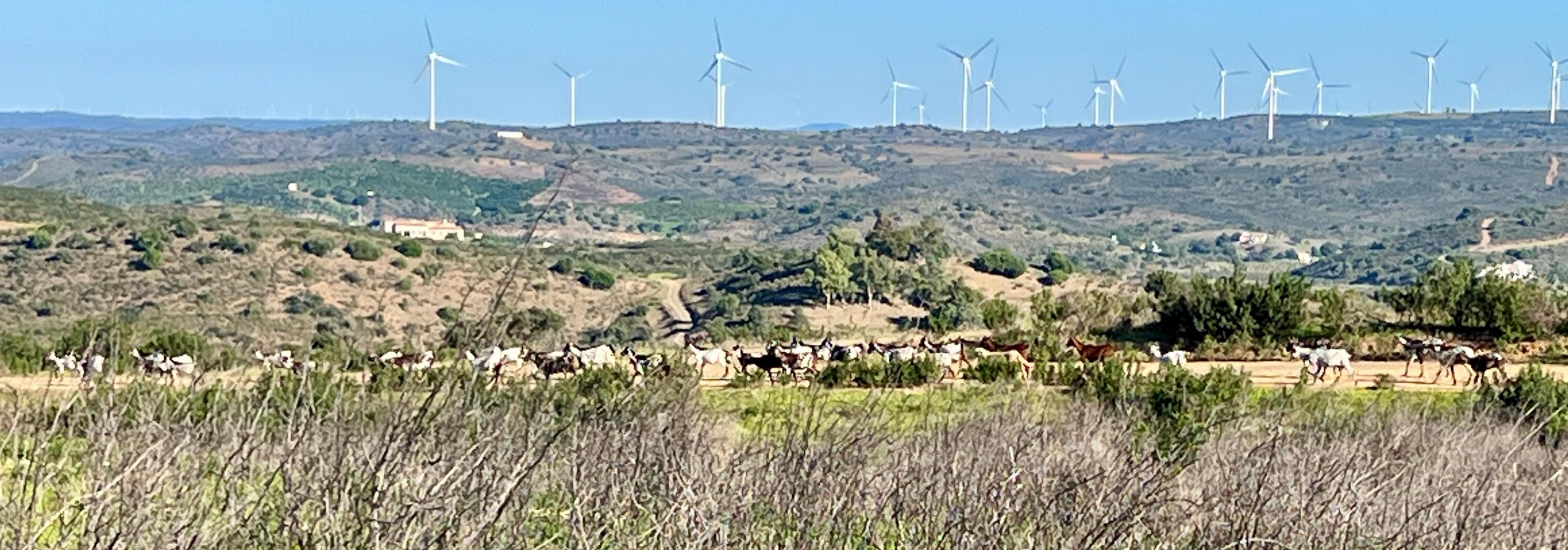 Een rondwandeling van 8km van Azinhal naar de Guadiana rivier en daarna terug langs de Choças-molen, waarbij 68m geklommen moest worden, Dit is de rode route,