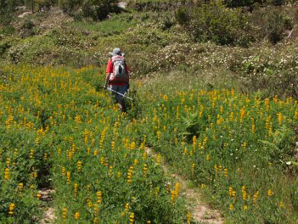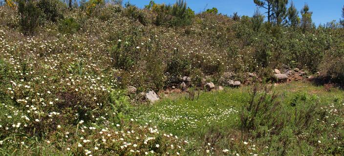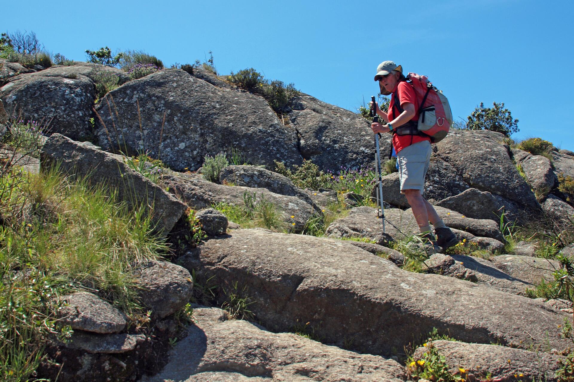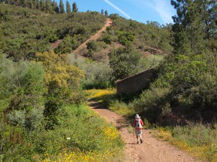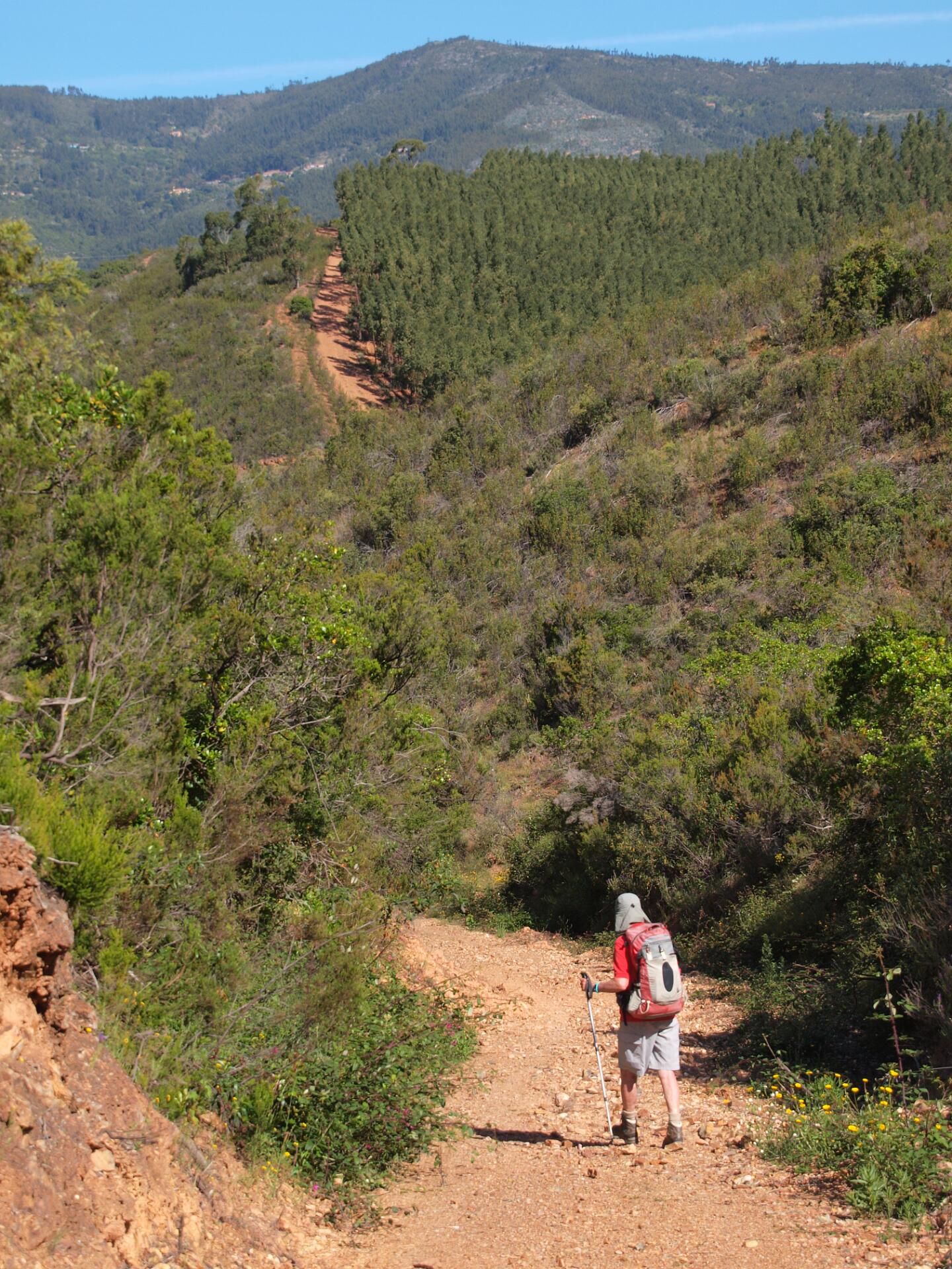 De taxi-chauffeur bracht ons terug naar Cortes waar we gisteren opgehaald werden. Vandaag stonden we op de een na hoogste berg van Algarve, de Picot, 779 m hoog. We liepen 19km en klommen 950 m omhoog. Dit traject van de Via Algarviana is tot de Picot niet gemarkeerd. We sliepen en aten in de Bica Boa in Monchique.