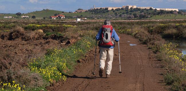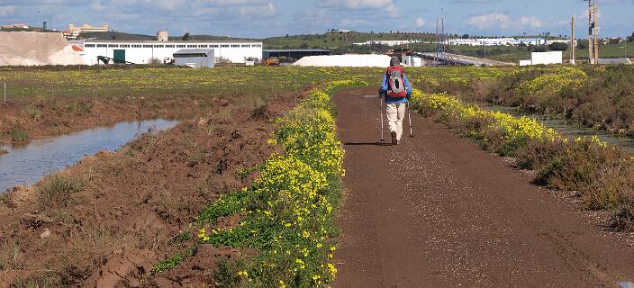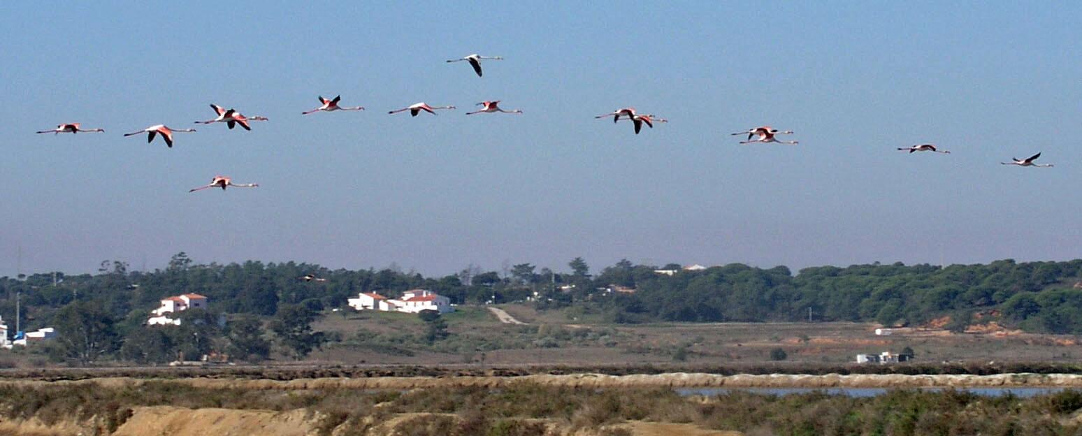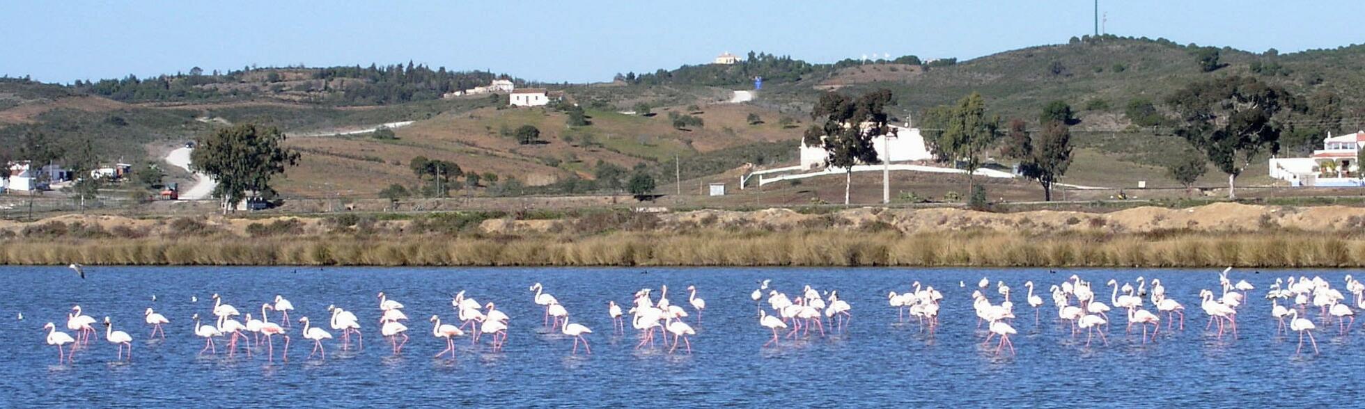 Tussen Monte Gordo en Castro Marim ligt het vogelreservaat 'Reserva Natural do Sapal de Castro Marim'. We laten hier 2 routes vanuit Monte Gordo zien: de gebruikelijke route (groen 18,2km) vanaf de ingang halverwege de weg van Vila Real naar Castro Marim en de route vanuit Sao Bartolomeu (rood 17,7km) langs de boerderij Sobral de Baixco. Deze laatste route gaat deels over particulier terrein. In 2023 namen we een taxi naar de ingang (10 Euro of 5.60 Euro met Uber), dan is de route 13km lang. Zie hier voor de zuidelijke route door dit gebied (niet meer mogelijk in 2023).