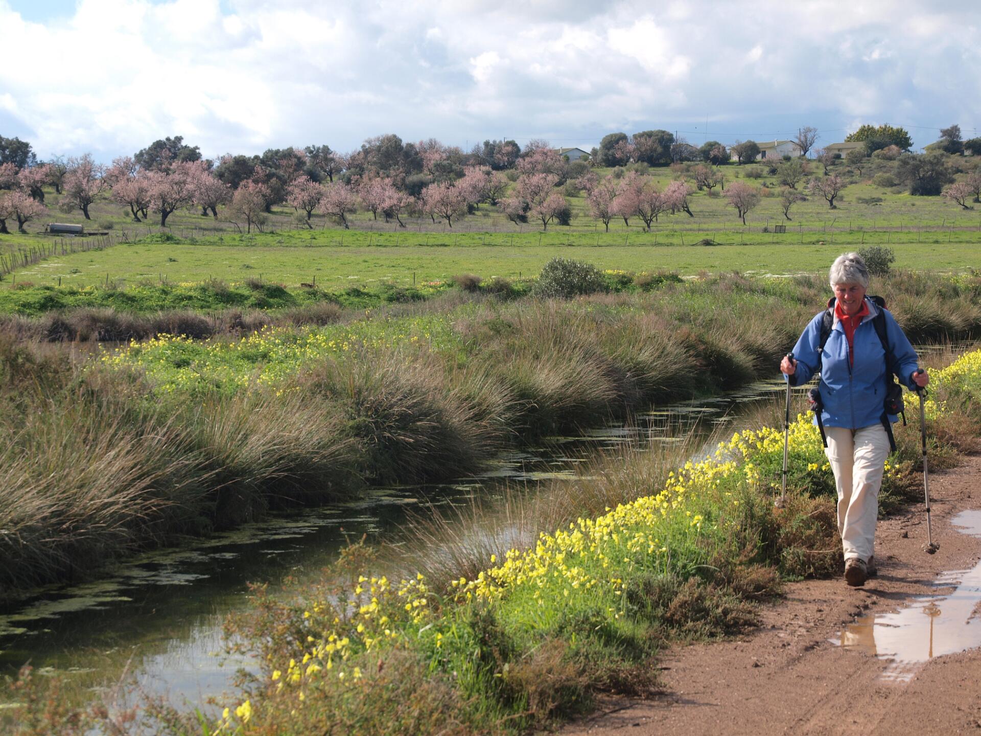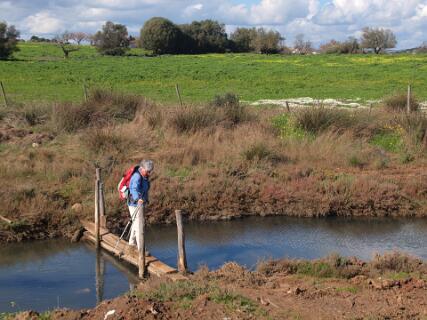 In 2024 en 2025 was de groene route bij de rondweg van Sao Bartolomeu naar Castro Marim door een hek afgesloten en moest je de weg verder aflopen en voor de brug naar rechts gaan. Op dat punt eindigde in 2025 onze wandeling van 8km vanuit Castro Marim (blauwe track),
