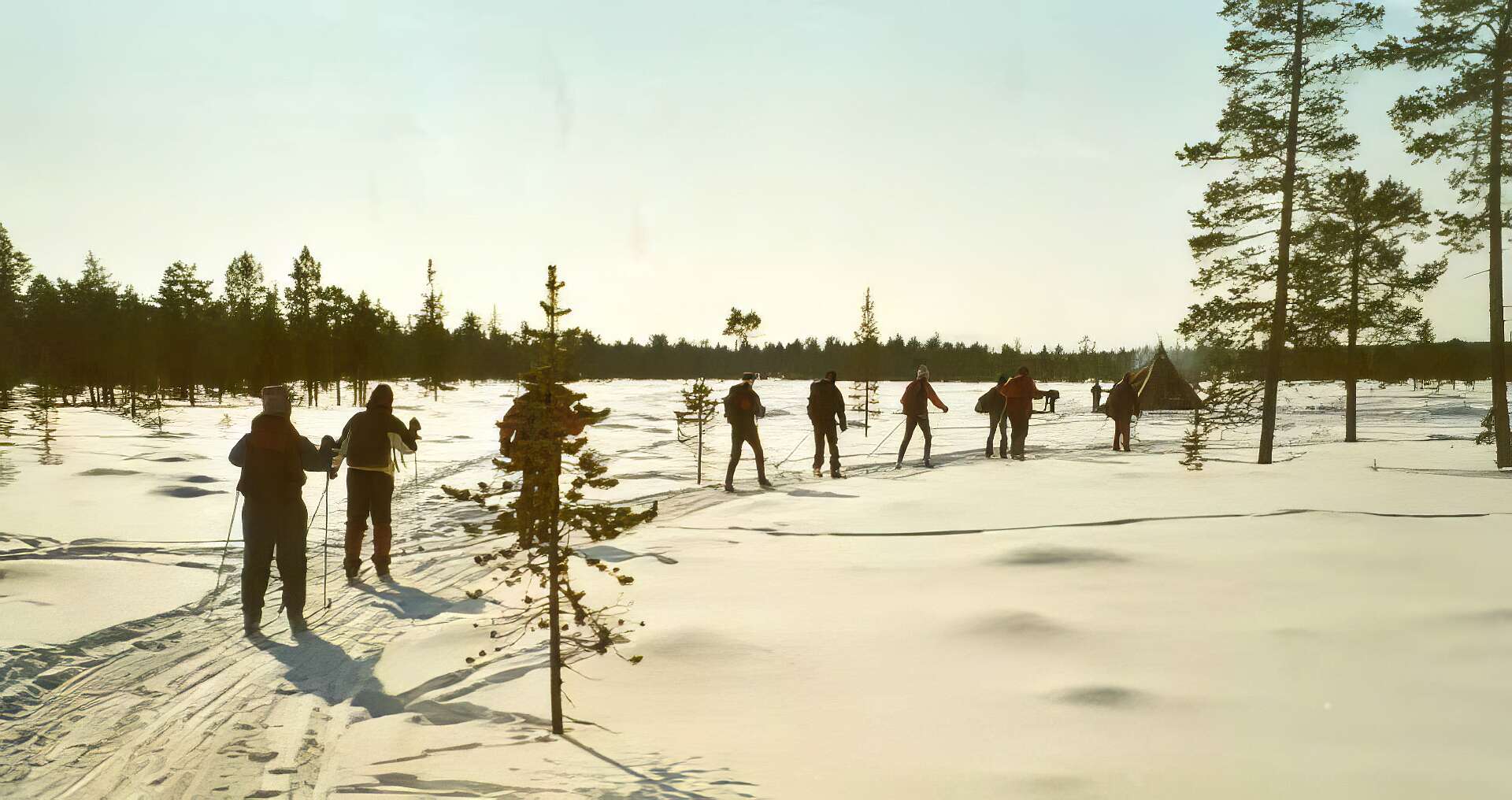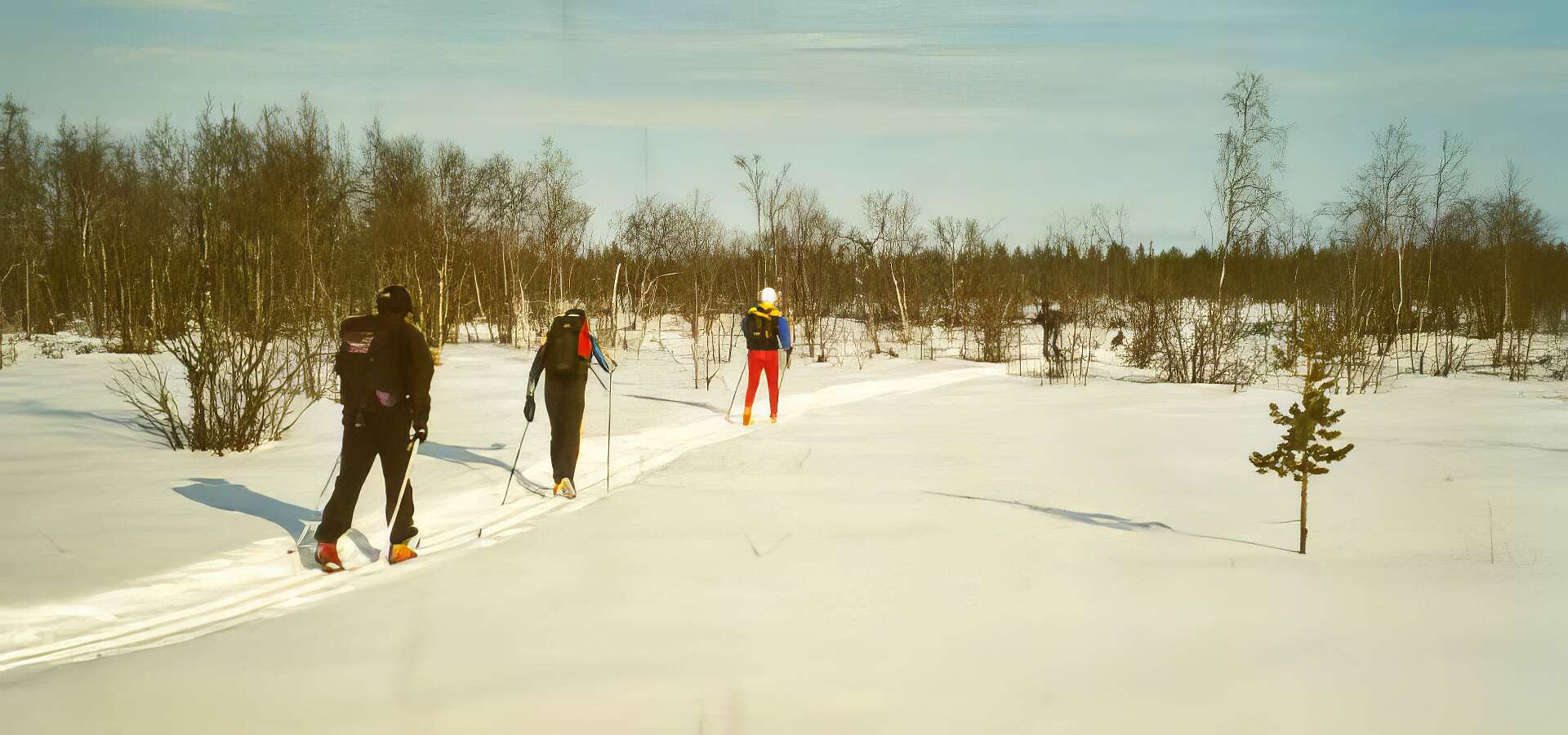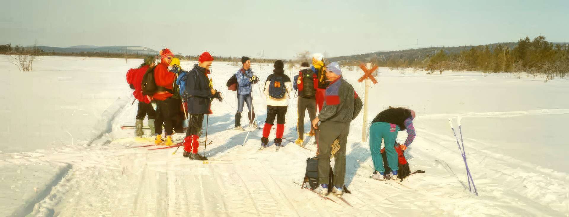 Via a small wilderness track made by Hannu, we went to a reindeer farm north of the village Peltovuoma. Total distance about 25 km. We lunched in a Lapland tent of the farmer where he told us about the life cycle of the reindeer. We went back to Hannu’s cabin by bus.