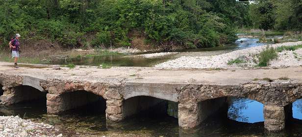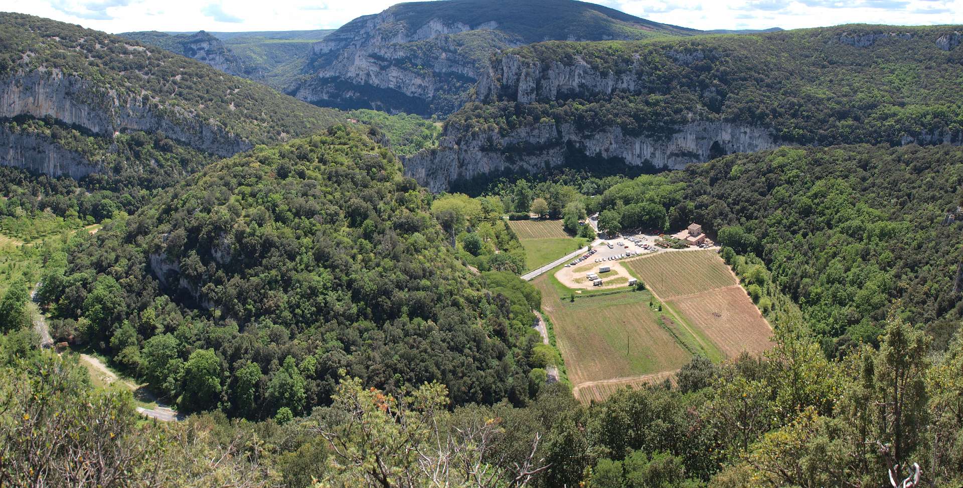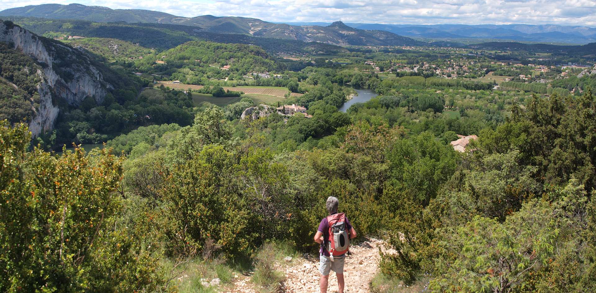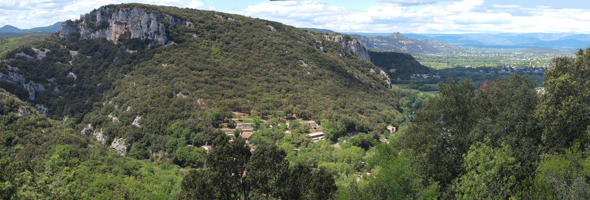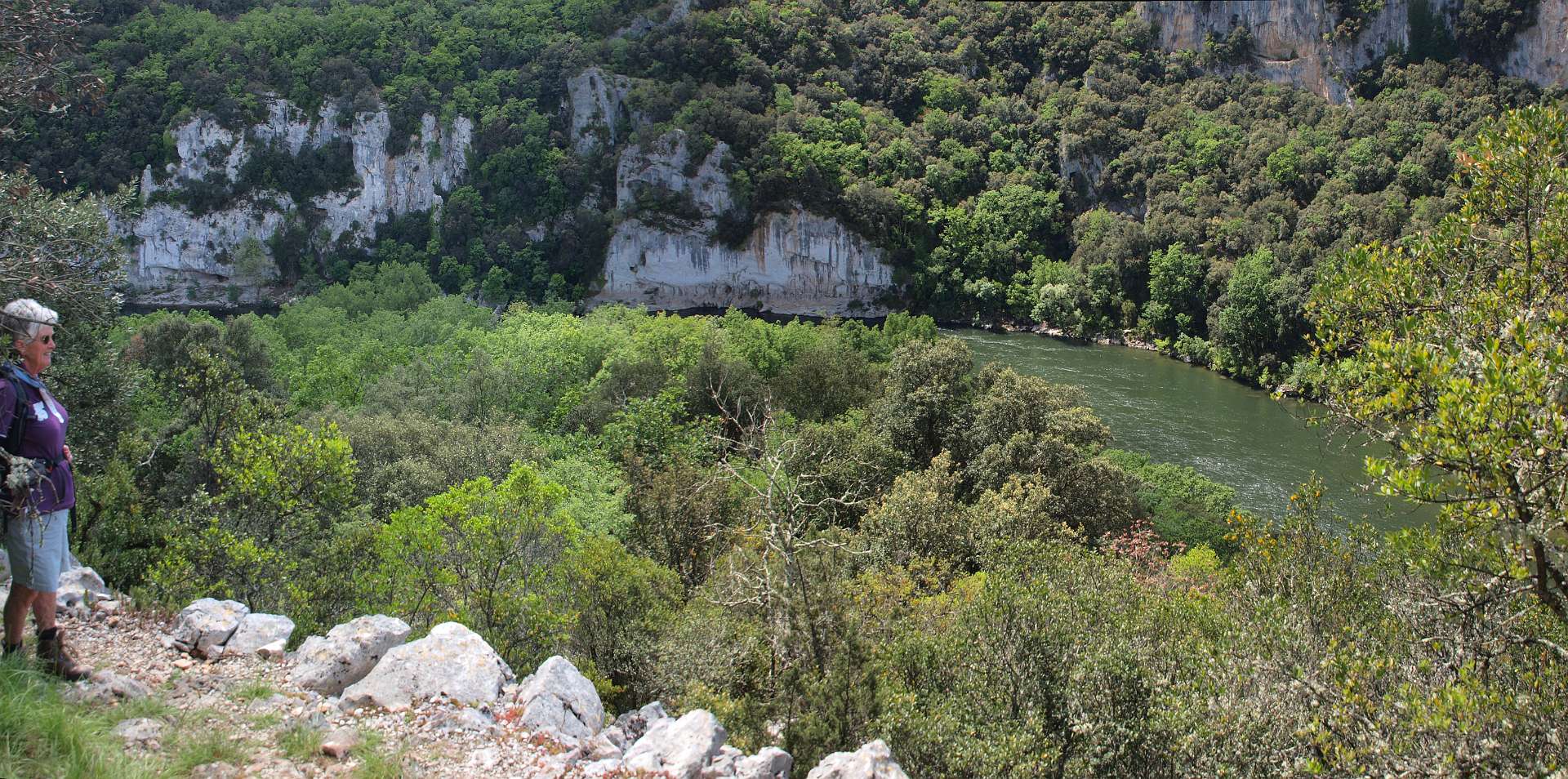 We liepen vanaf de camping bij Vallon-Pont-d'Arc langs de weg naar Pont d'Arc. Daar klommen we omhoog en liepen langs de GR4 terug naar Vallon-Pont-d'Arc. Totaal 14 km