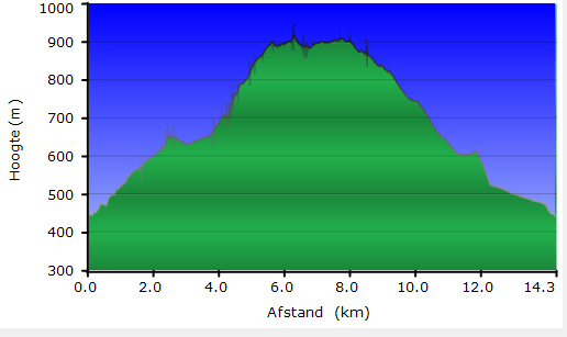 een bazalt formatie waar in de middeleeuwen een dorp lag. De wandeling is ruim 14 km lang en er moet 580 m geklommen worden.