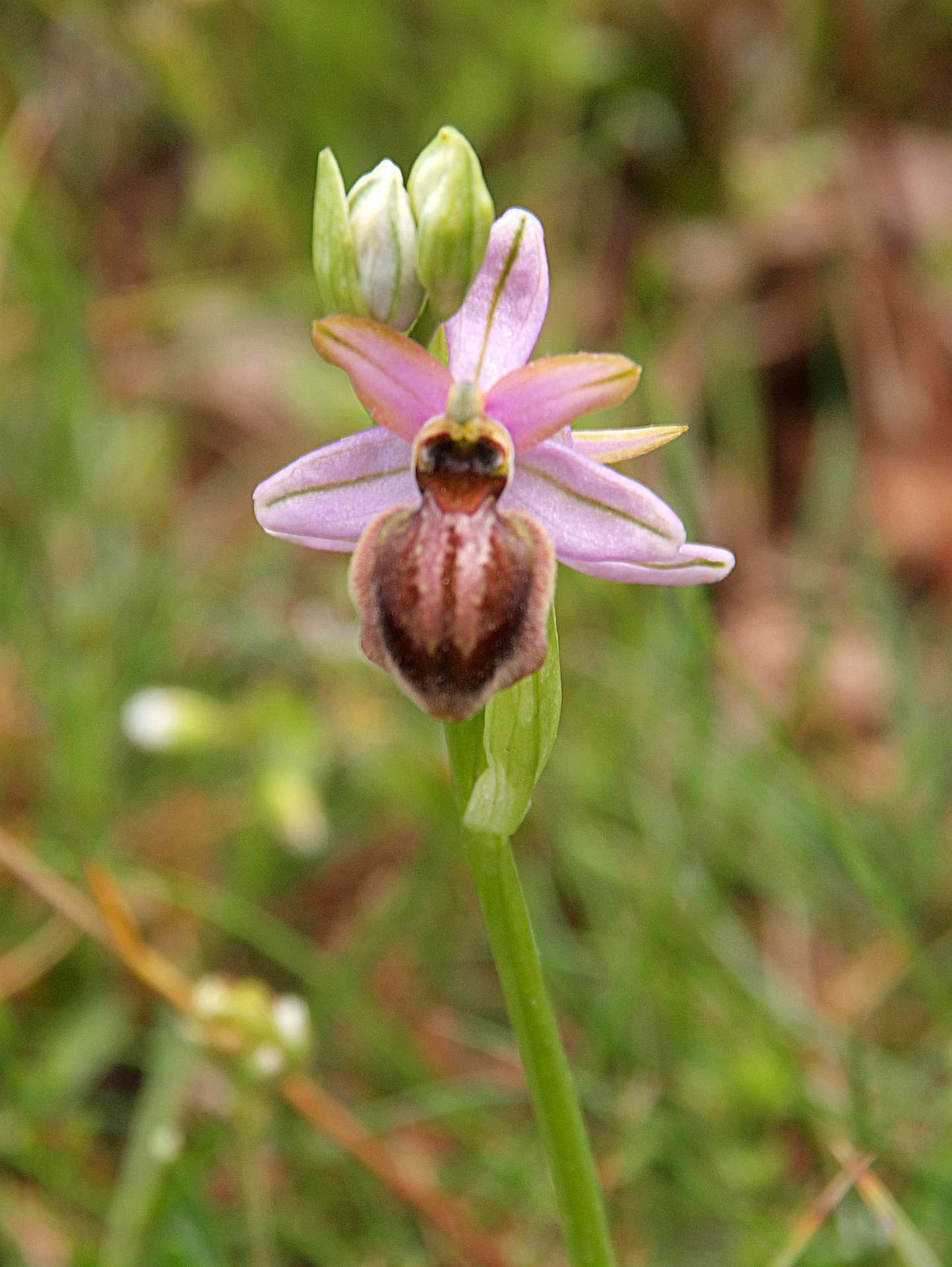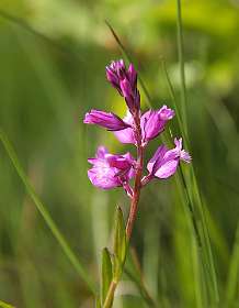 We reden vanaf onze camping Le Val de l'Arre in Le Vigan naar de beste plaats om Orchideeen te bekijken (volgens de Crossbill guide voor de Cevennen): de Cernon vallei in de Causse du Larzac. Rij daarvoor naar Lapanouse-de-Cernon. Rij door de plaats heen tot aan de D77 en ga daar scherp rechtsaf. Ga 200m verder linksaf de Cernon rivier over en blijf de weg volgen tot het voormalige station. Parkeer daar de auto en loop rechts voor het station langs en volg de weg die 50 m verder de spoorbaan kruist..