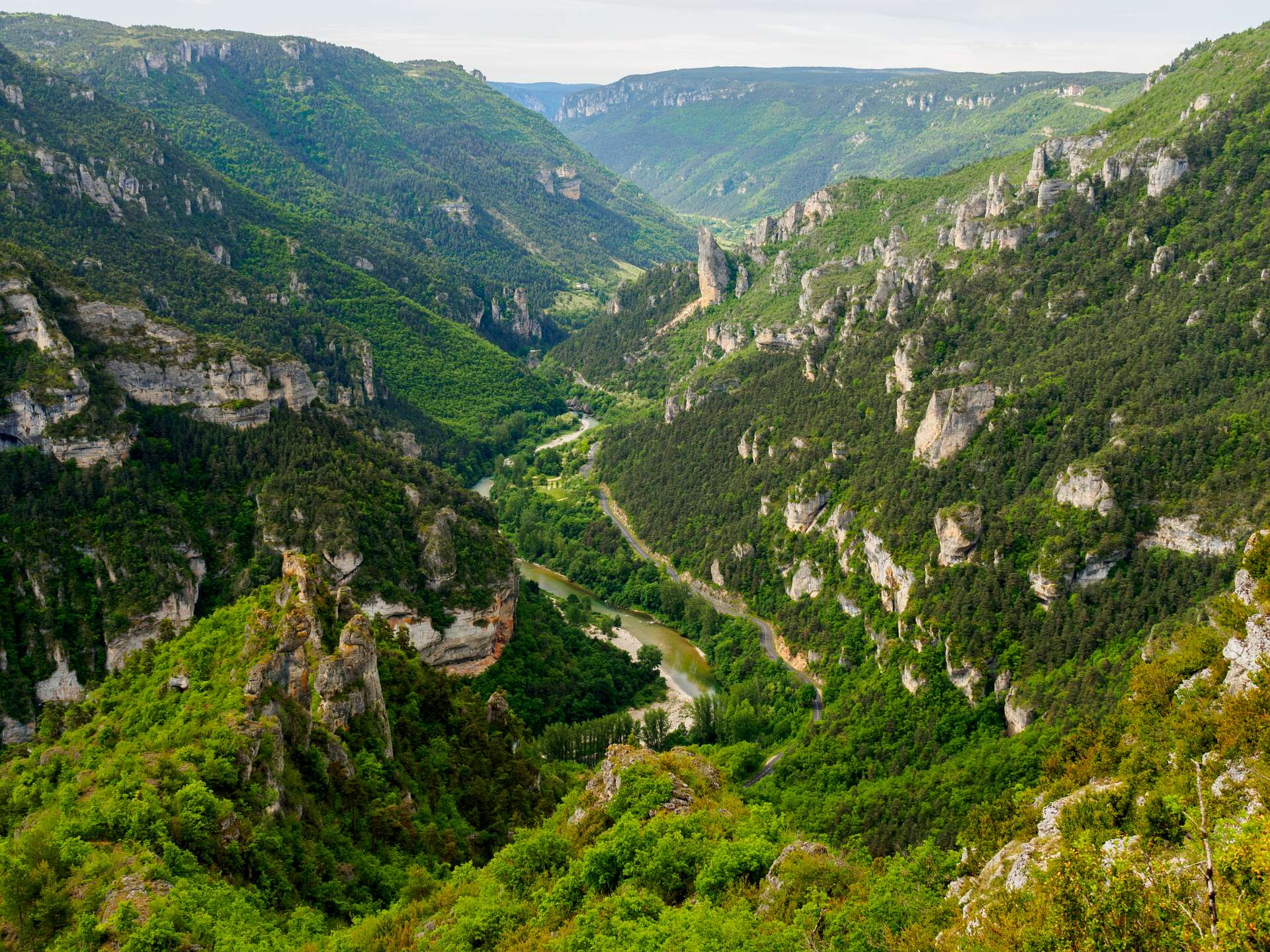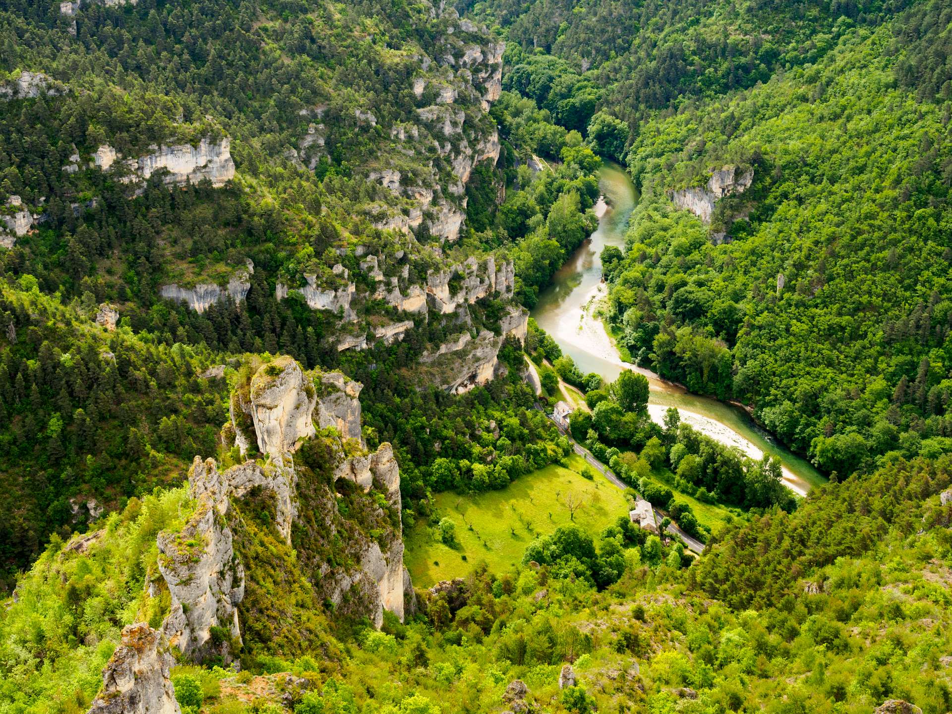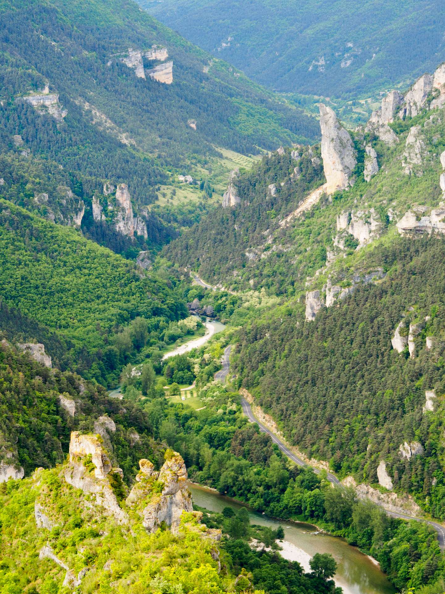 Vanaf Les Vignes reden we omhoog naar het Point Sublime. Daarna bezochten we 2 dorpen op de Causse de Sauveterre: St-Georges-de-Lévéjac en St-Rome-de-Dolan. In Le Rozier gingen we op de camping Municipal de Brouillet staan. Daarna maakten we nog een wandeling in Peyreleau.