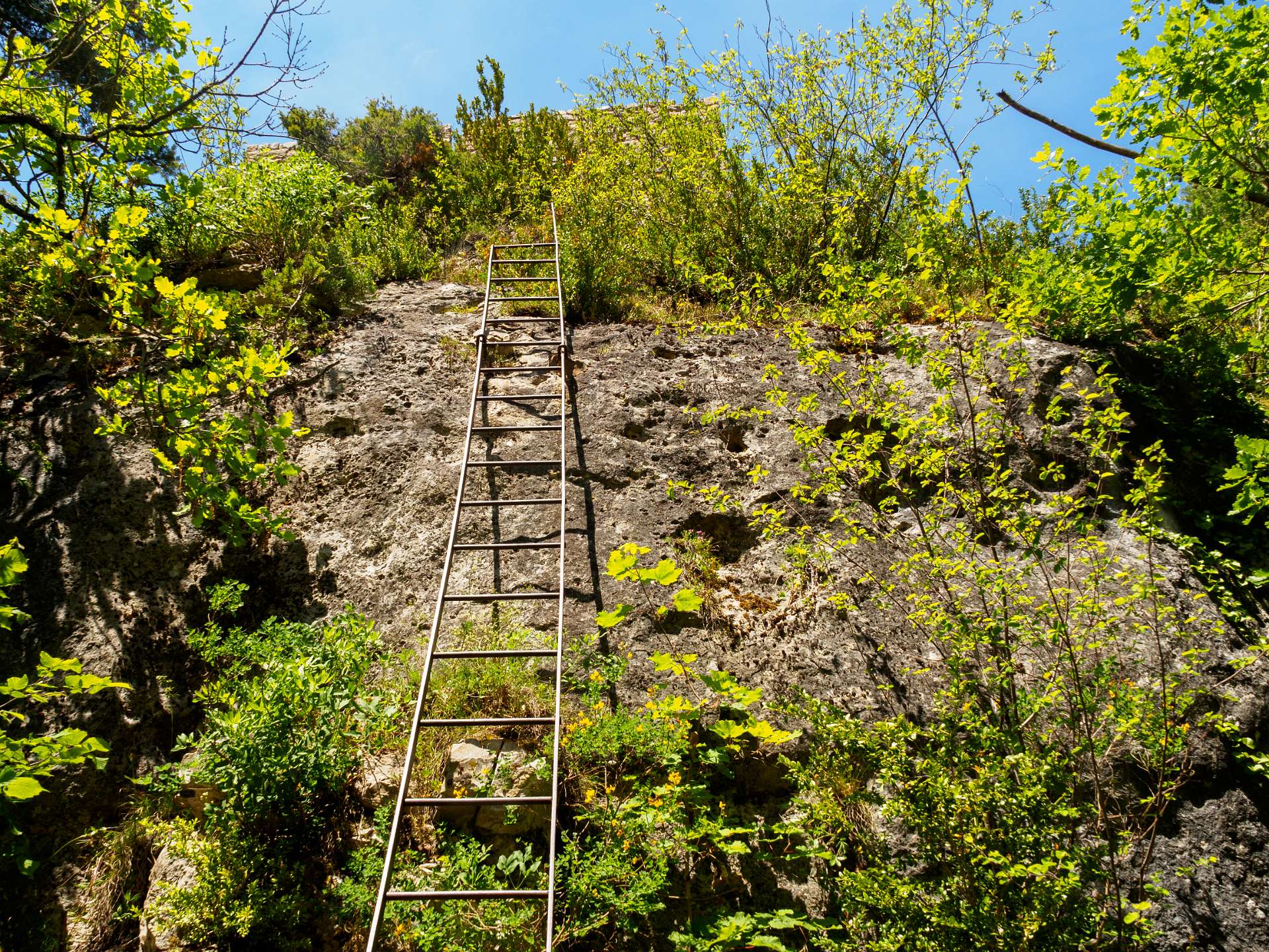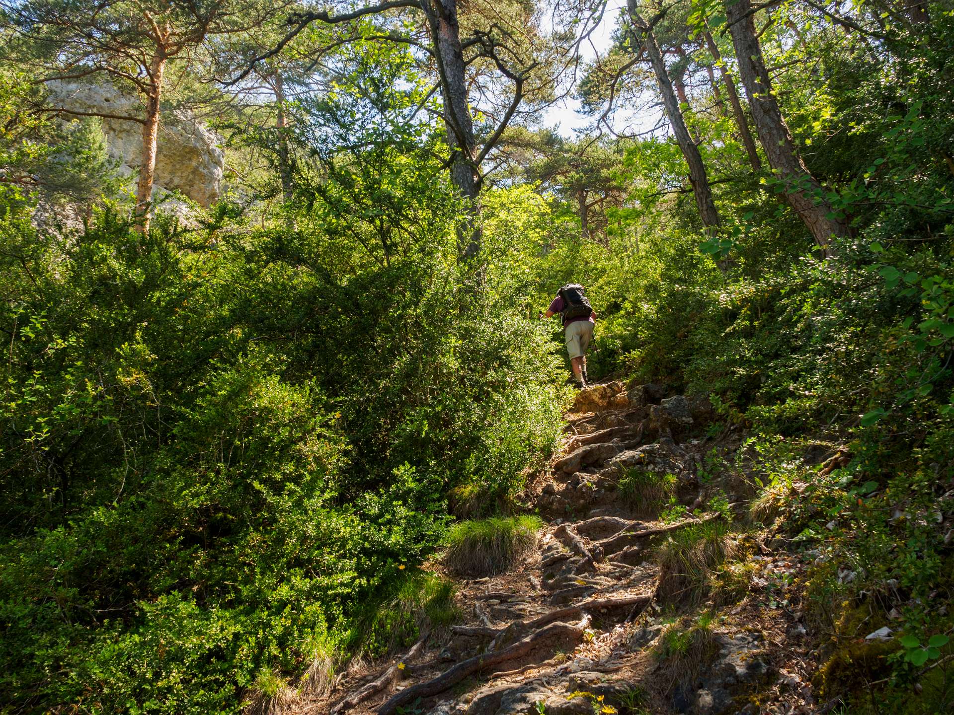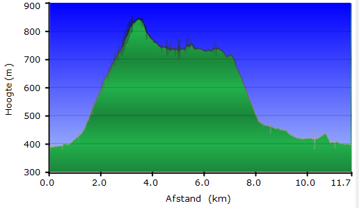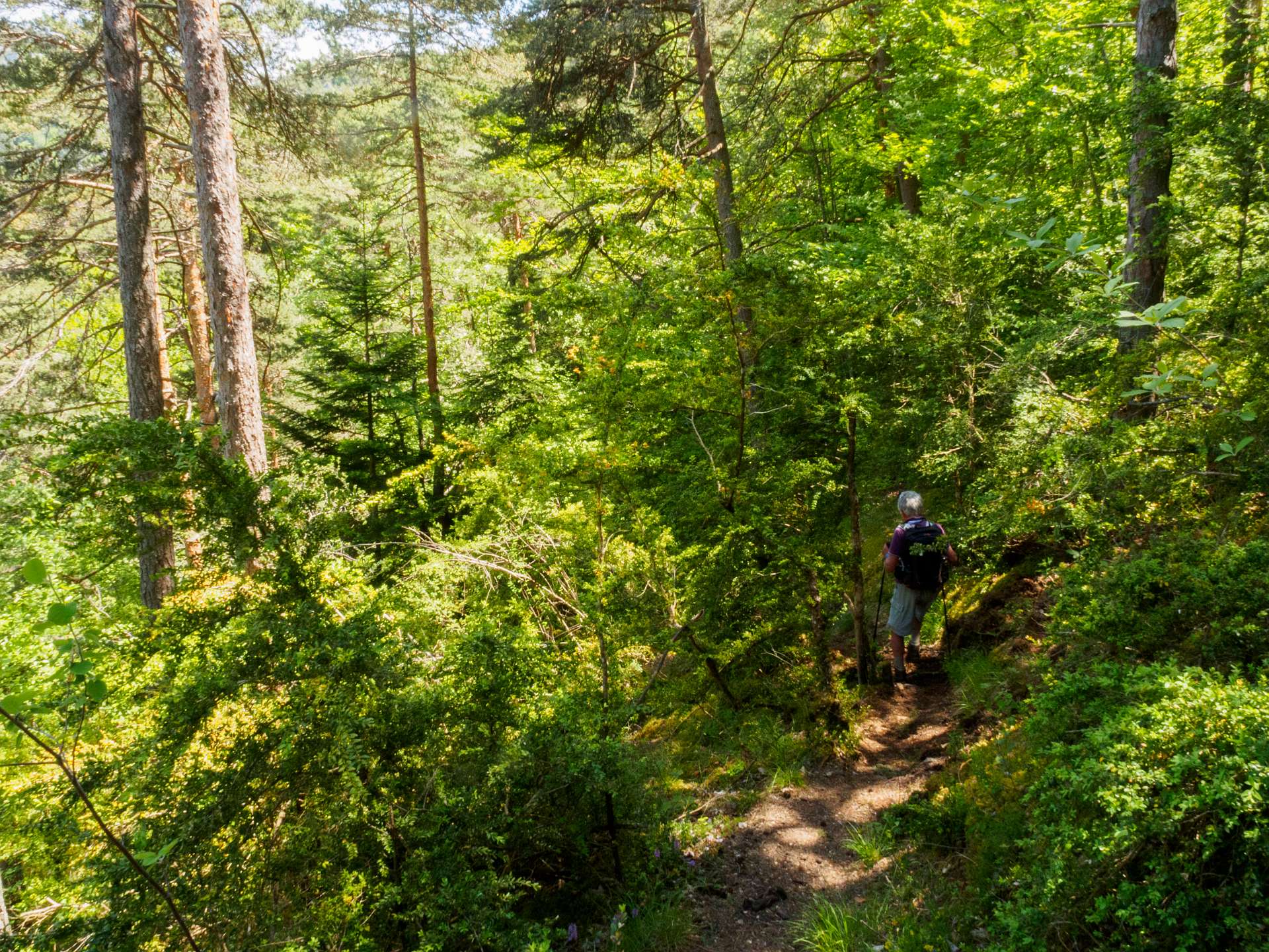Dit is een rondwandeling van 13km vanaf de camping in Le Rozier. Er moest 578 m geklommen worden.