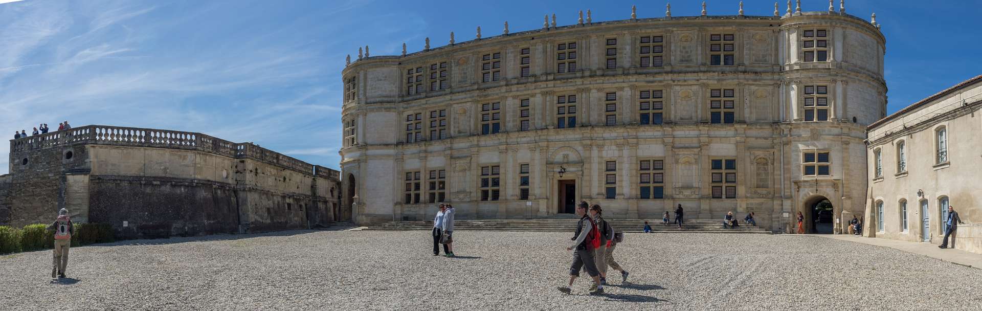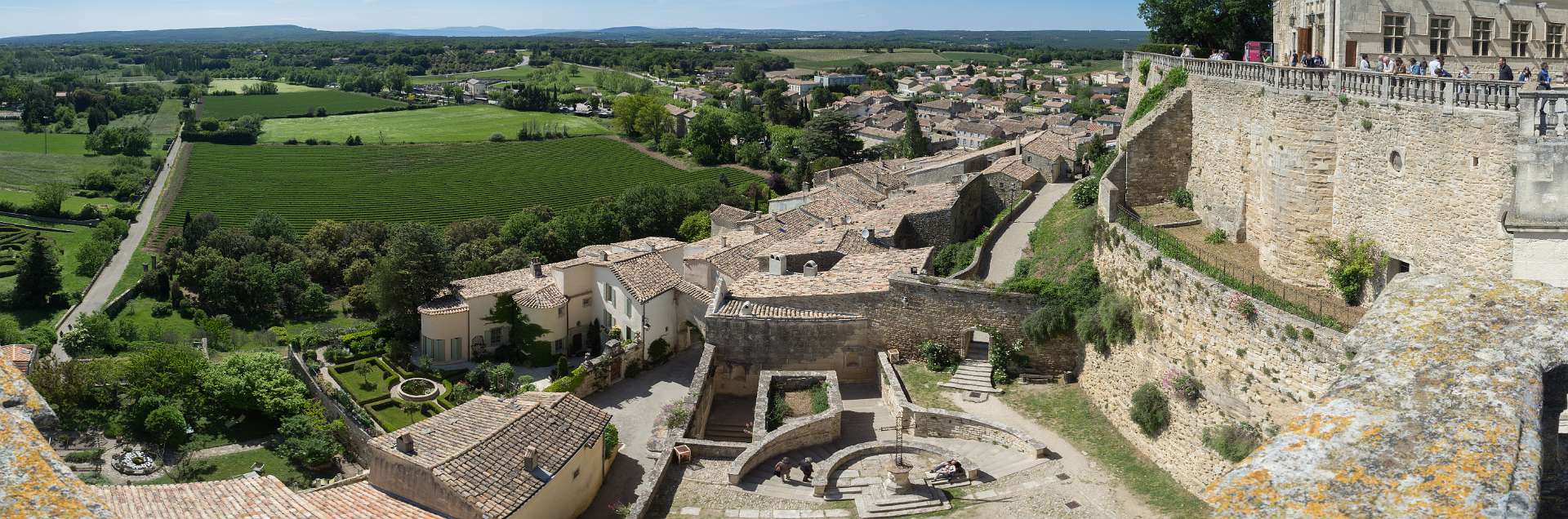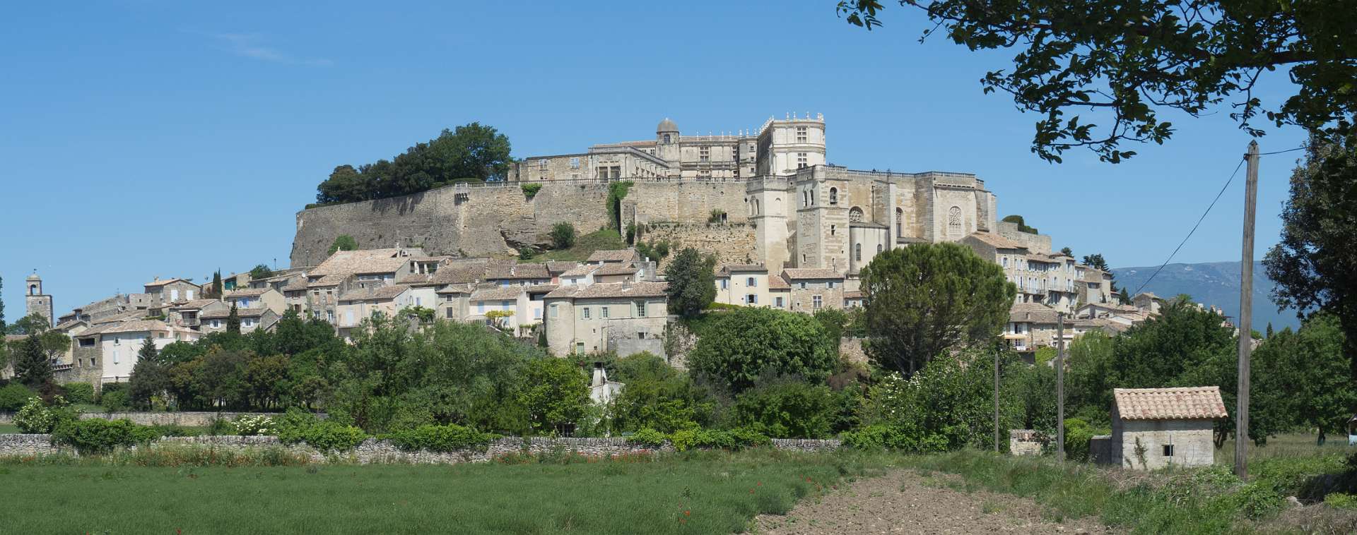 We liepen vanaf de camping Les Truffieres naar het nabij gelegen dorp Grignan, bekend vanweg het Chateaux.