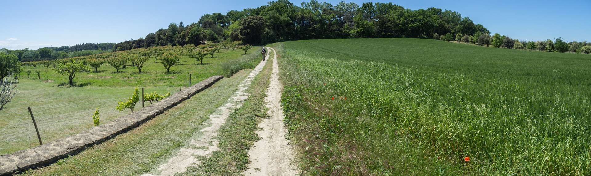 Dit is een geel gemarkeerde wandeling ten oosten van Grignan, uitgegeven door het VVV. Vanaf de camping is de wandeling 14 km lang.