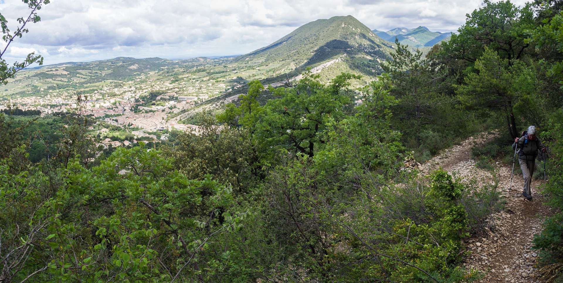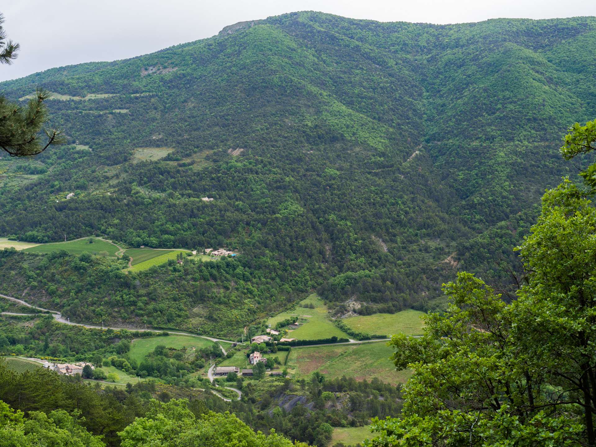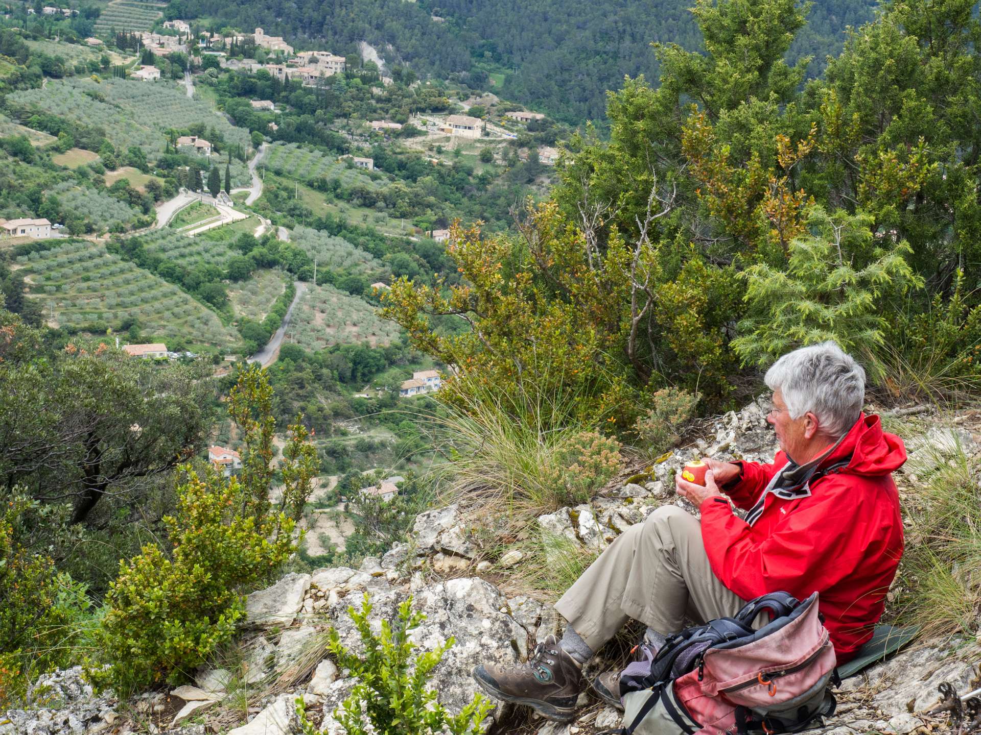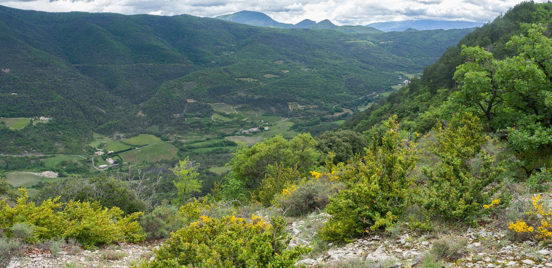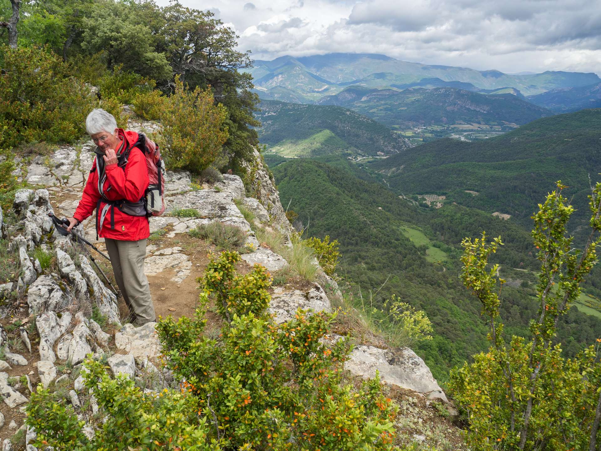 Via de GR9 klommen we naar de Col de La Croix en volgden daarna de zuidkant van het Sentier des Bois de Lumière. Waar dat pad terugkeert naar de col liepen wij rechtdoor over de kam van de berg in de richting van Aubres. Aan het einde van de kam gingen we via een bospad terug naar de GR9. Total 15 km en 650 m omhoog en omlaag.