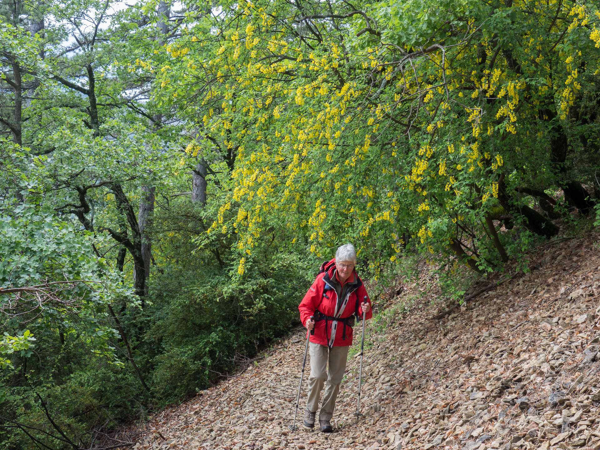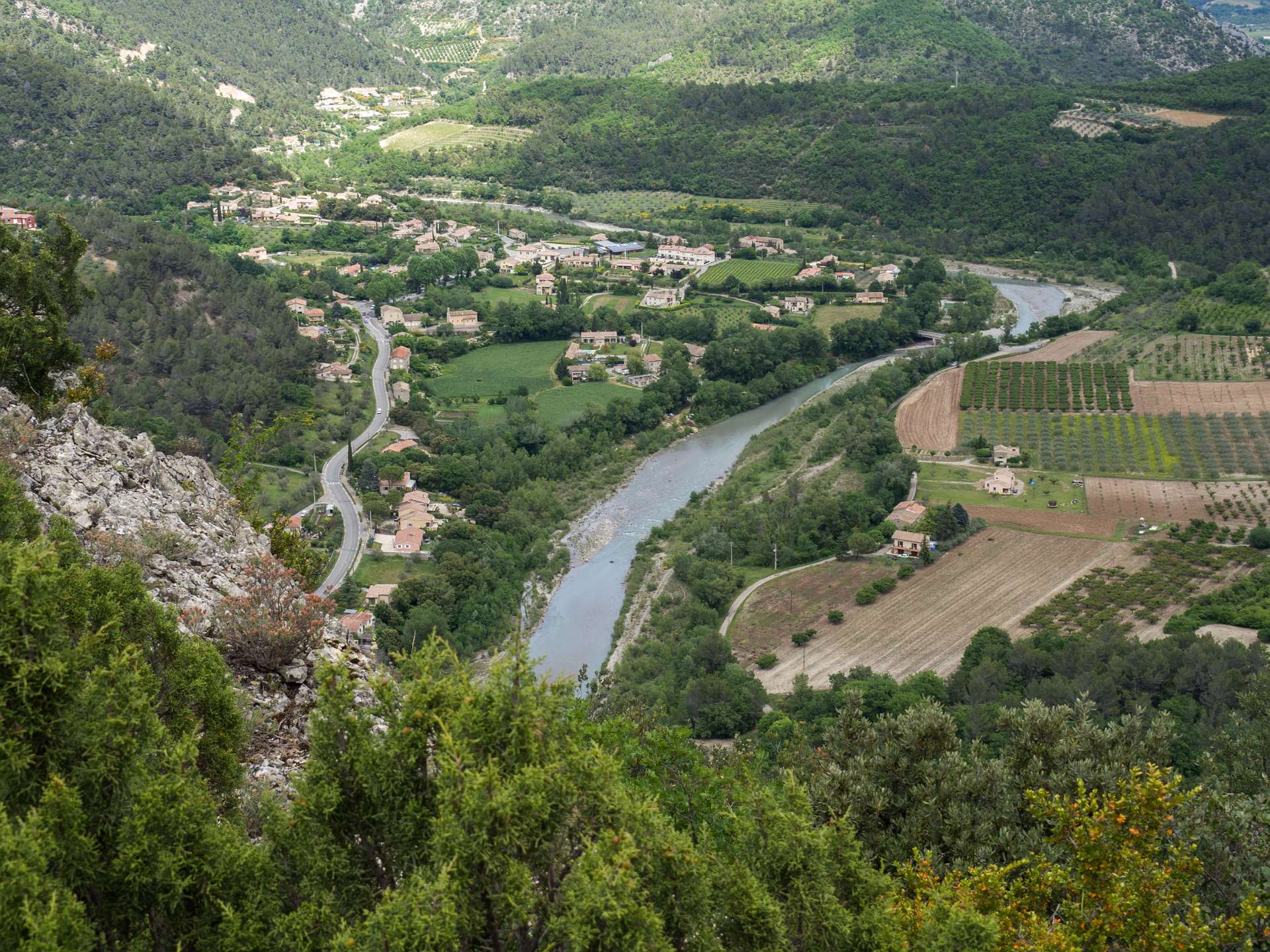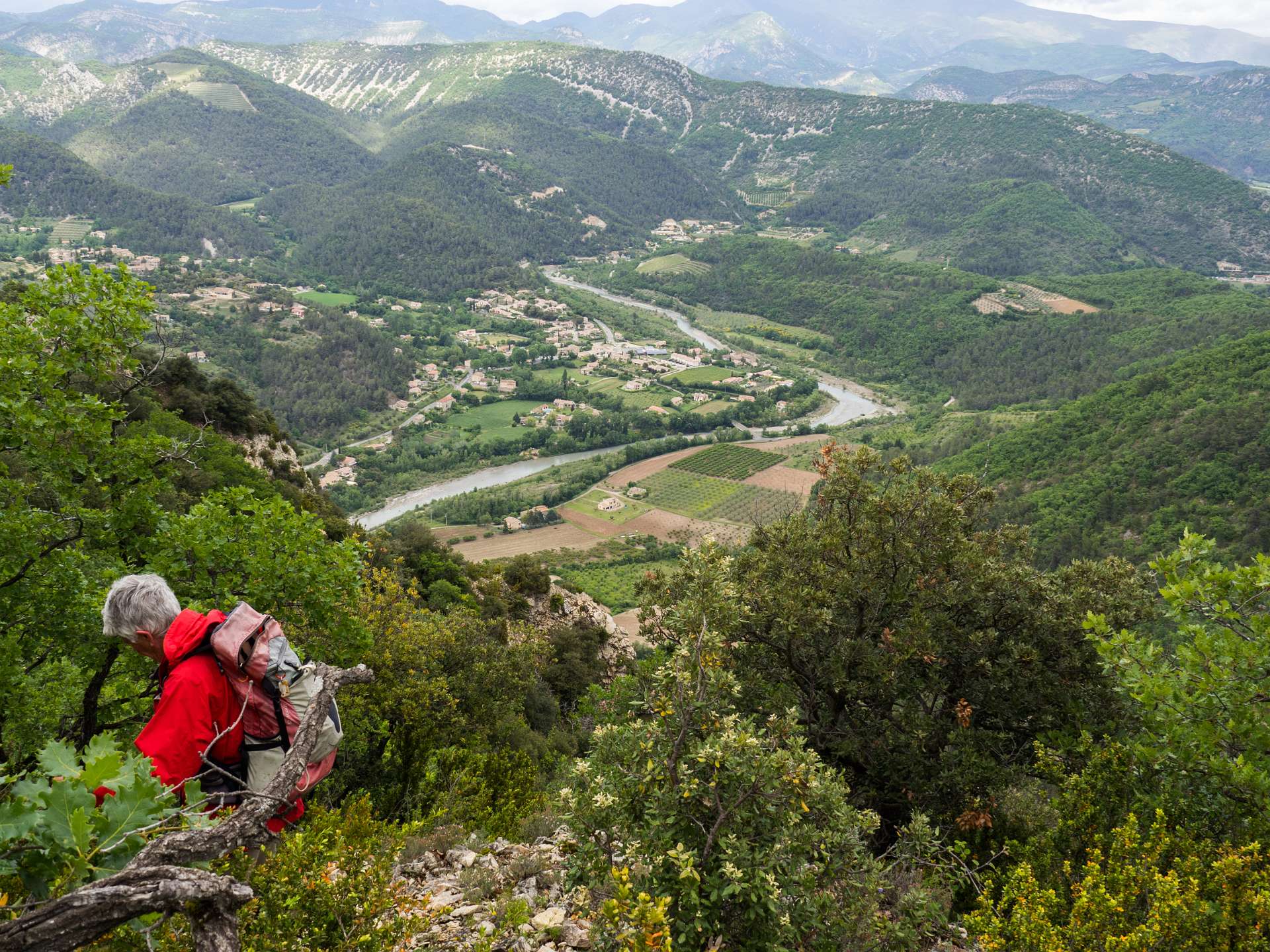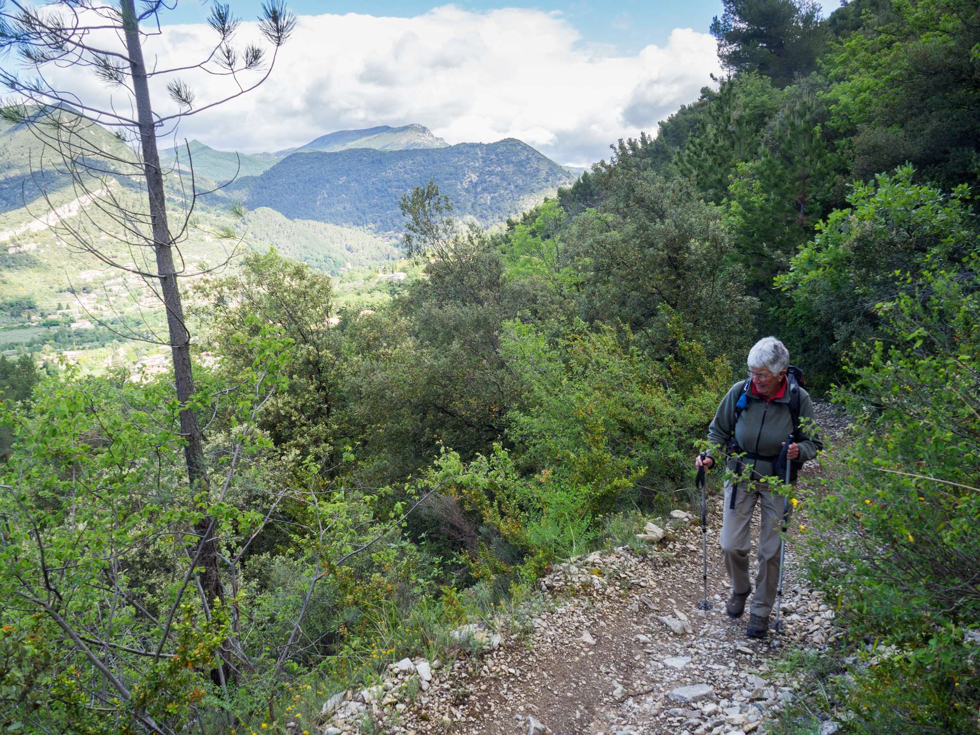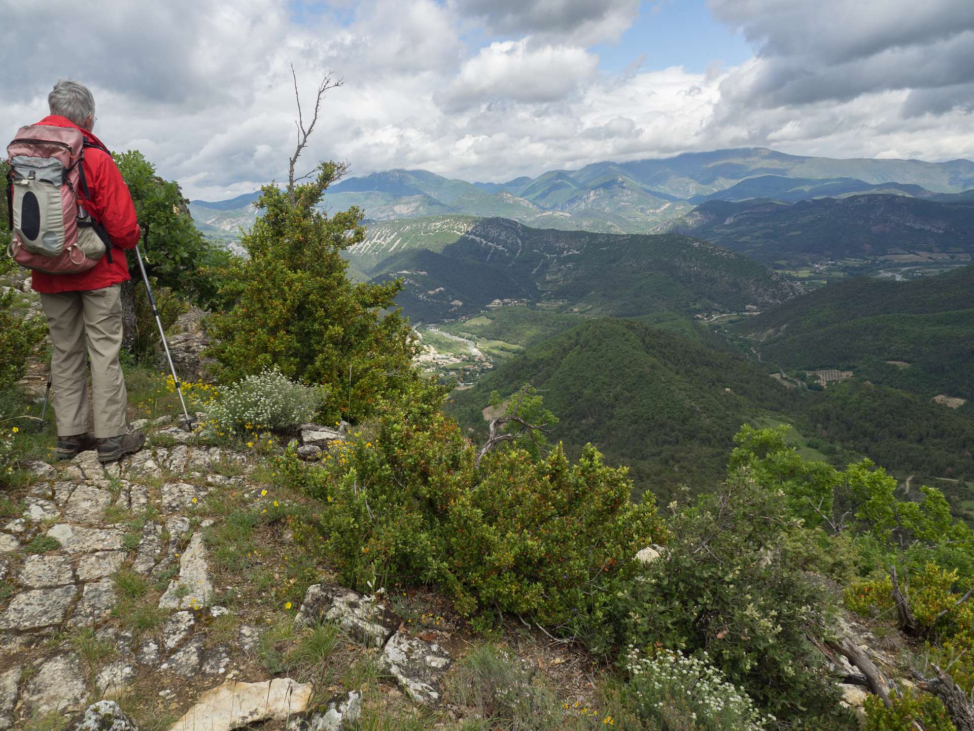 Via de GR9 klommen we naar de Col de La Croix en volgden daarna de zuidkant van het Sentier des Bois de Lumière. Waar dat pad terugkeert naar de col liepen wij rechtdoor over de kam van de berg in de richting van Aubres. Aan het einde van de kam gingen we via een bospad terug naar de GR9. Total 15 km en 650 m omhoog en omlaag.