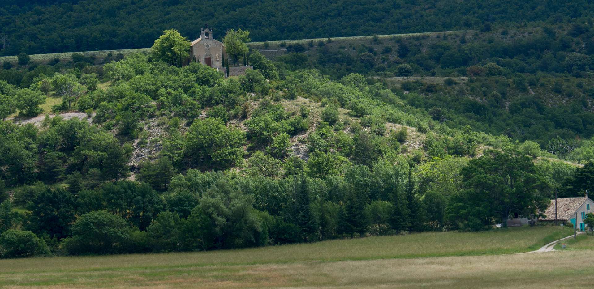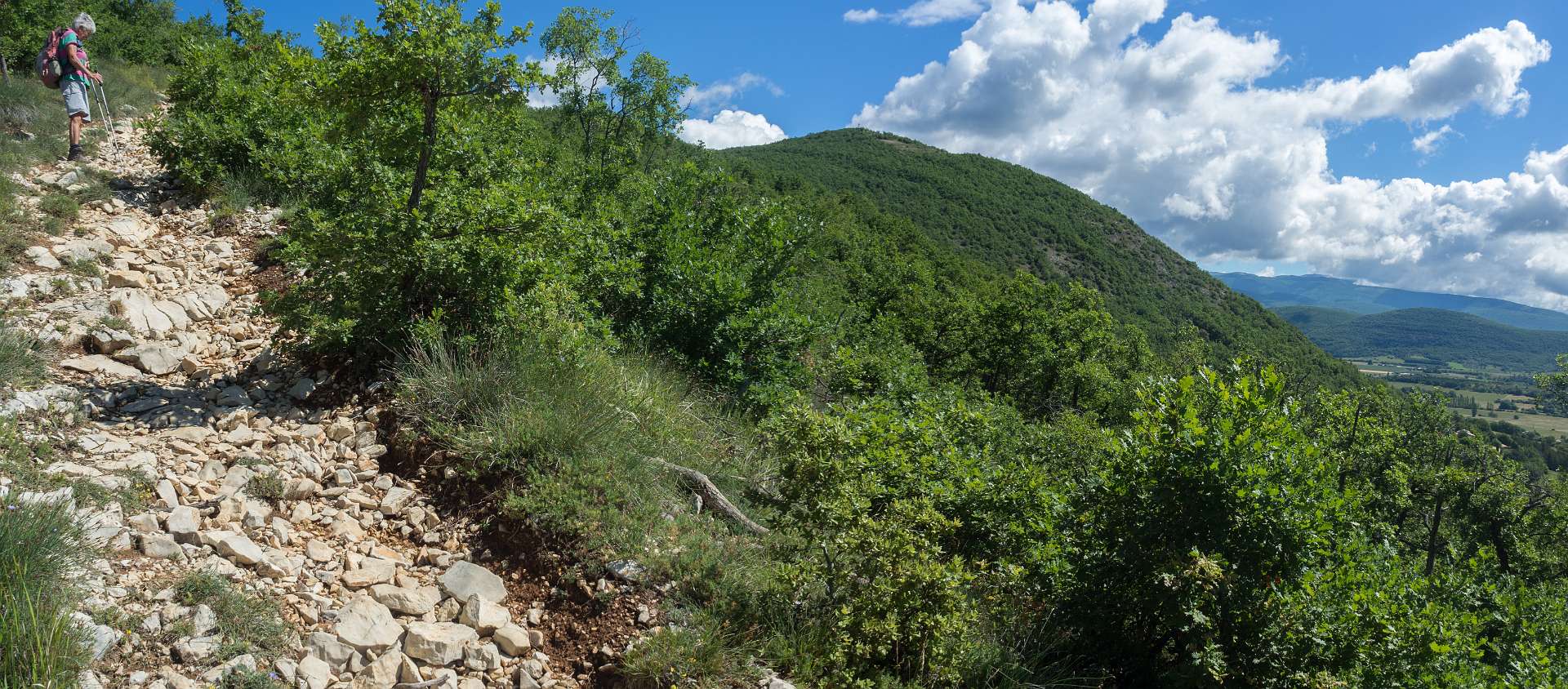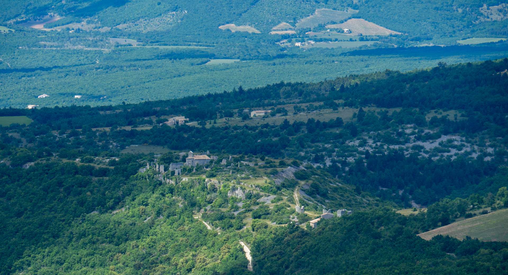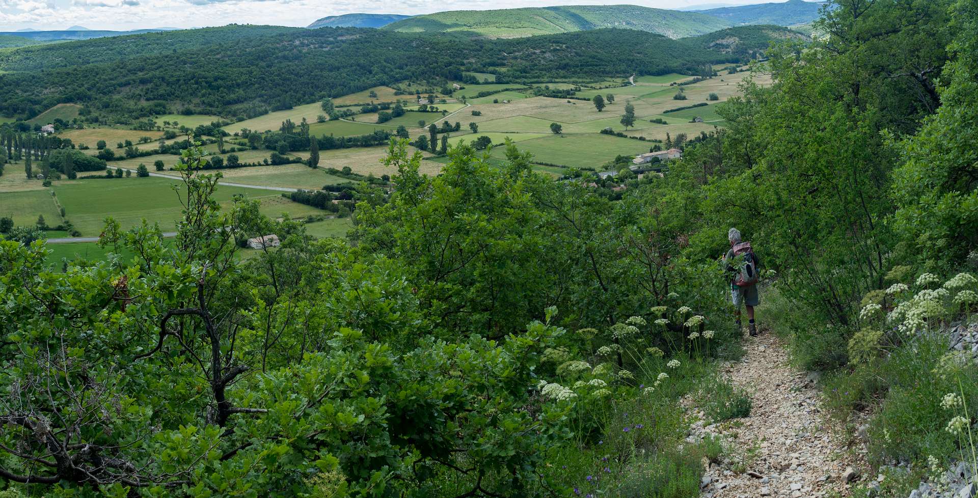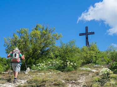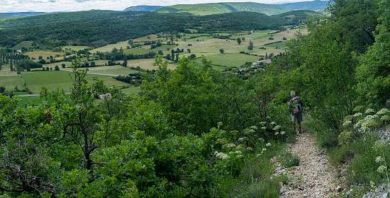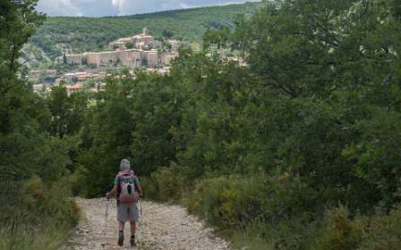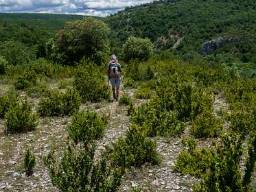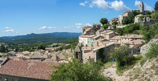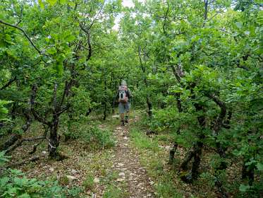 Vanaf de camping liepen we naar Banon en daarna namen we het "Le Groue de Bane" pad naar een top vam 1070 m. Daarna daalden we af en liepen naar de kapel Notre Dame de Anges. Via de GR liepen we weer terug naar Banon. Totale afstand 16 km, totale stijging 600m.
