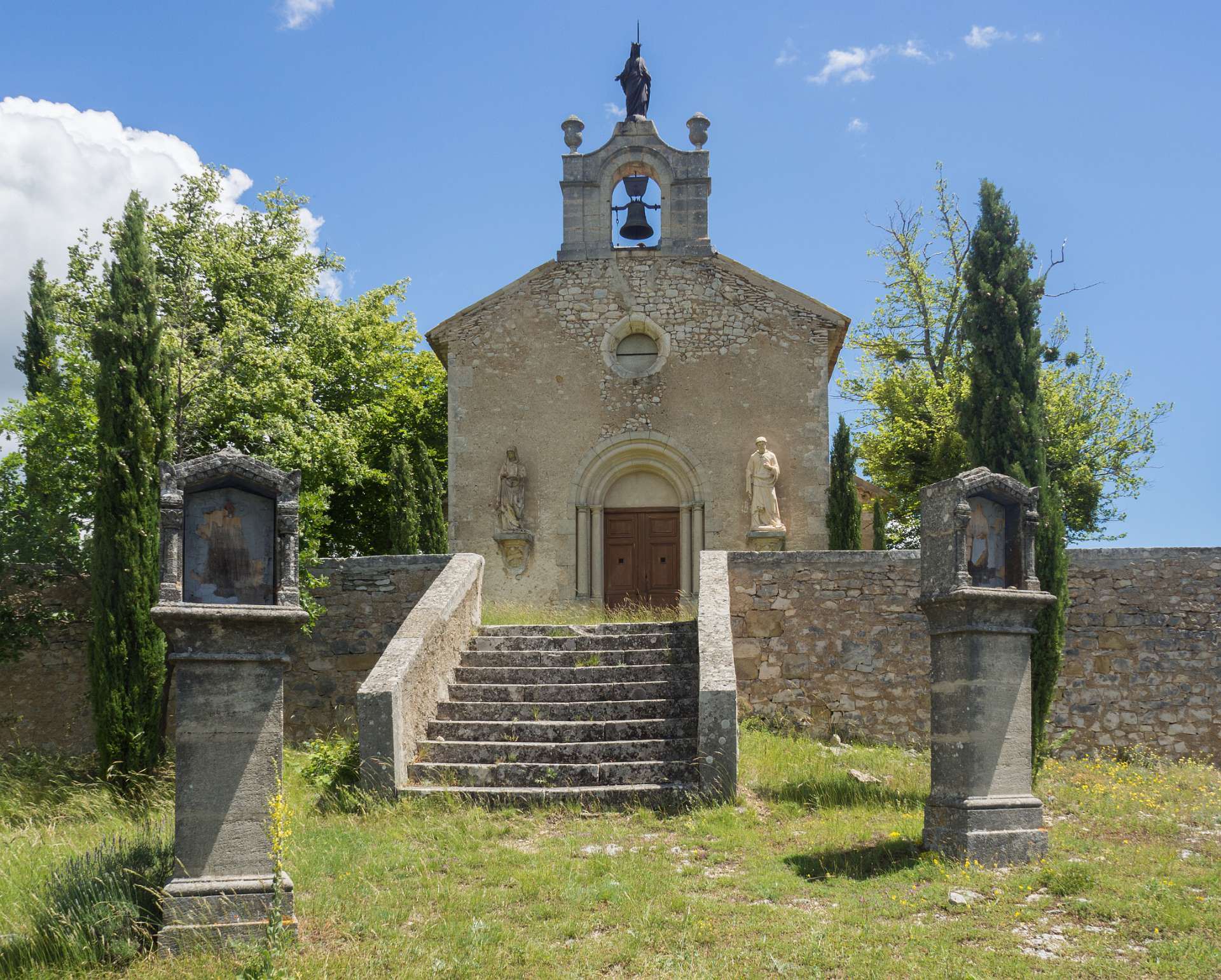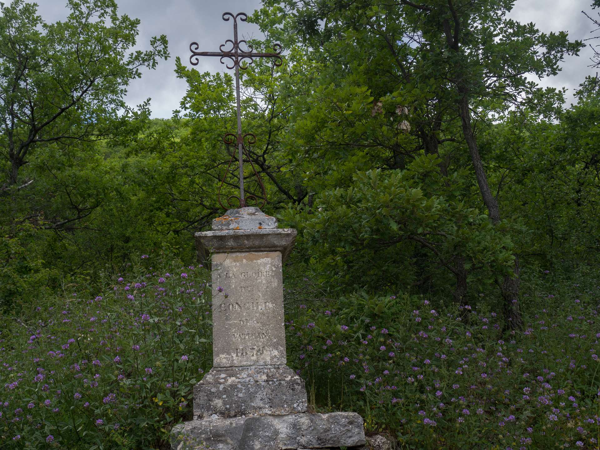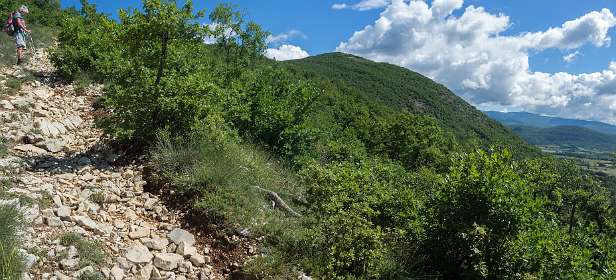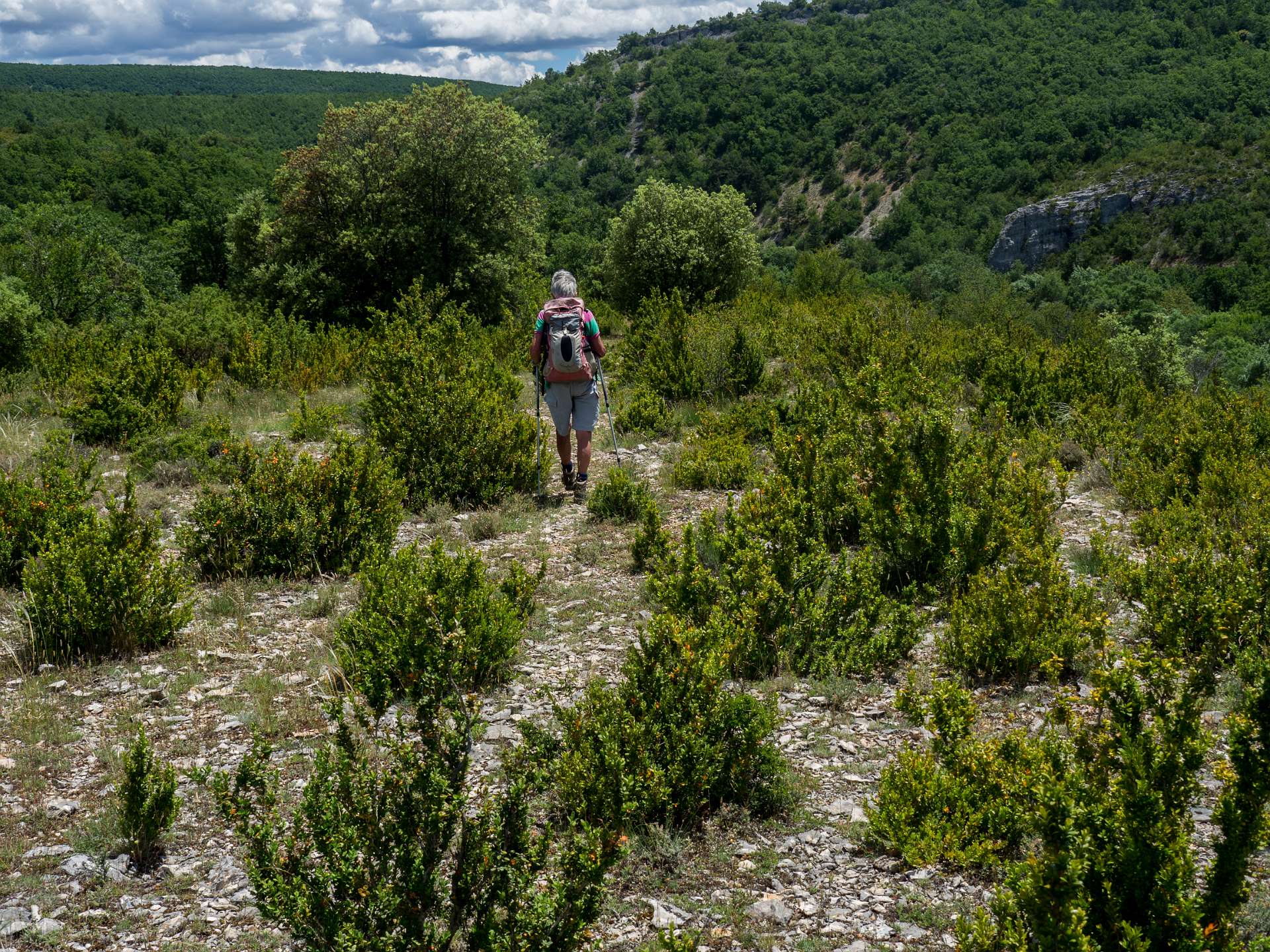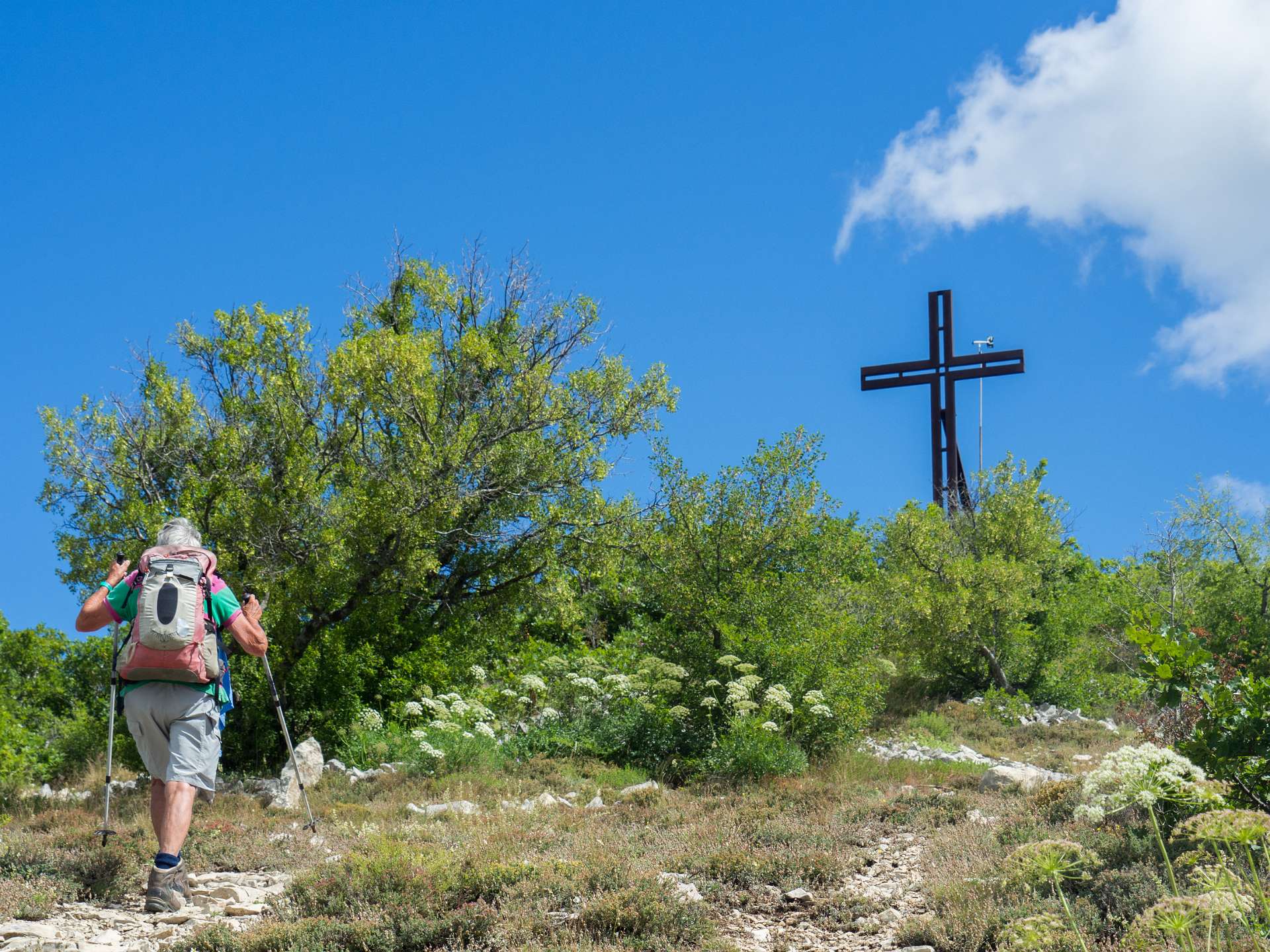 Vanaf de camping liepen we naar Banon en daarna namen we het "Le Groue de Bane" pad naar een top vam 1070 m. Daarna daalden we af en liepen naar de kapel Notre Dame de Anges. Via de GR liepen we weer terug naar Banon. Totale afstand 16 km, totale stijging 600m.