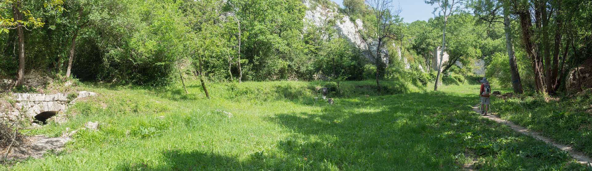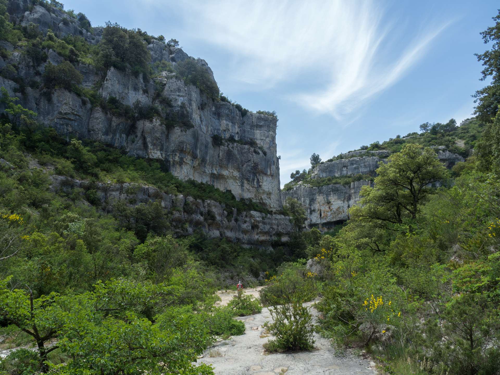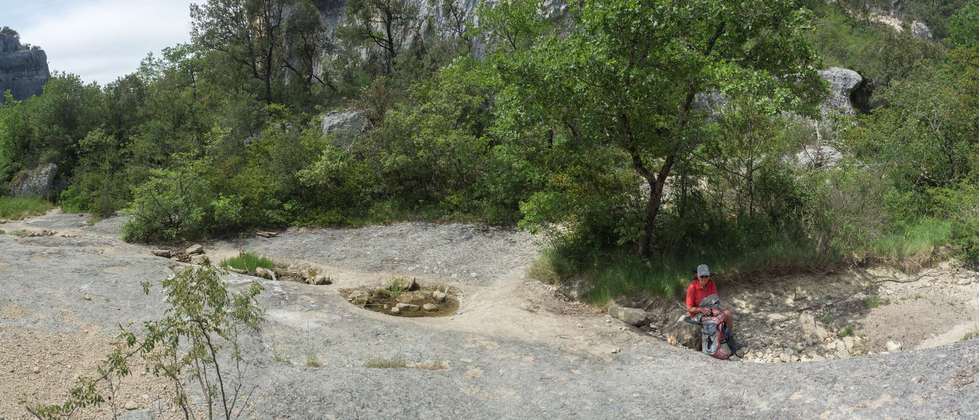 Dit is een 13 km lange wandeling vanuit de camping Des Sources. Eerst langs een aantal vervallen watermolens en daarna over de bodem van de canyon. Wij zijn de canyon niet helemaal uitgelopen omdat het pad aan de zuidkant moeizaam was door het struikgewas.