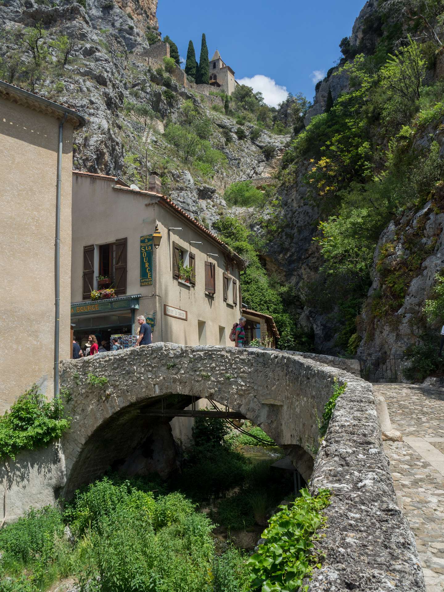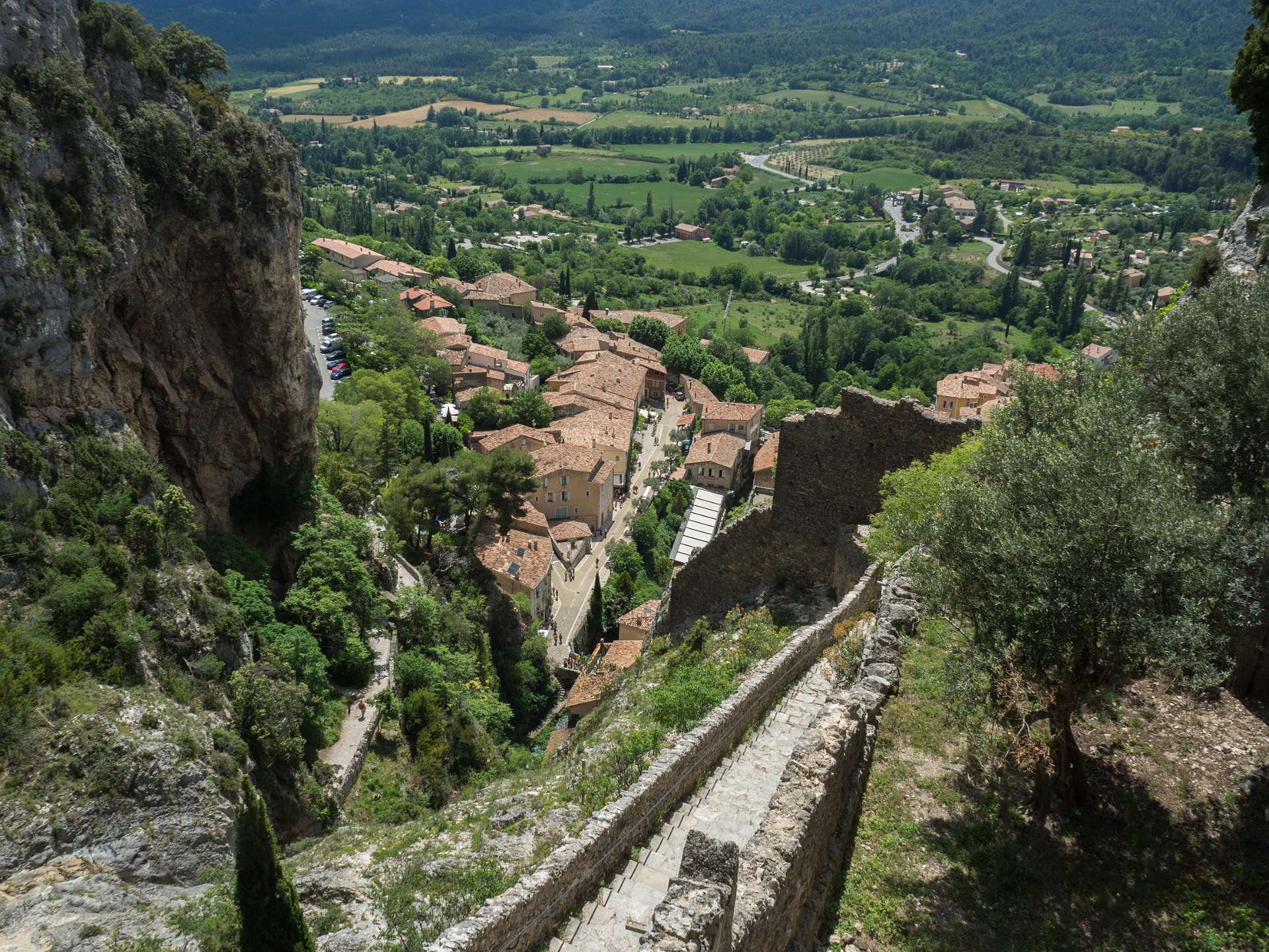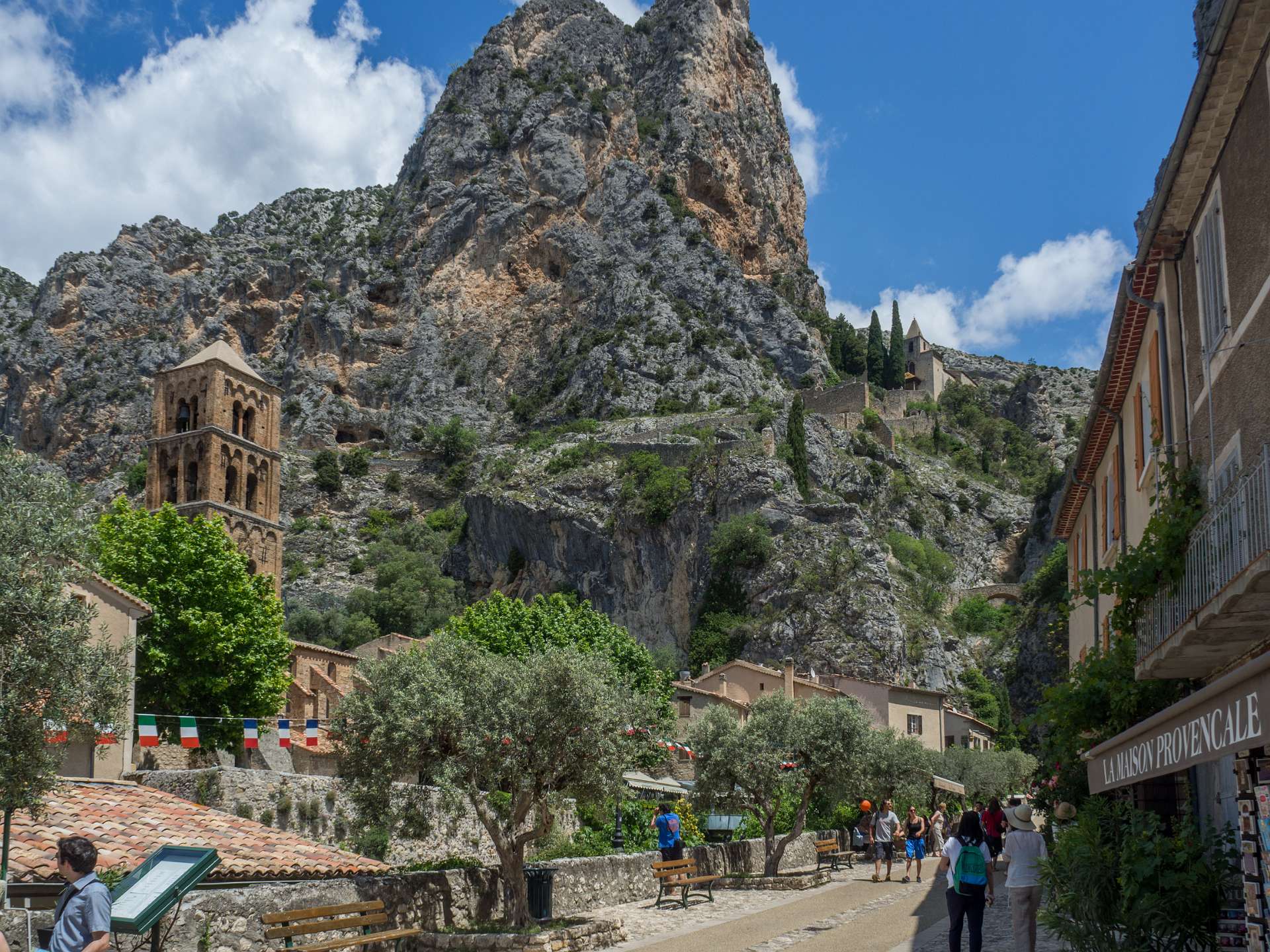 We liepen van de camping Saint Jean naar het mooie stadje Moustiers Sainte-Marie bij het Lac de Sainte Croix.