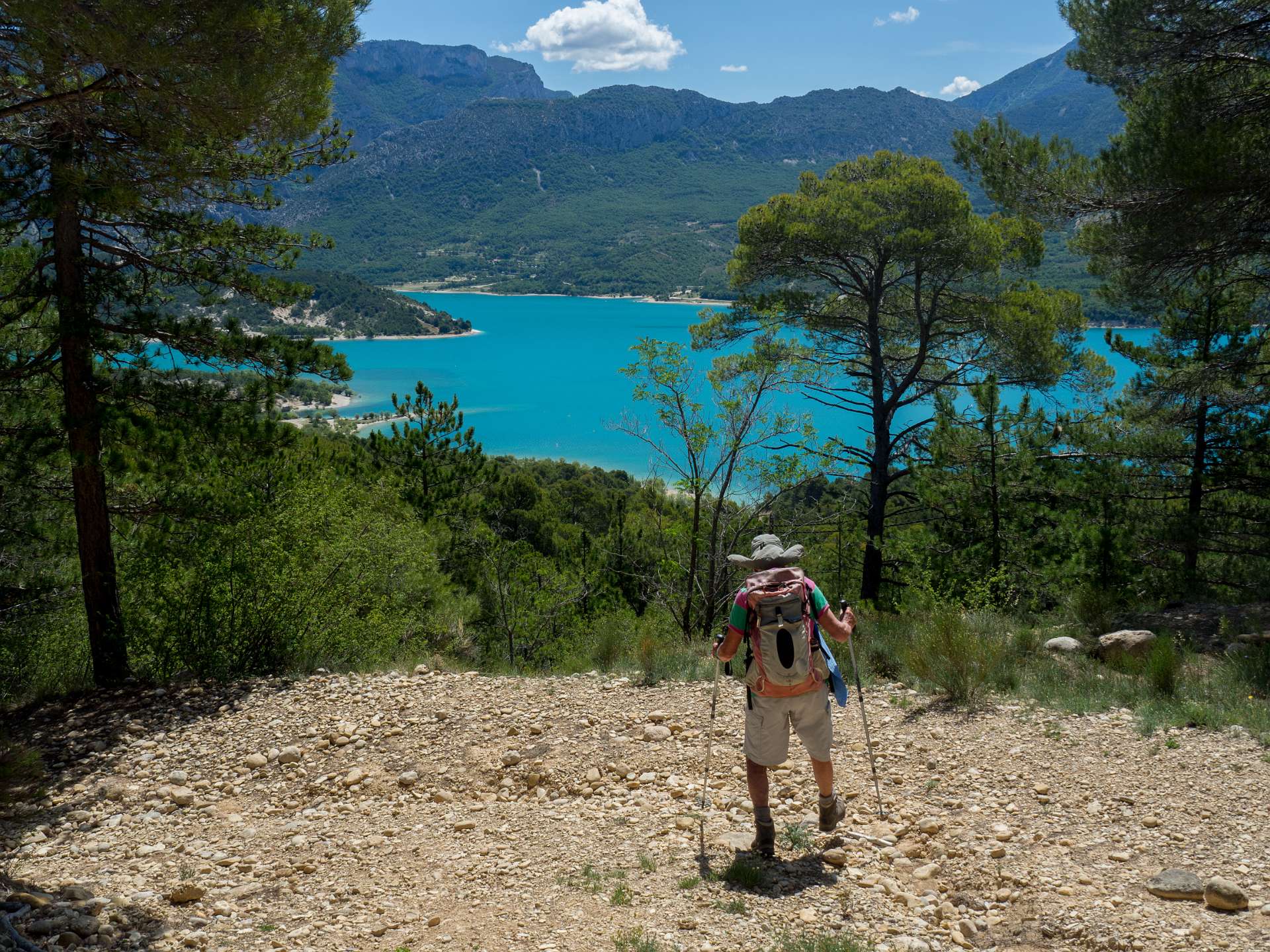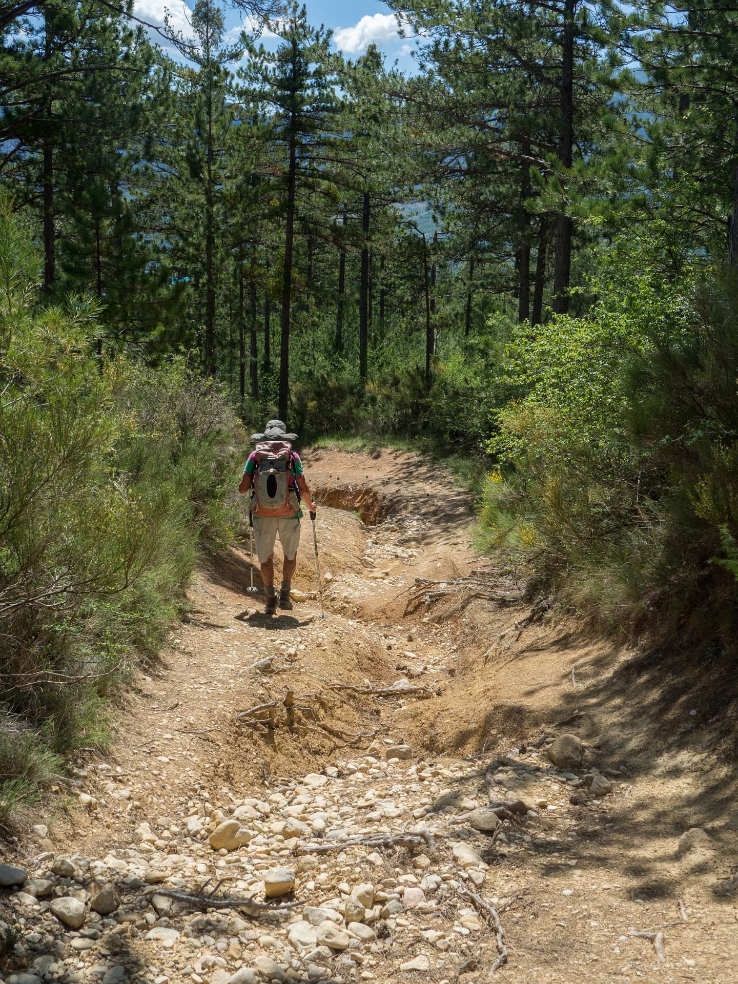 Dit is rondwandeling 5 uitgegeven door het VVV. Je klimt door een bos omhoog naar een hoogvlakte, waar je daarna een paar km overheen loopt om vevolgens af te dalen naar het meer.